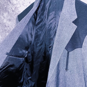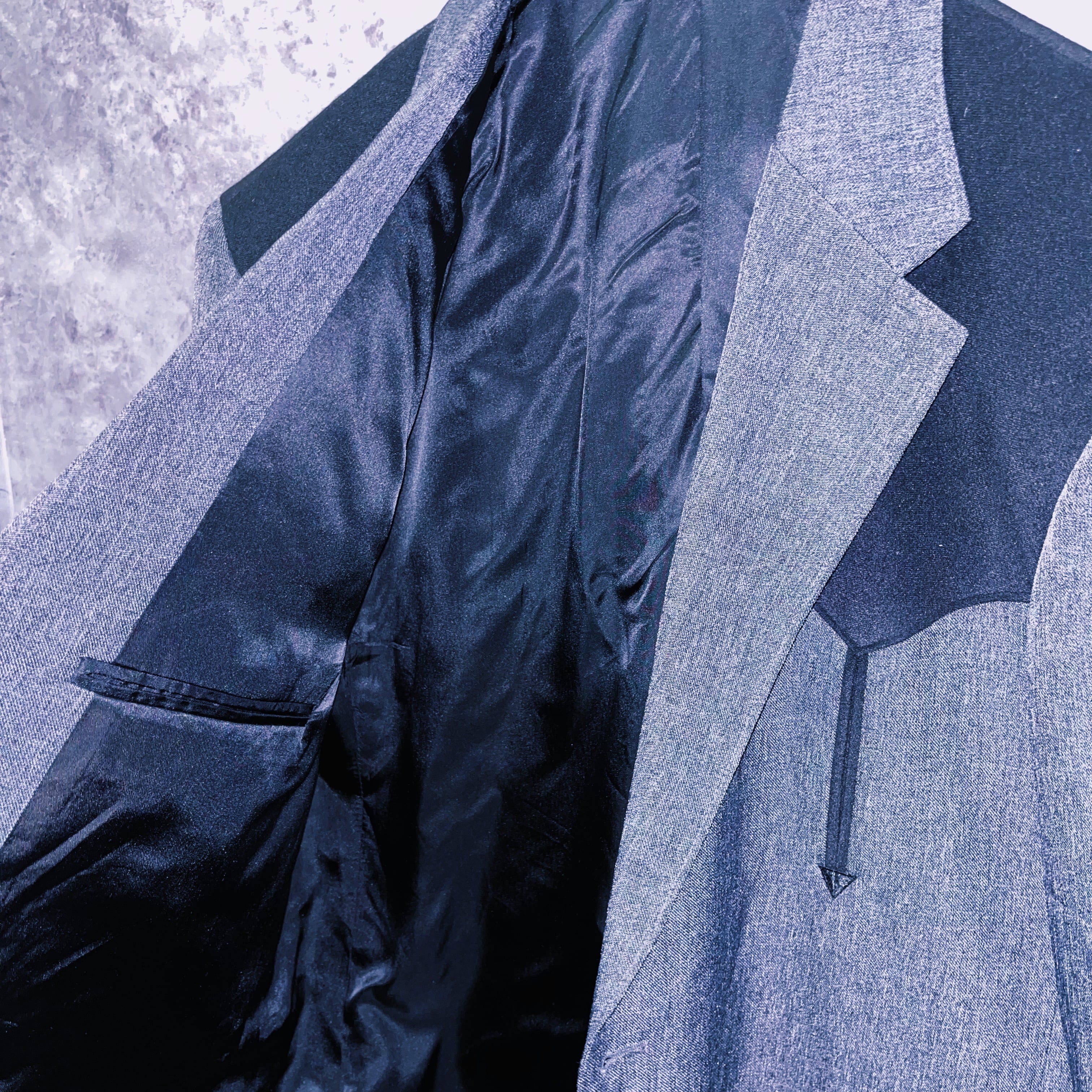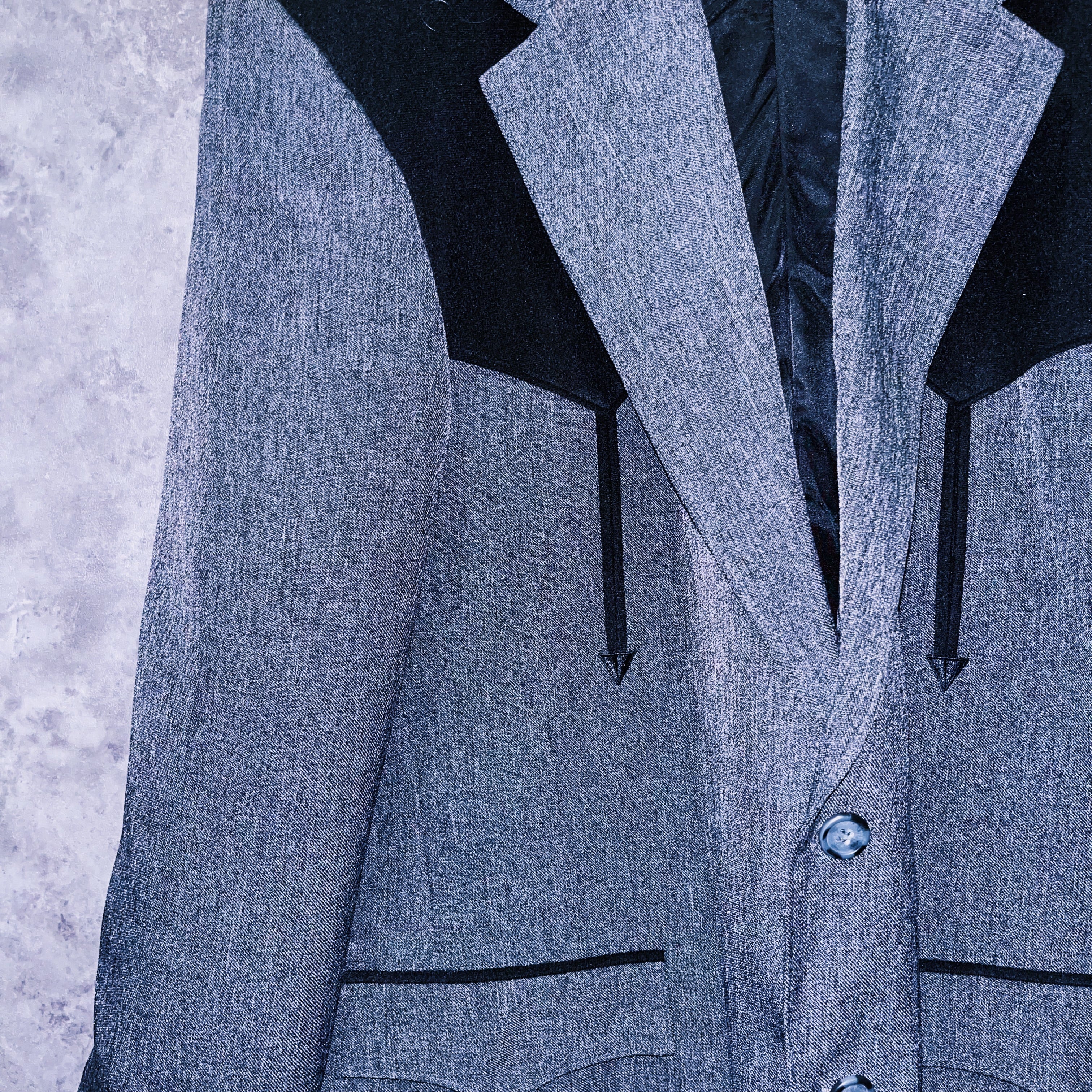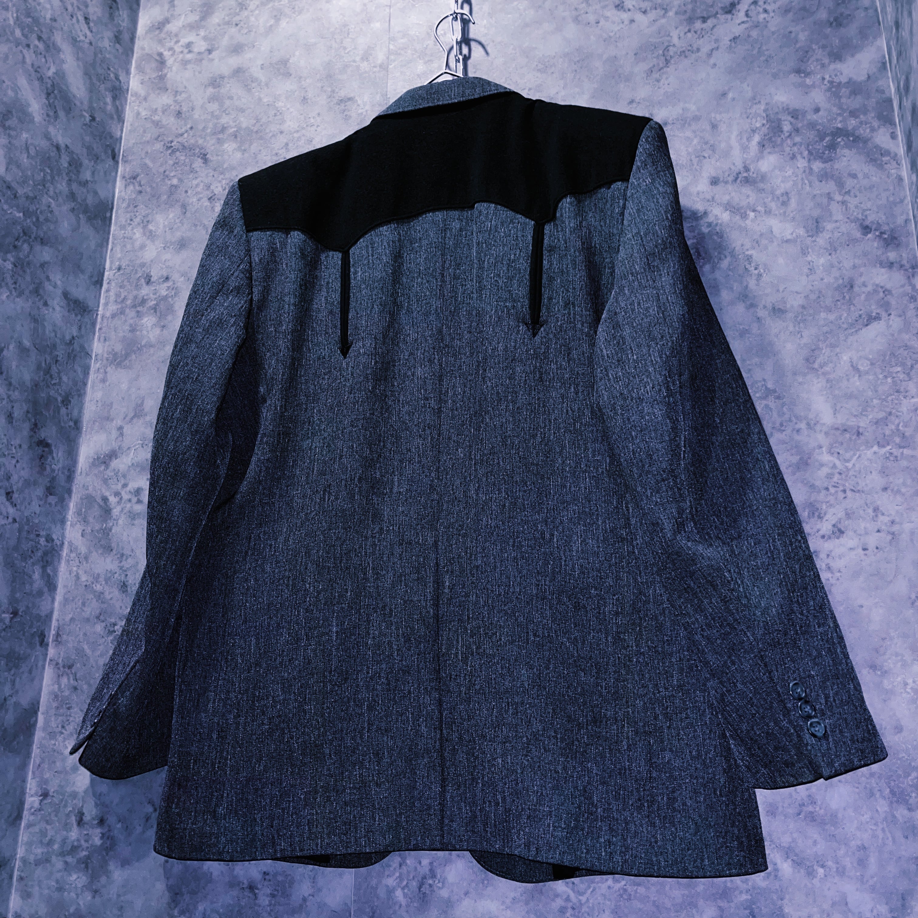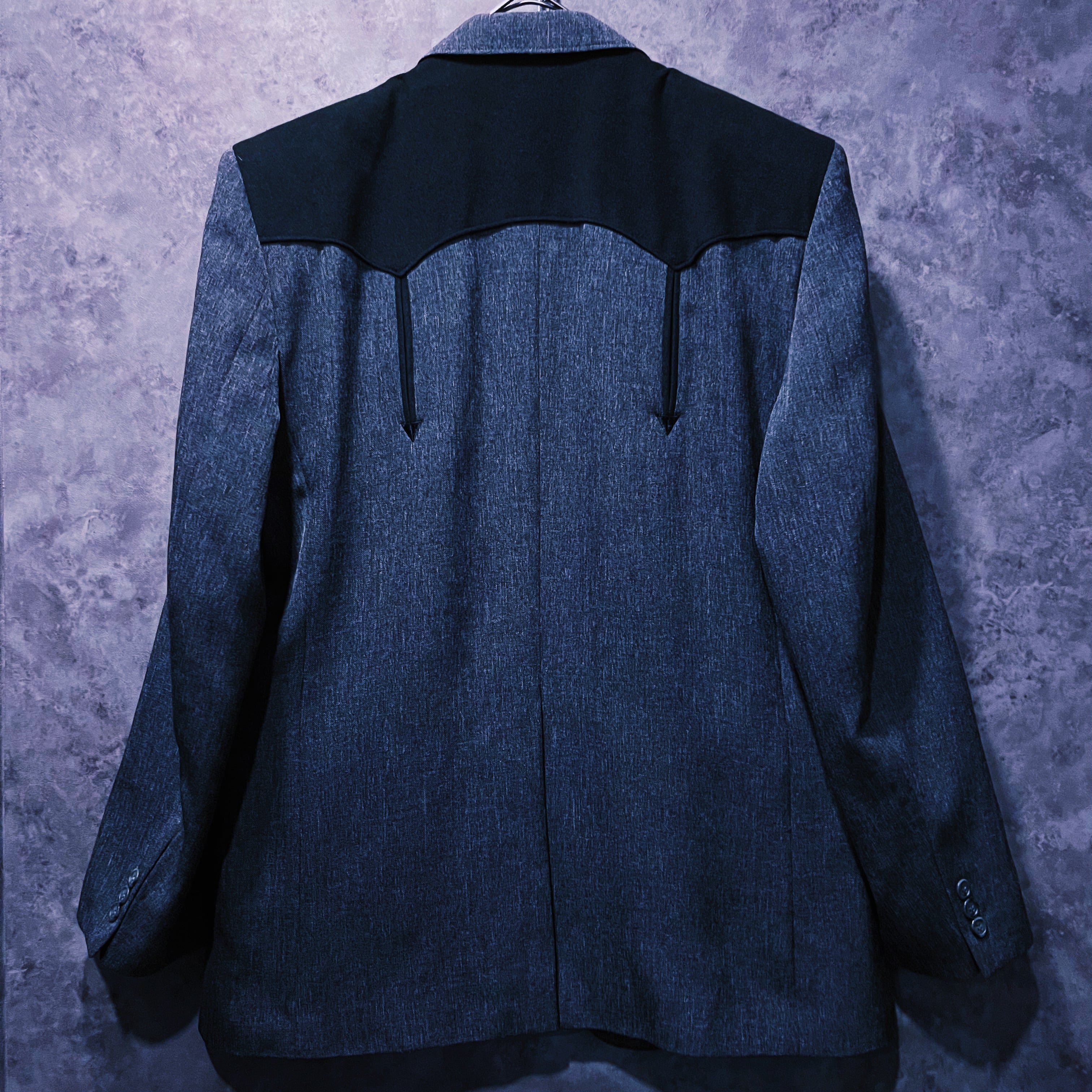 アッシュグレーをメインに肩には黒のスウェード生地で逆山形のウェスタンヨークデザインが施されています。