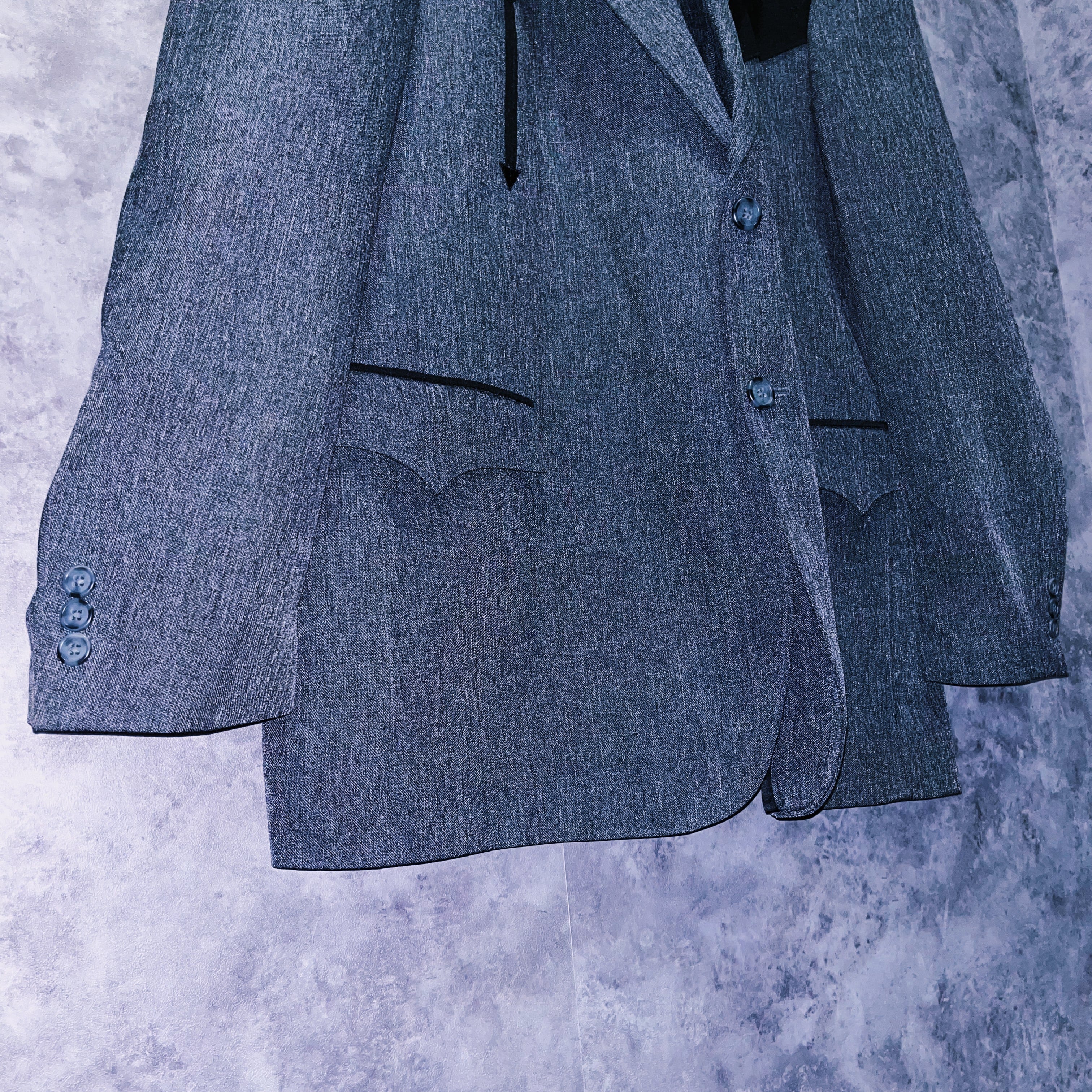両ポケットのフラップ(蓋部分)にも同じく逆山形のデザインがされ、細かいデザインの組み合わせによりウェスタンアイテムとしての色がより強調されている一着になります。