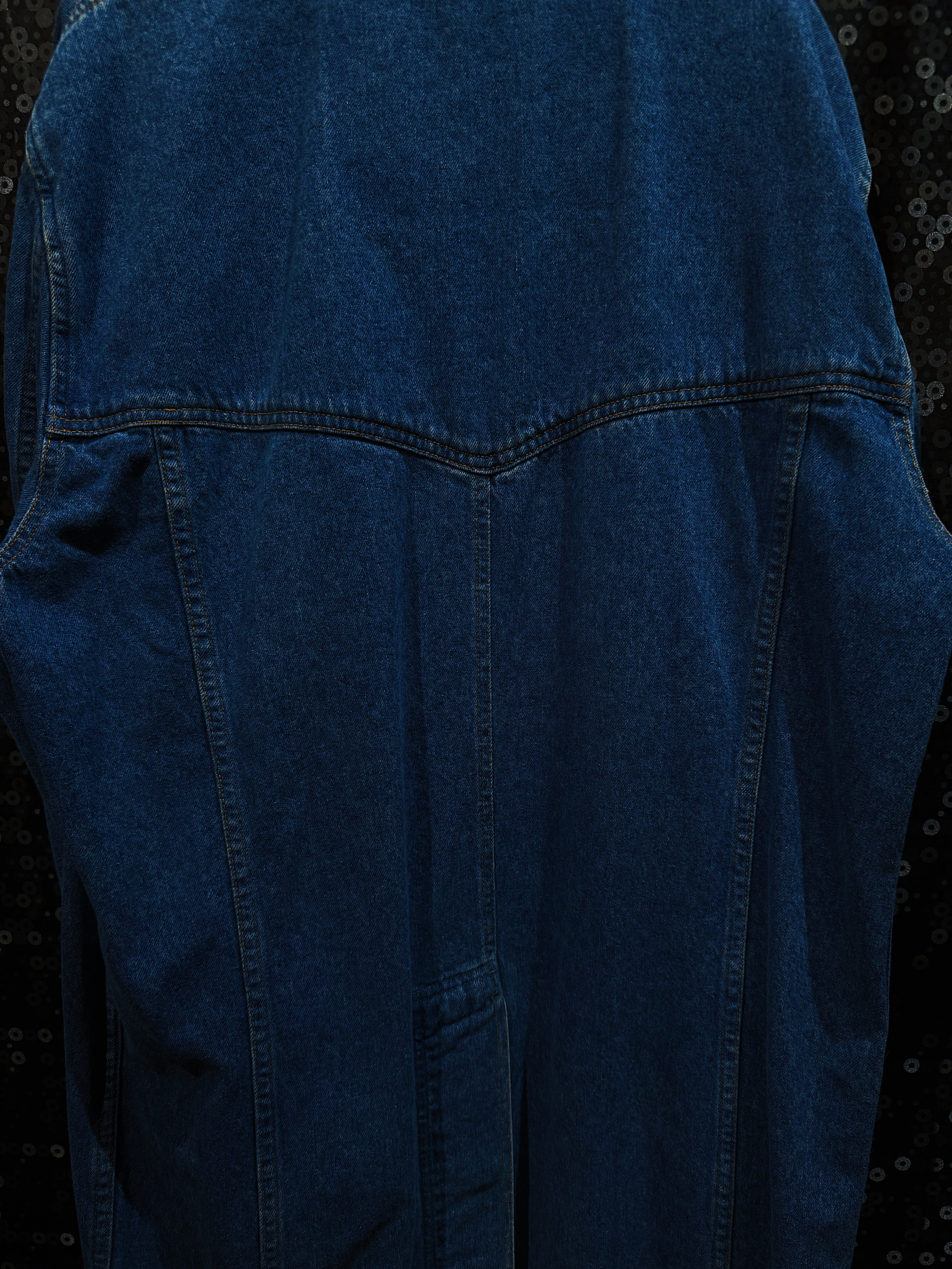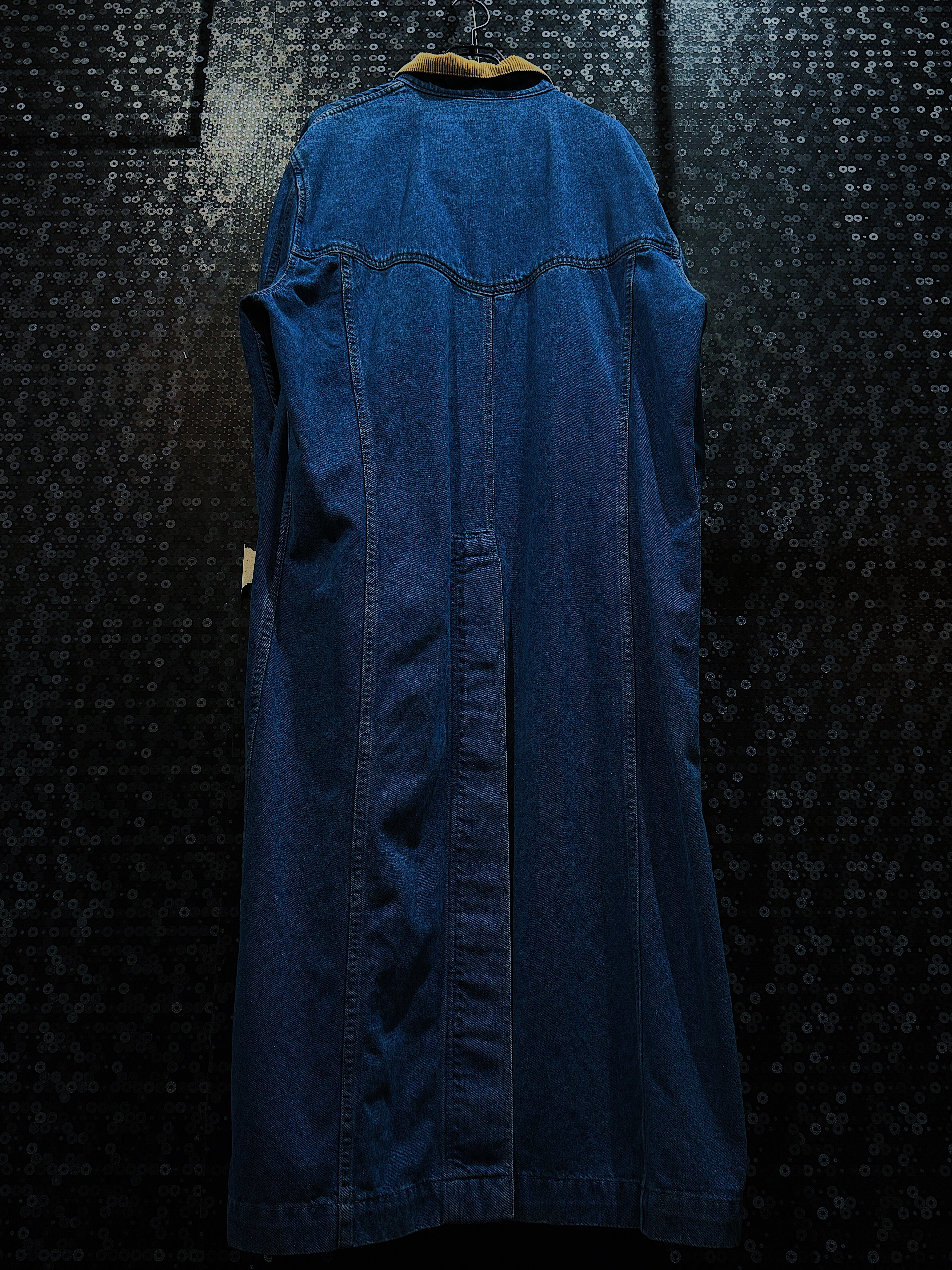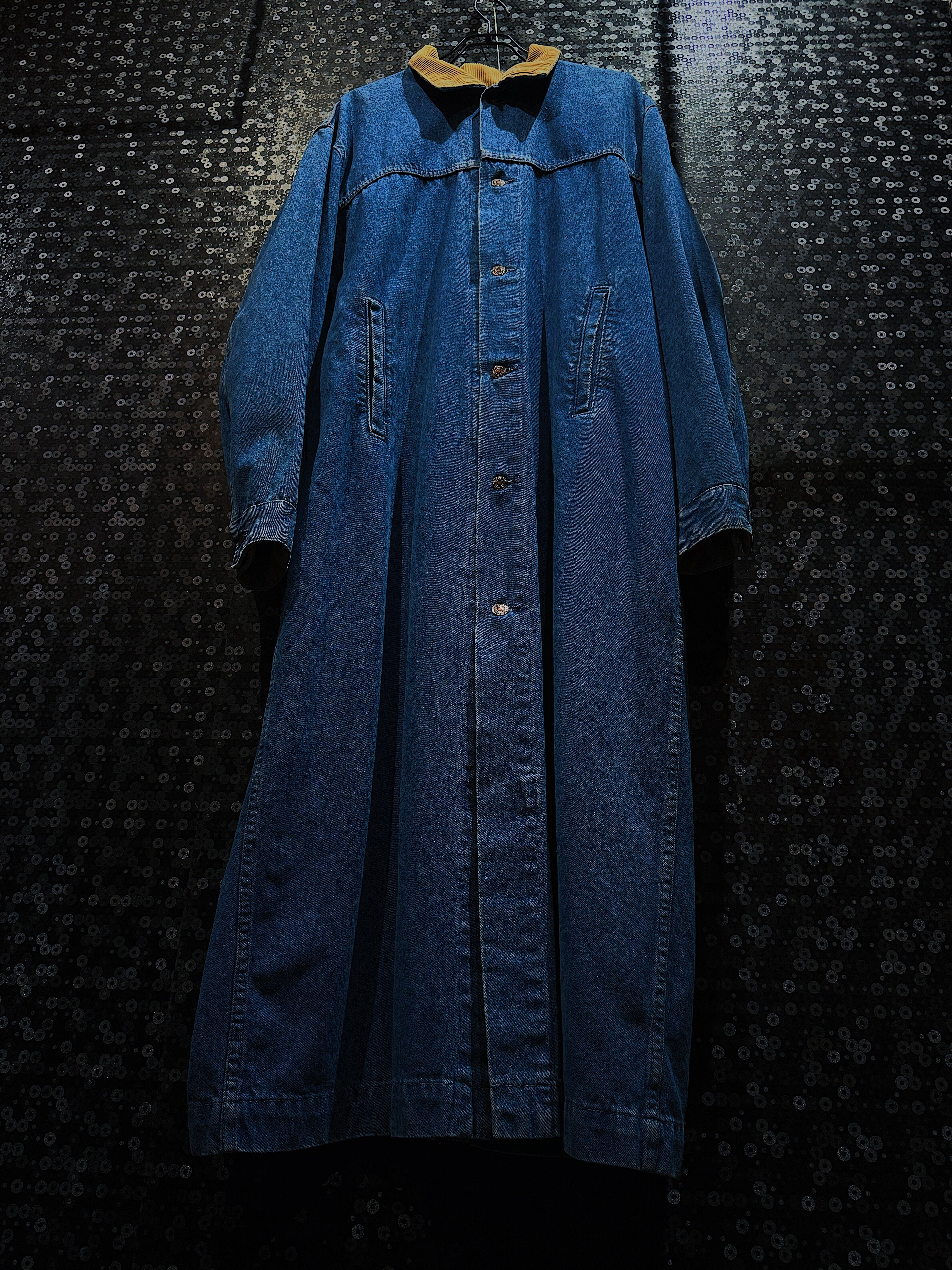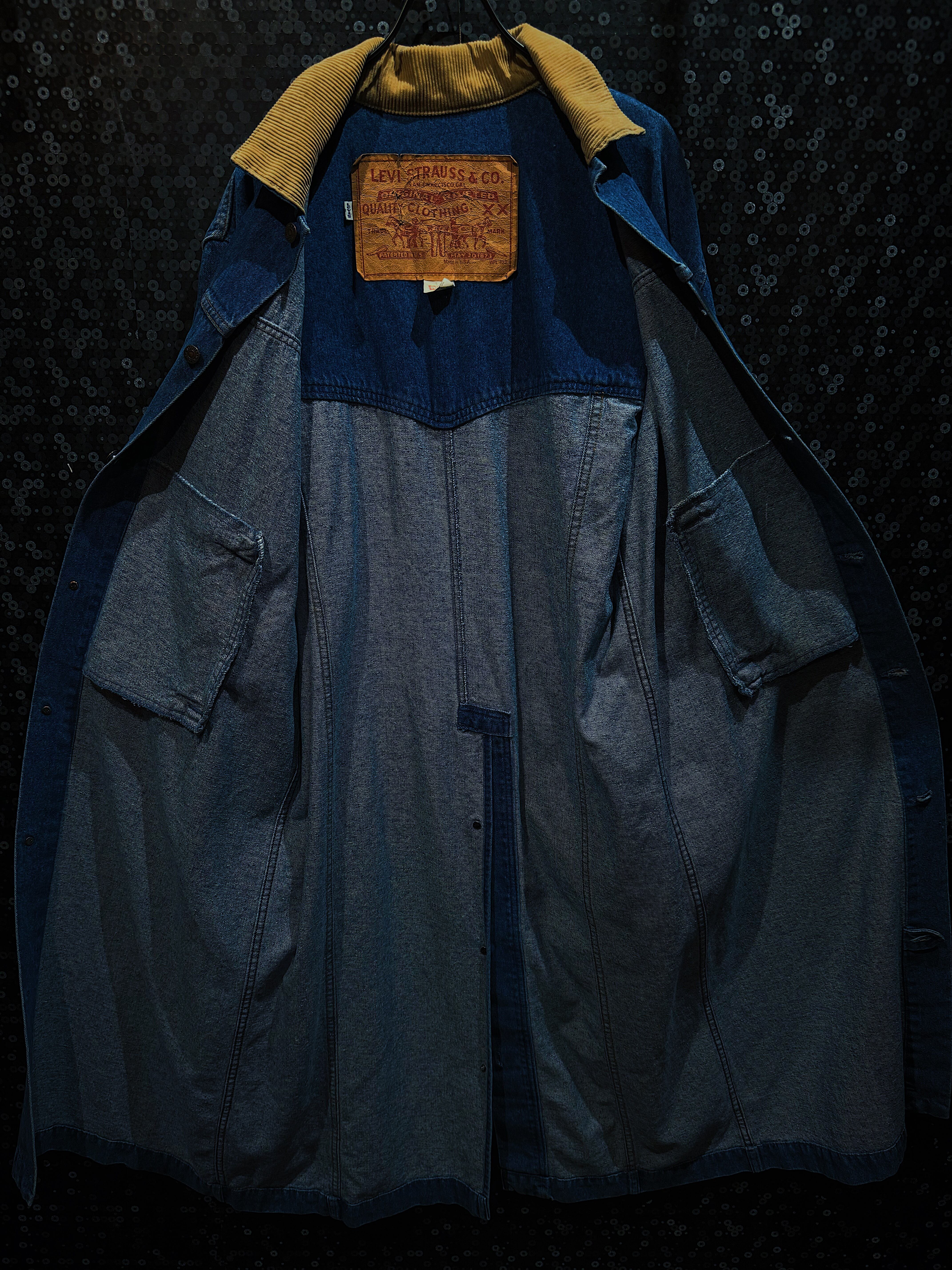 「Levi’s(リーバイス)」のロング丈デニムコート、通称**“デニムバルマカーンコート”や“デニムステンカラーコート”**と呼ばれるアイテムです。ワークとクラシックが混ざり合った独特な佇まいが魅力です。