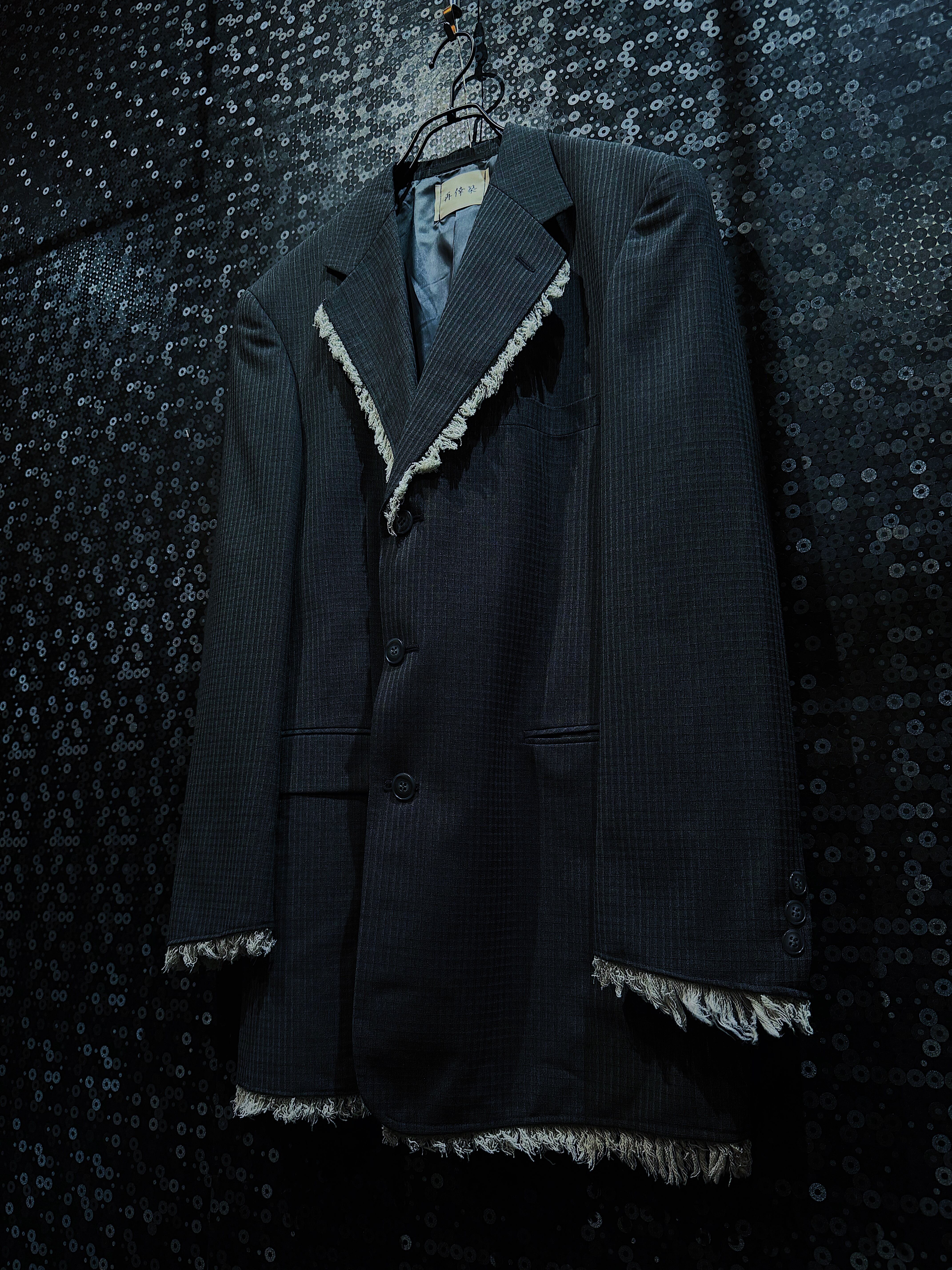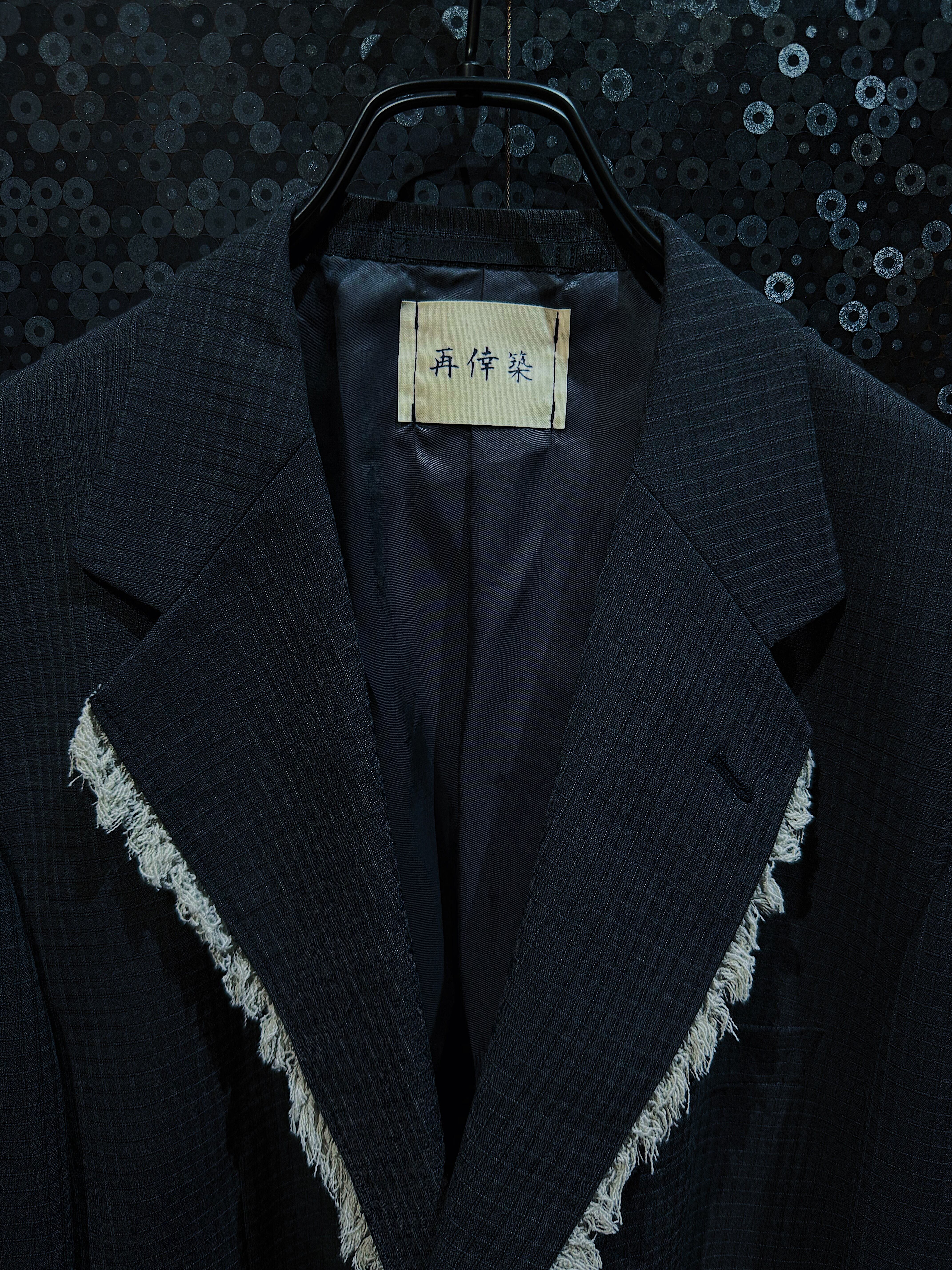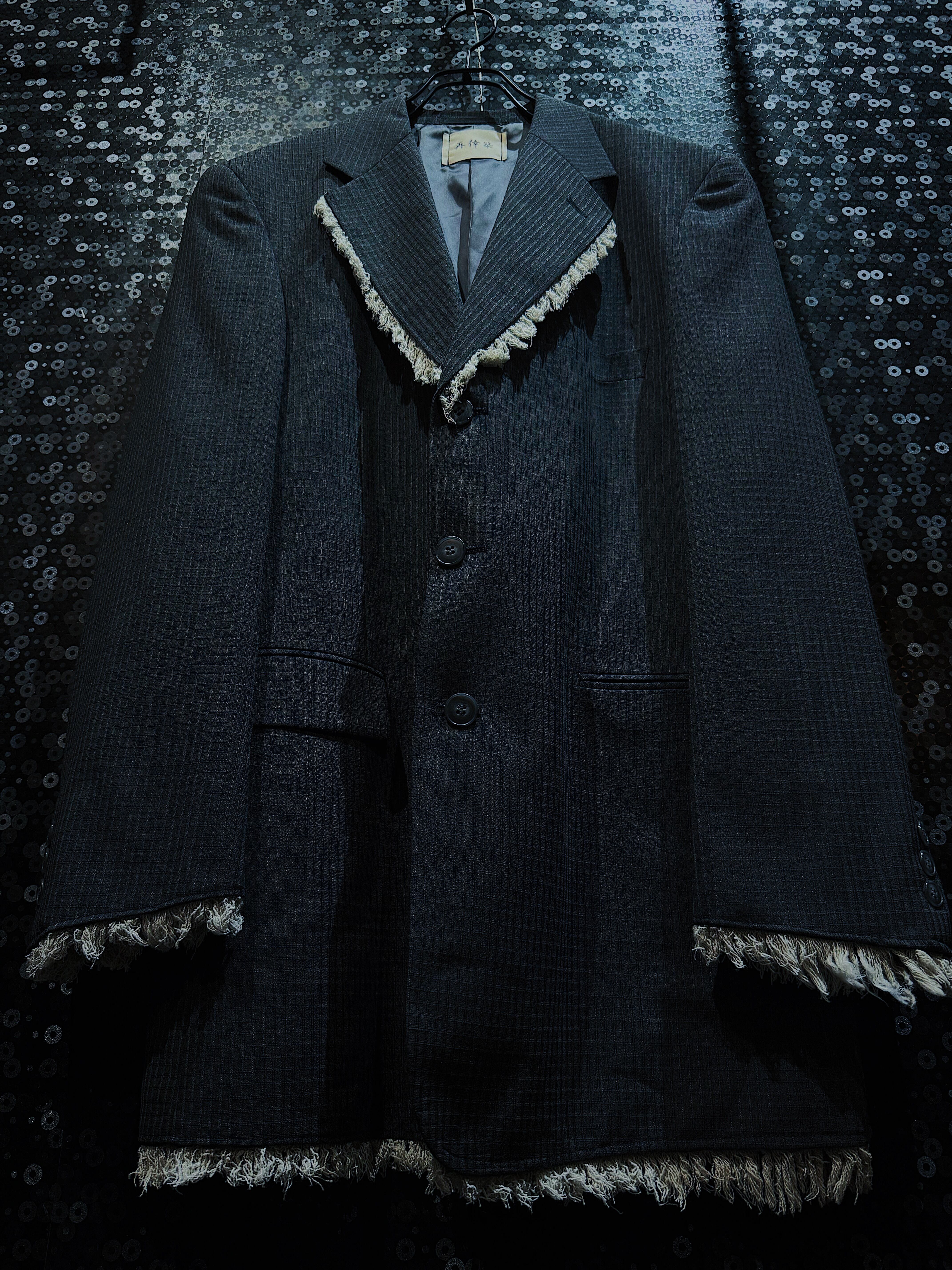 【ÆIEM】"再倖築"vintage gray back cut fringe tailored jacket