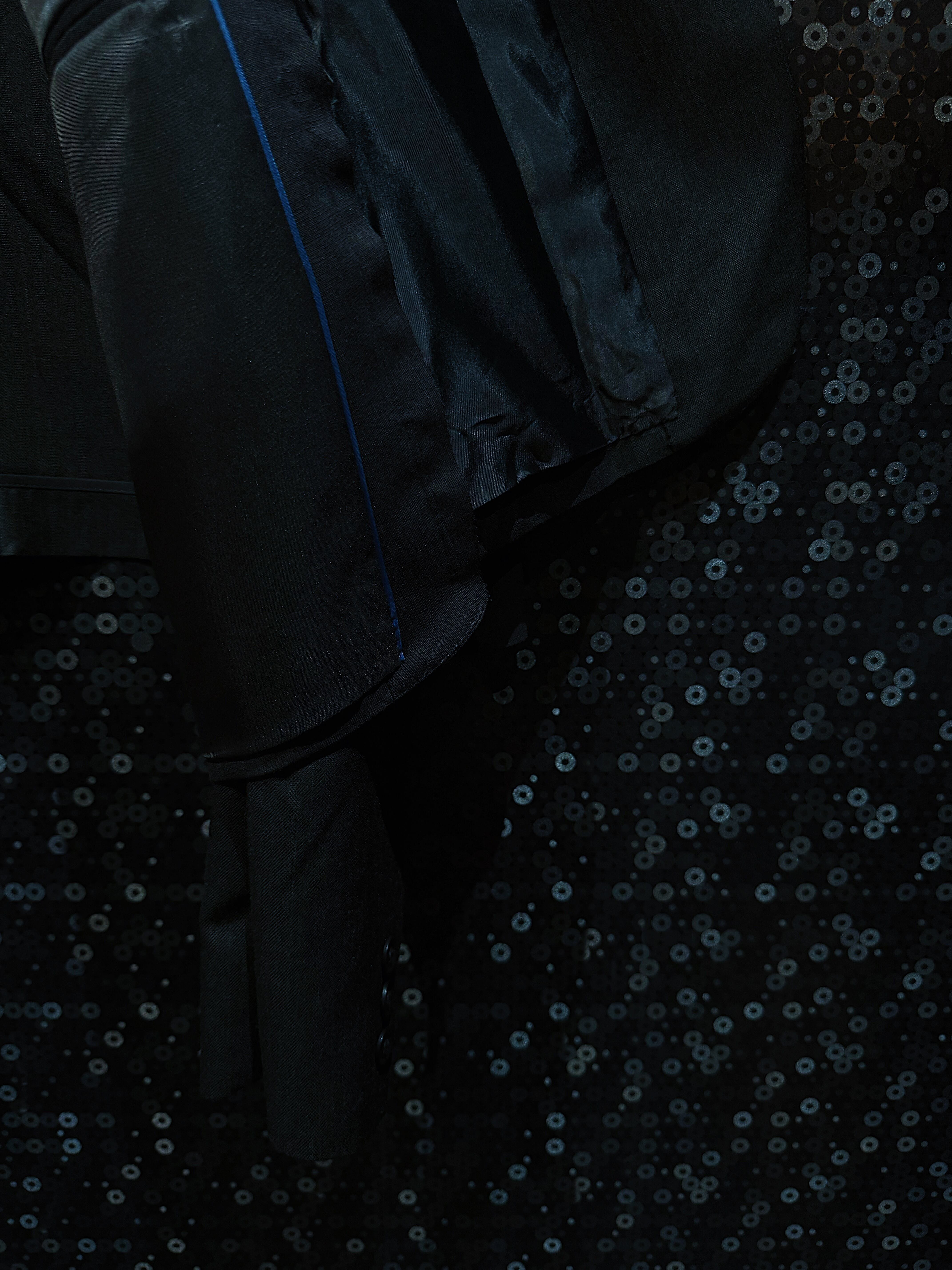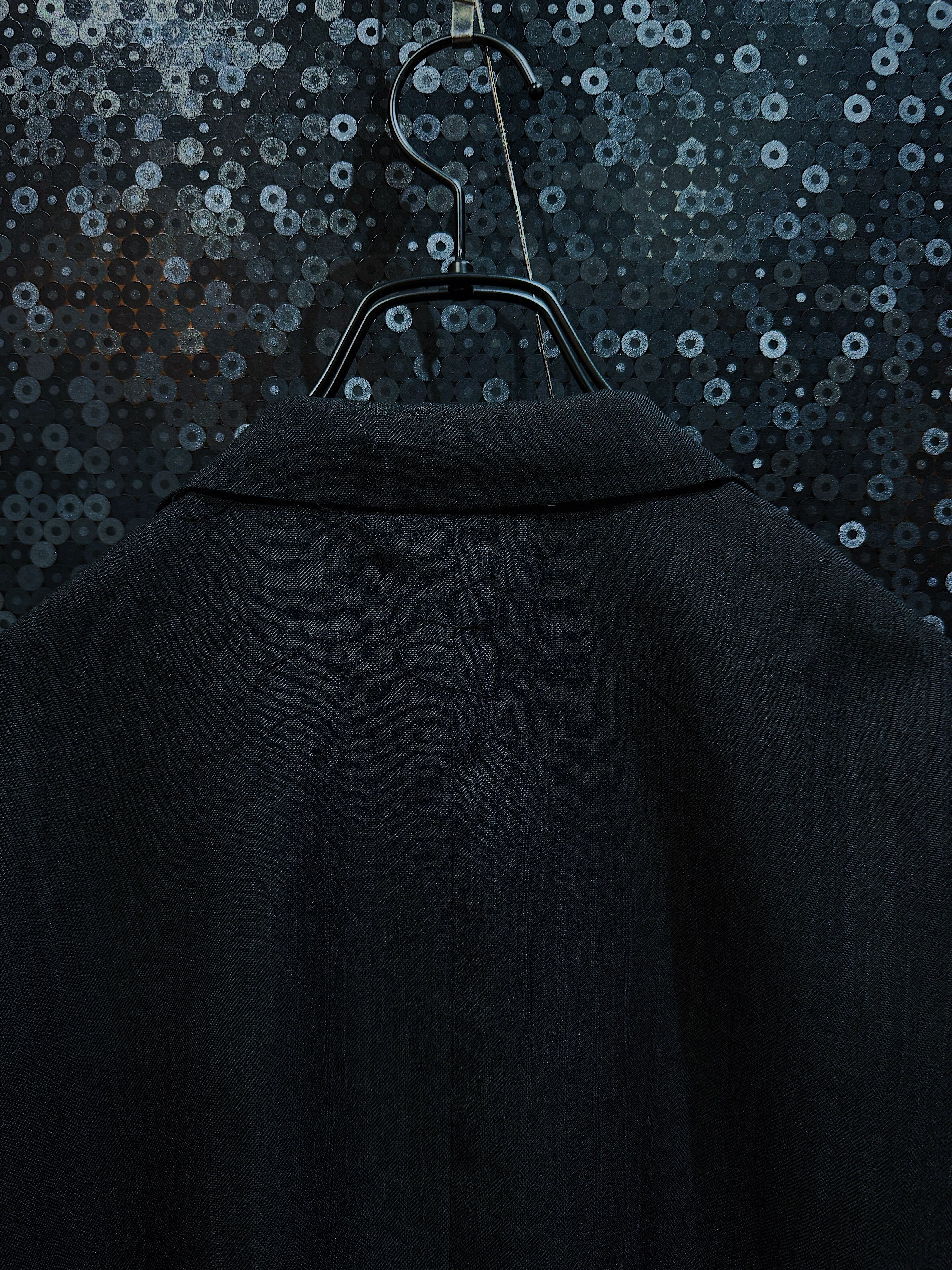 緻密に縫い込まれたラインが立体感を生み出し、観る者の視線を奪います。表現の限界を超えたこの一着、既製服の枠には収まりません。