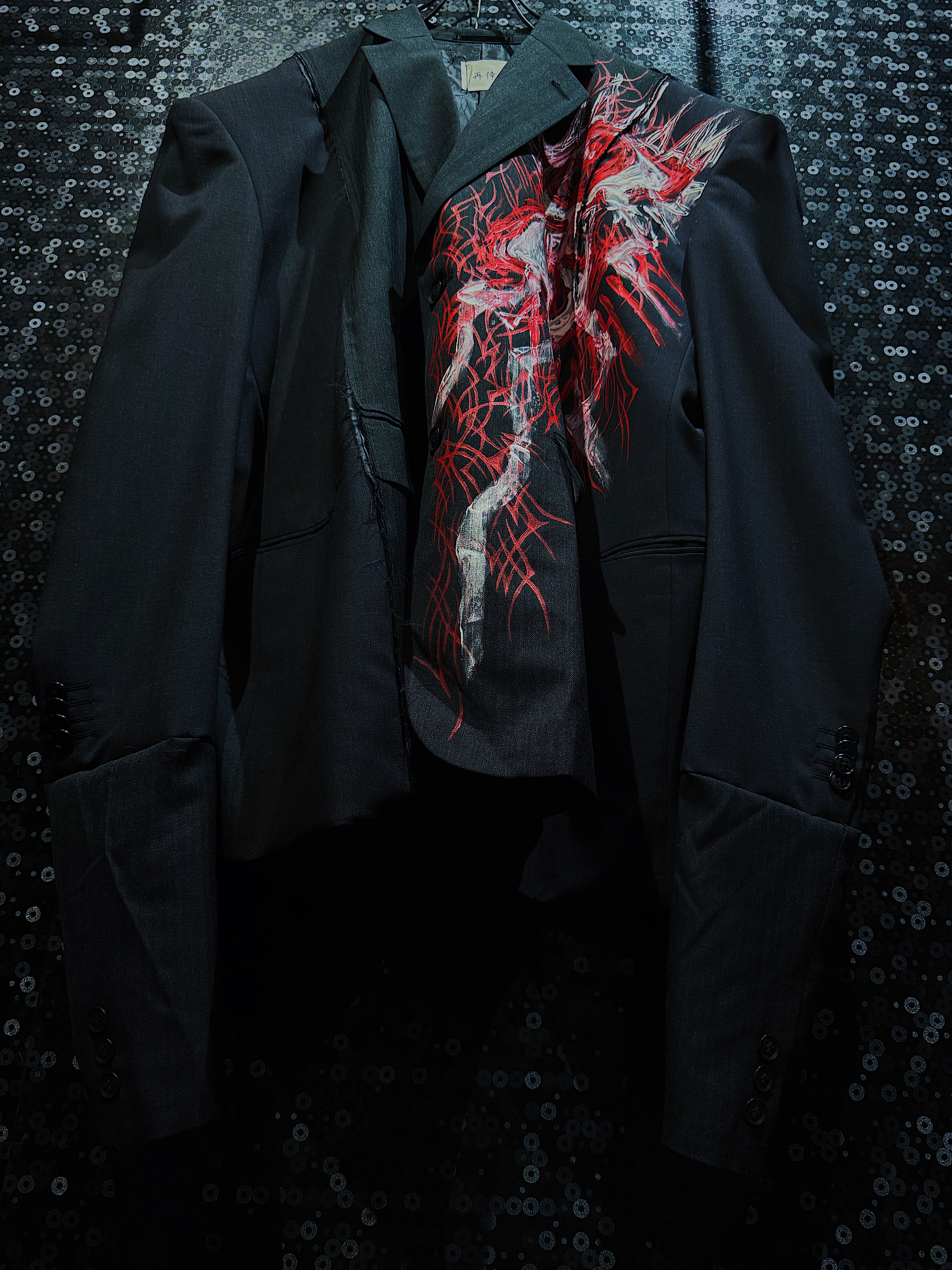 【ÆIEM】"再倖築"vintage "the red bind eyes"paint remake long sleeve double docking tailored jacket