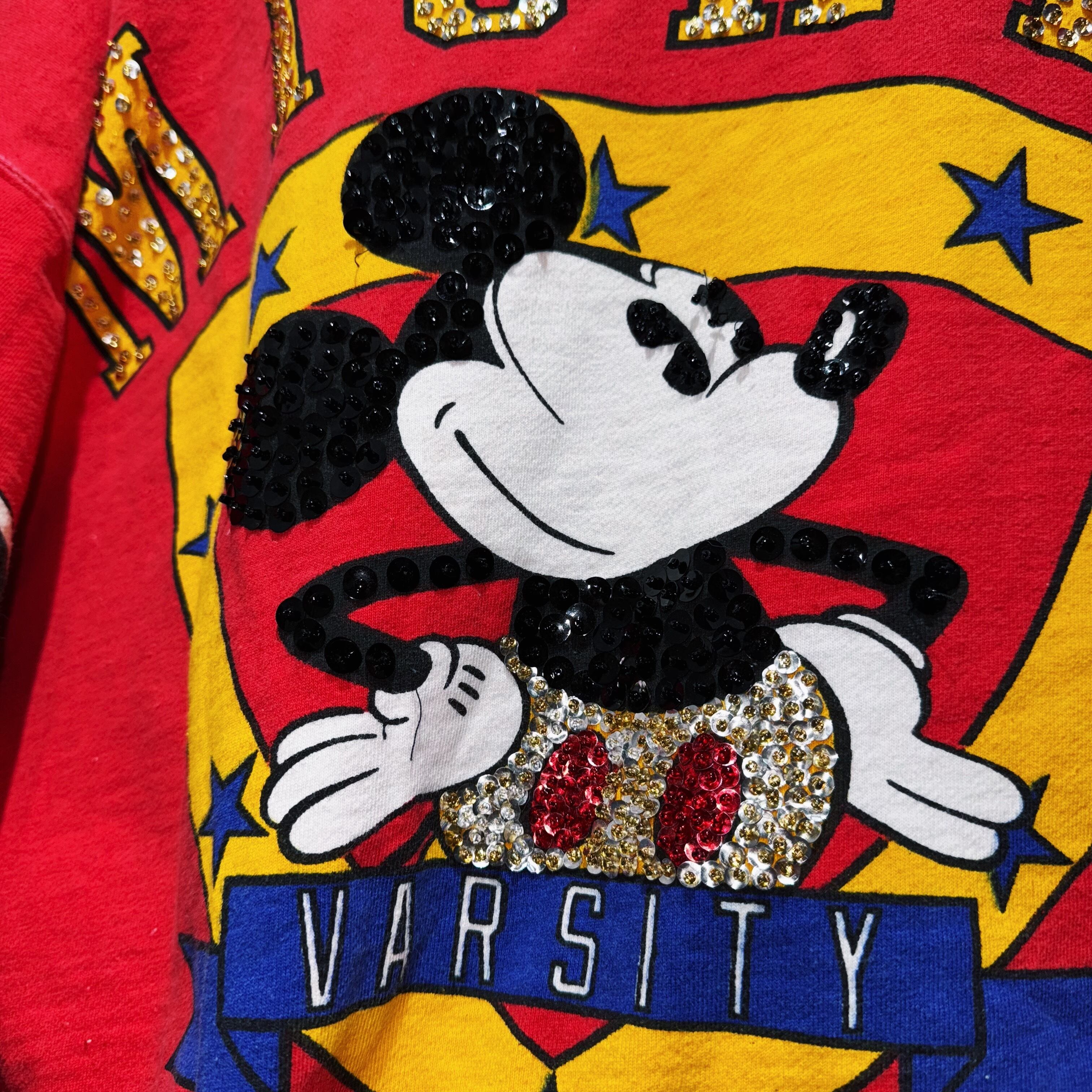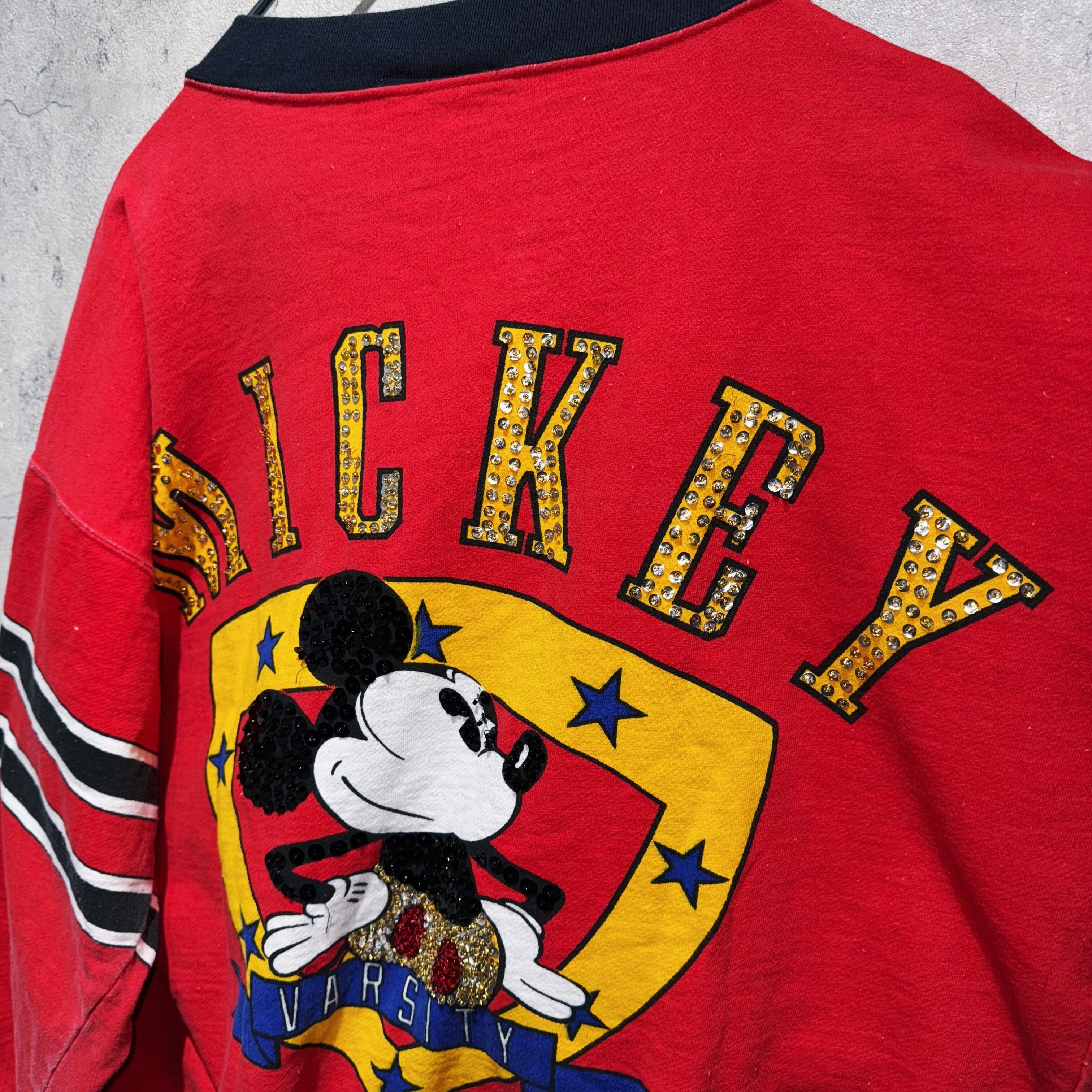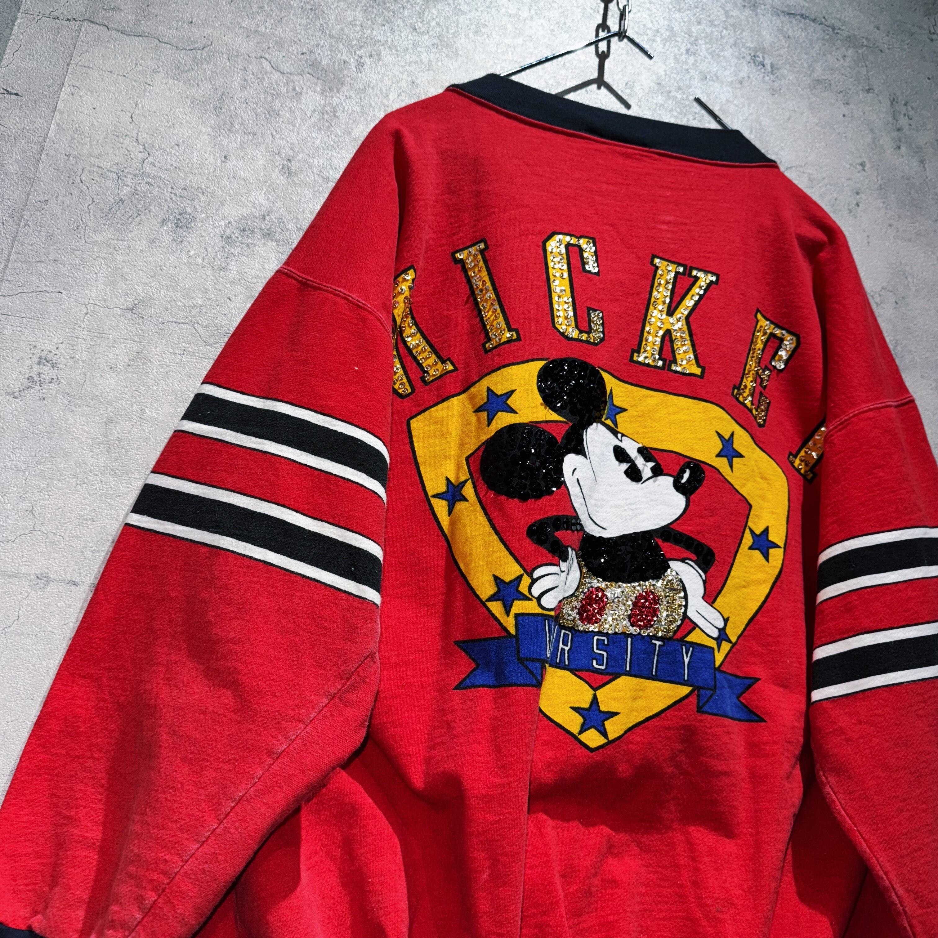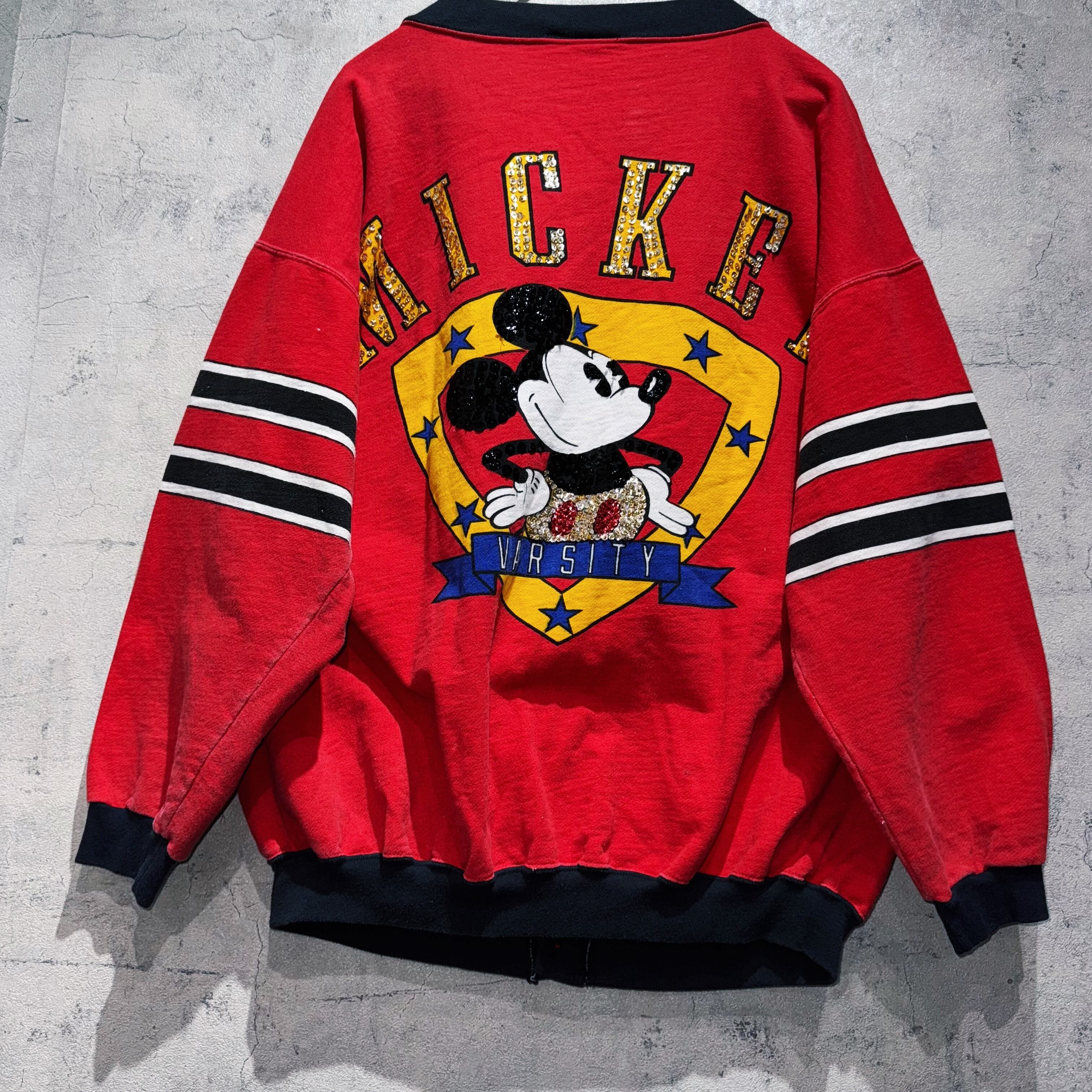 90年代"ミッキー&コー"スパンコールミッキーデザインスウェットカーディガン