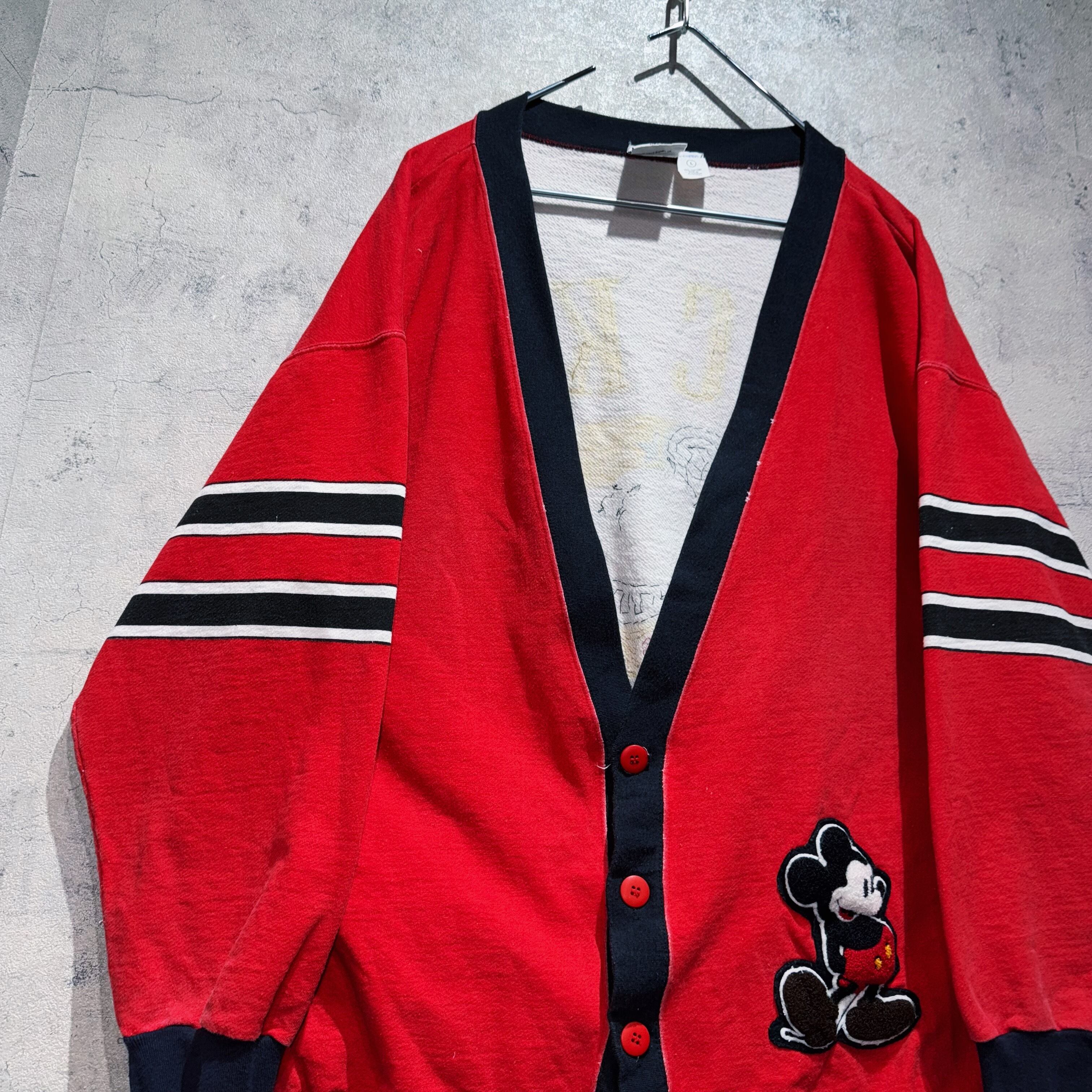 90's"Mickey&co."spangle Mickey design sweat cardigan
