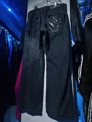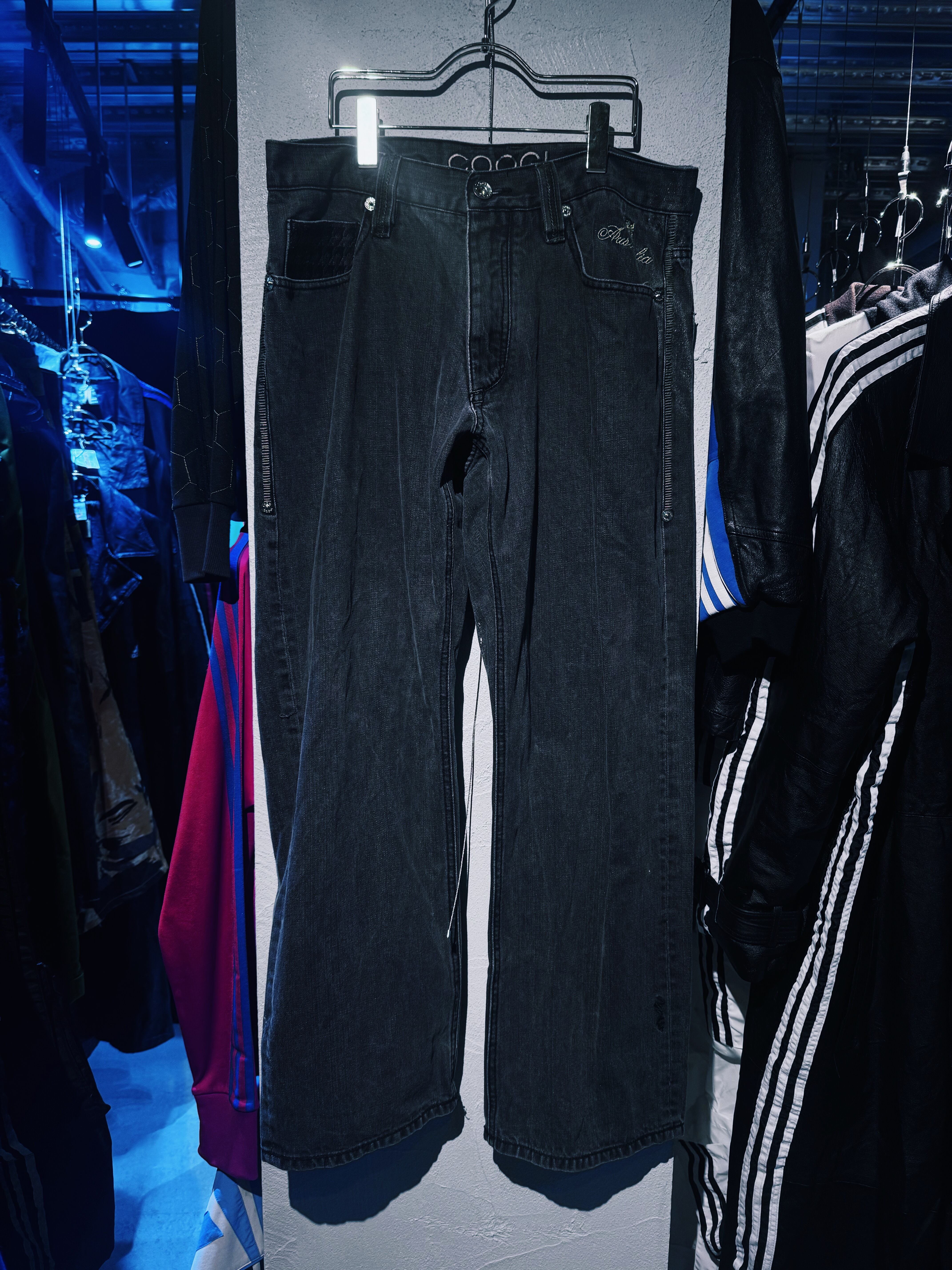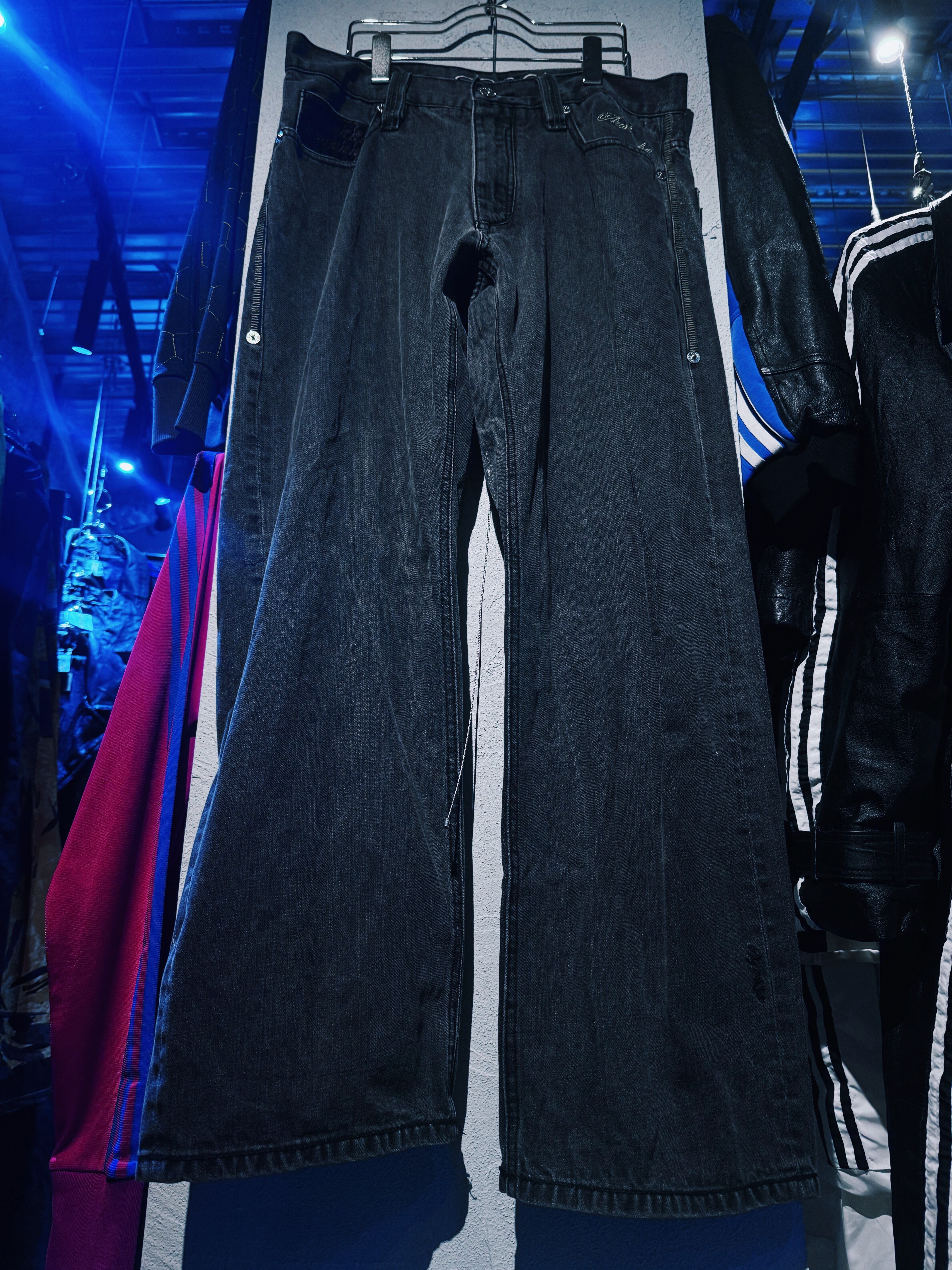 フェード感のあるヴィンテージの風合いを感じるデニムに、全体を走るギラギラと輝く素晴らしい刺繍を施した圧巻の一枚。
