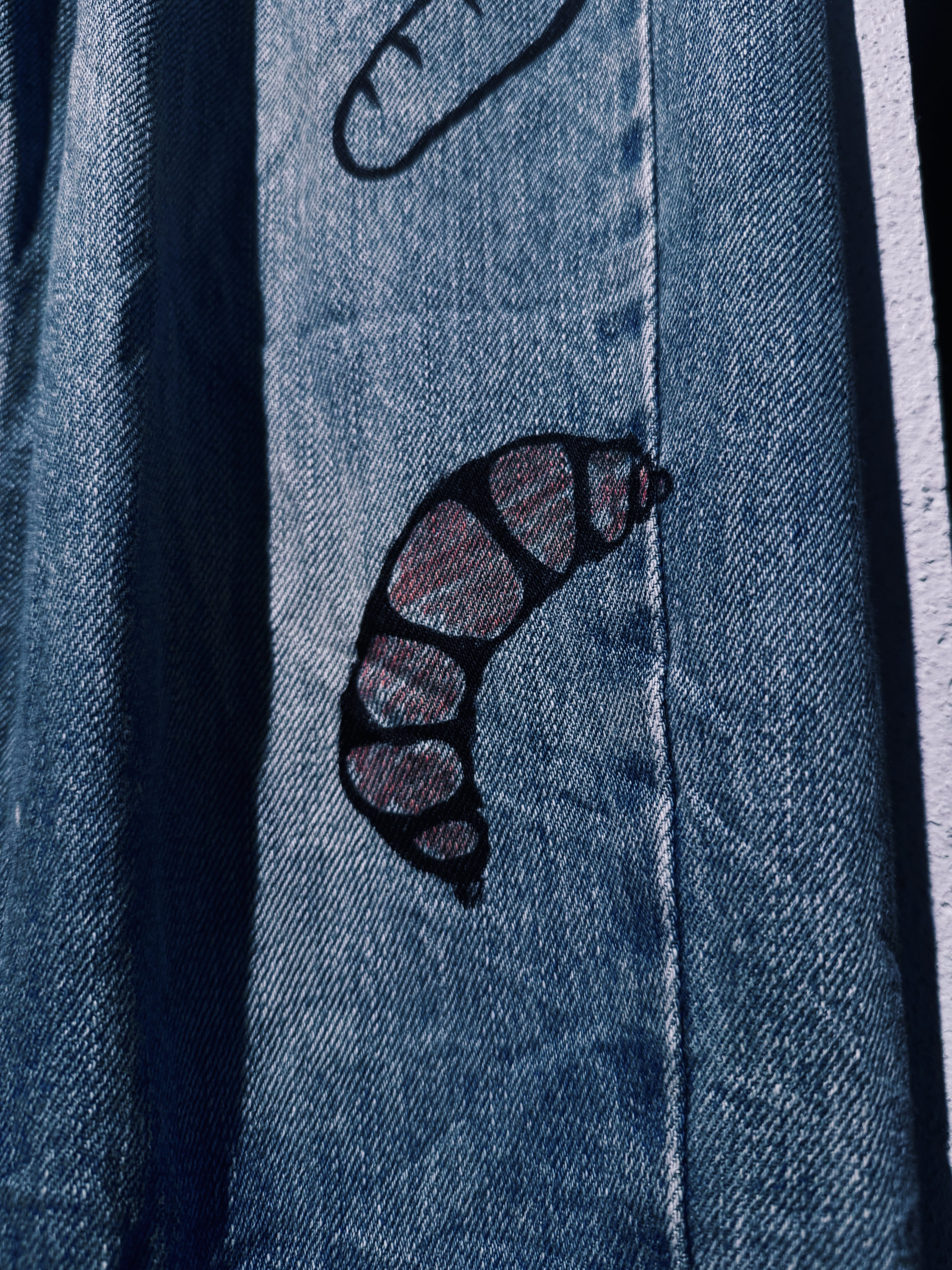 疎らに施されたポップなアートデザインが光るこのデニム。