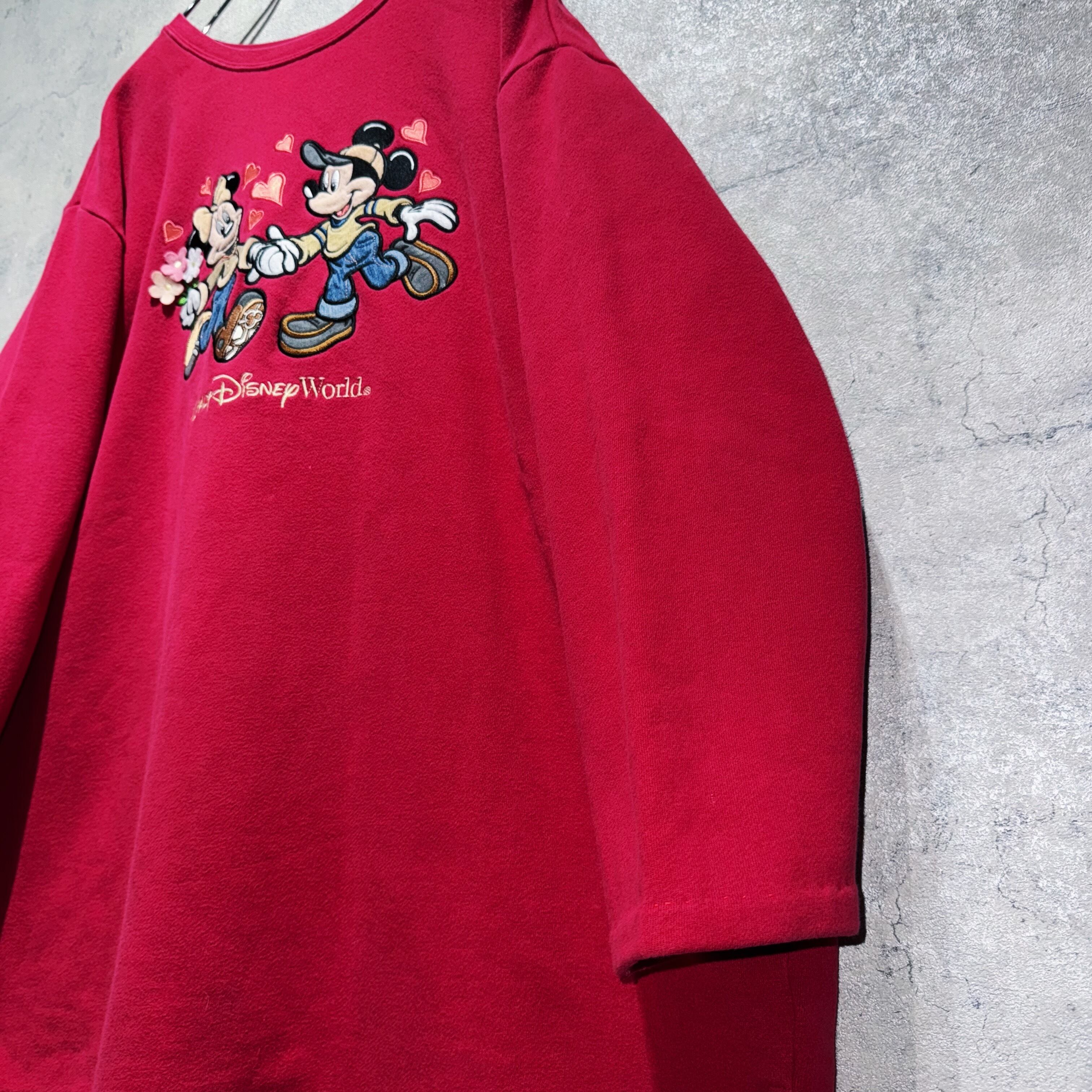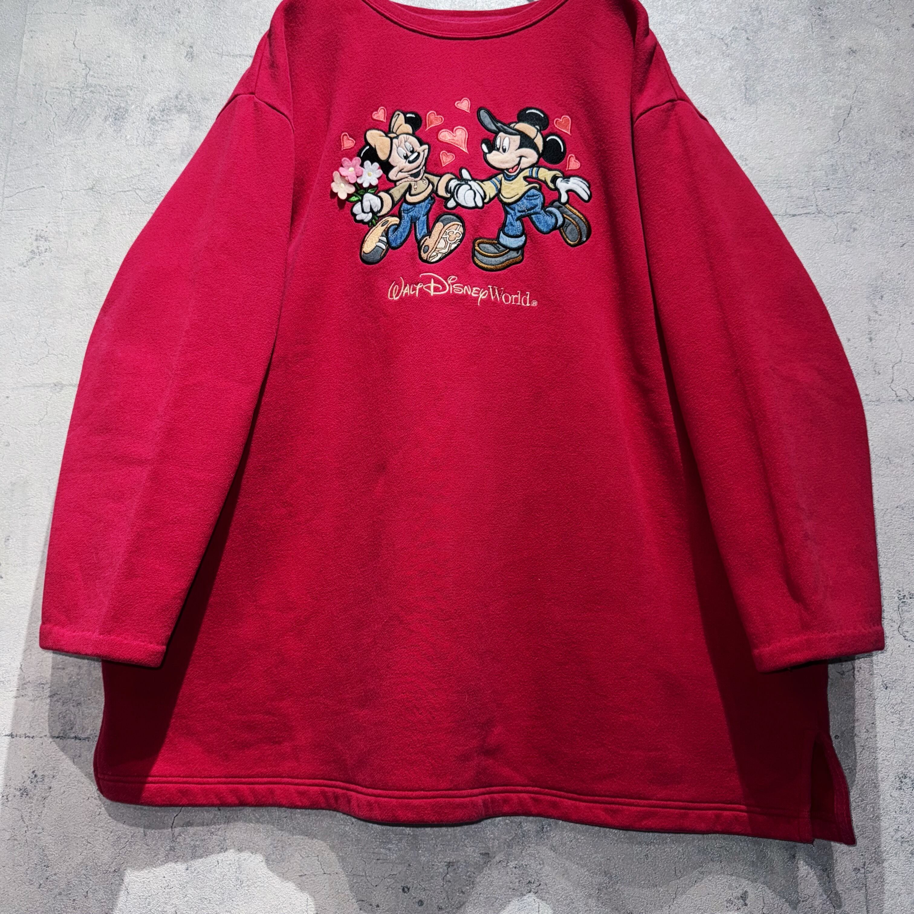00's"Disney"Mickey&Minnie lovey-dovey design embroidery pullover sweat