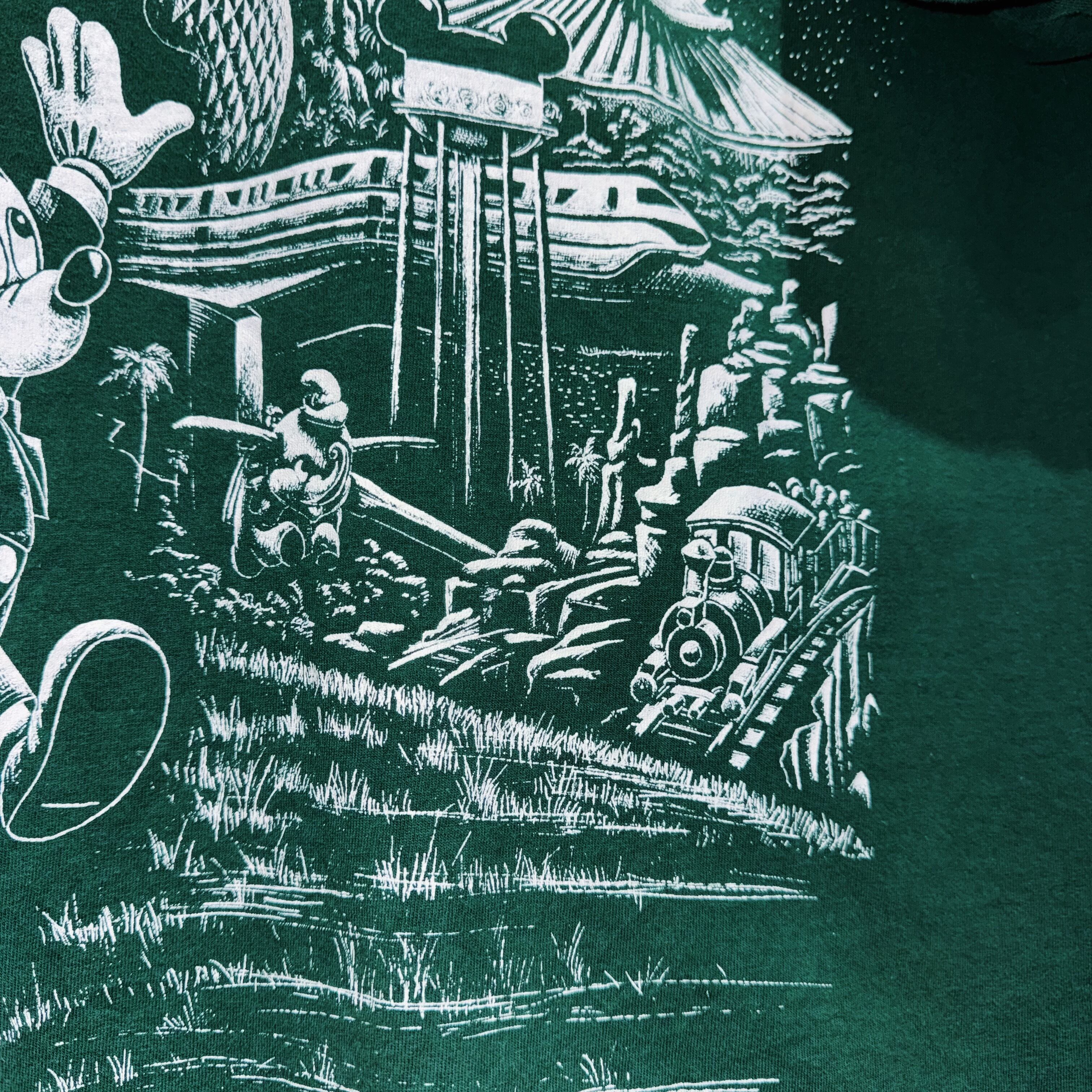 シンデレラ城やスペースマウンテン、エプコットなど当時の各パークの特徴的な建物がしっかり写ったgoodなデザインです。