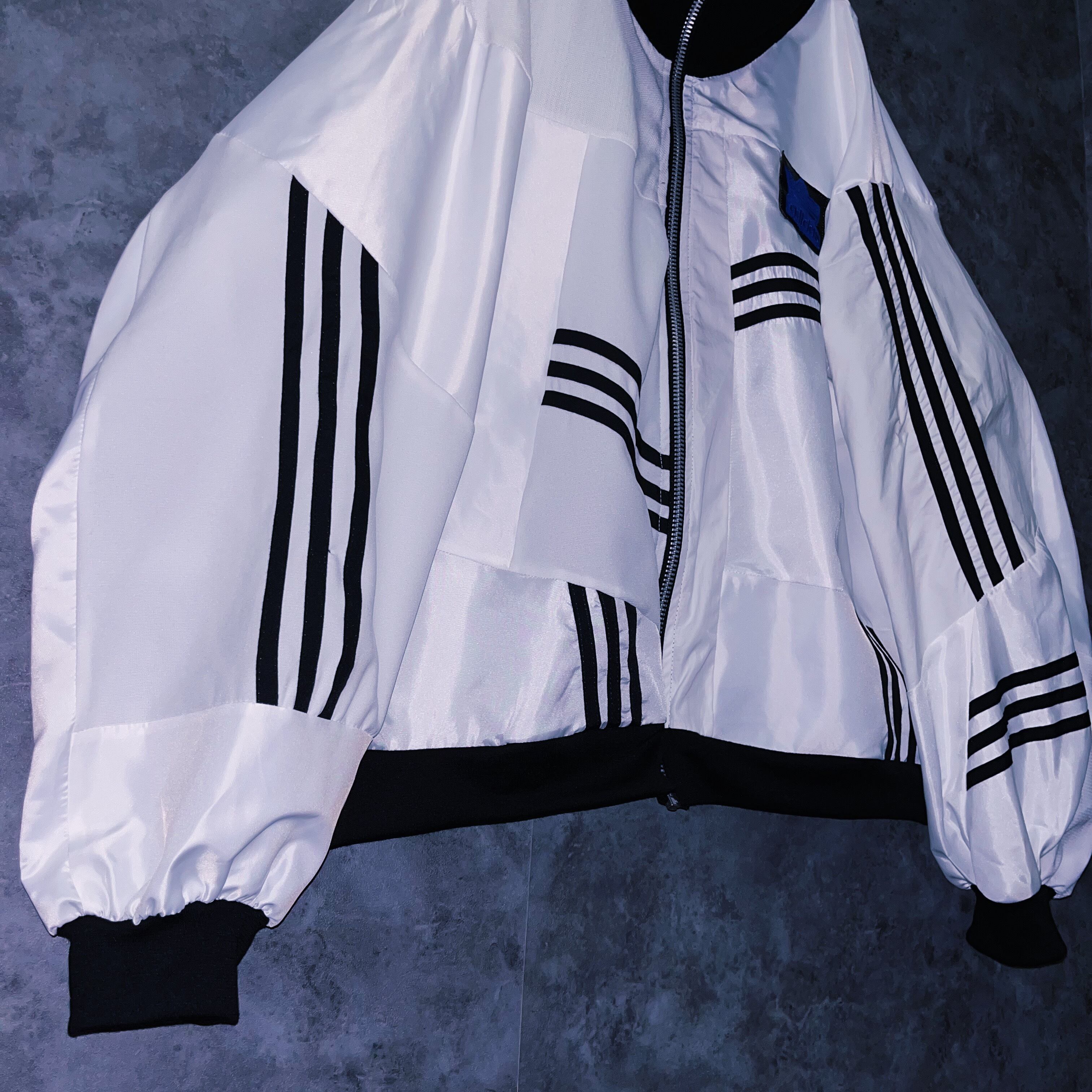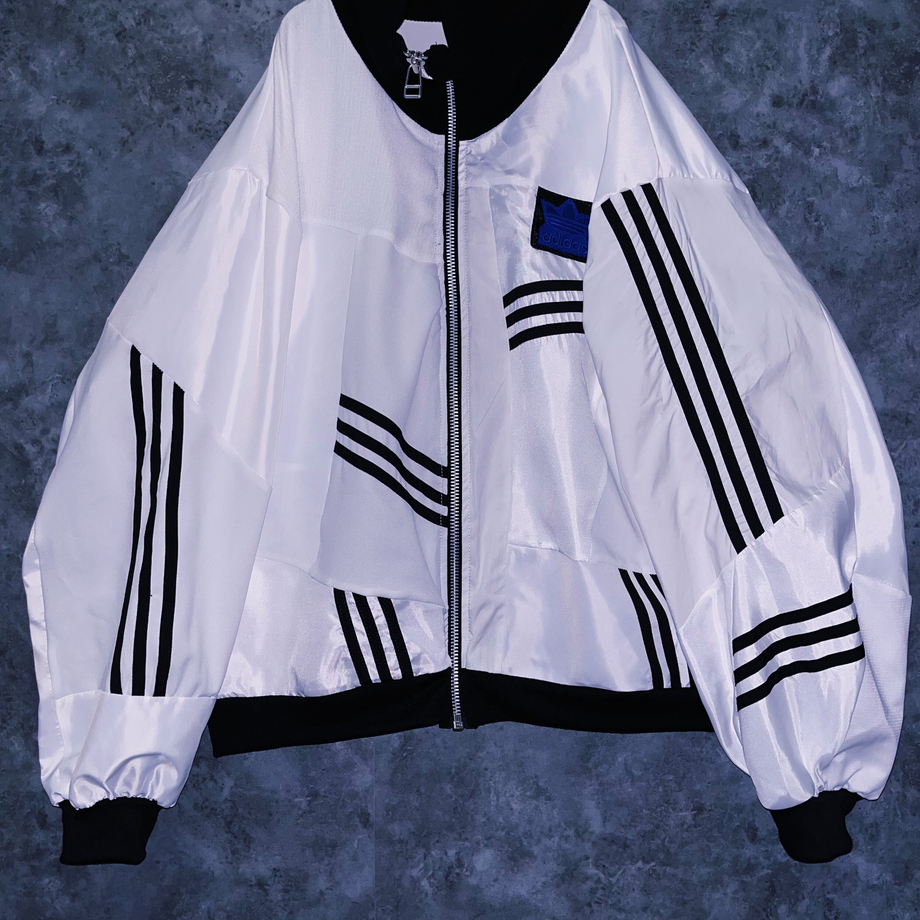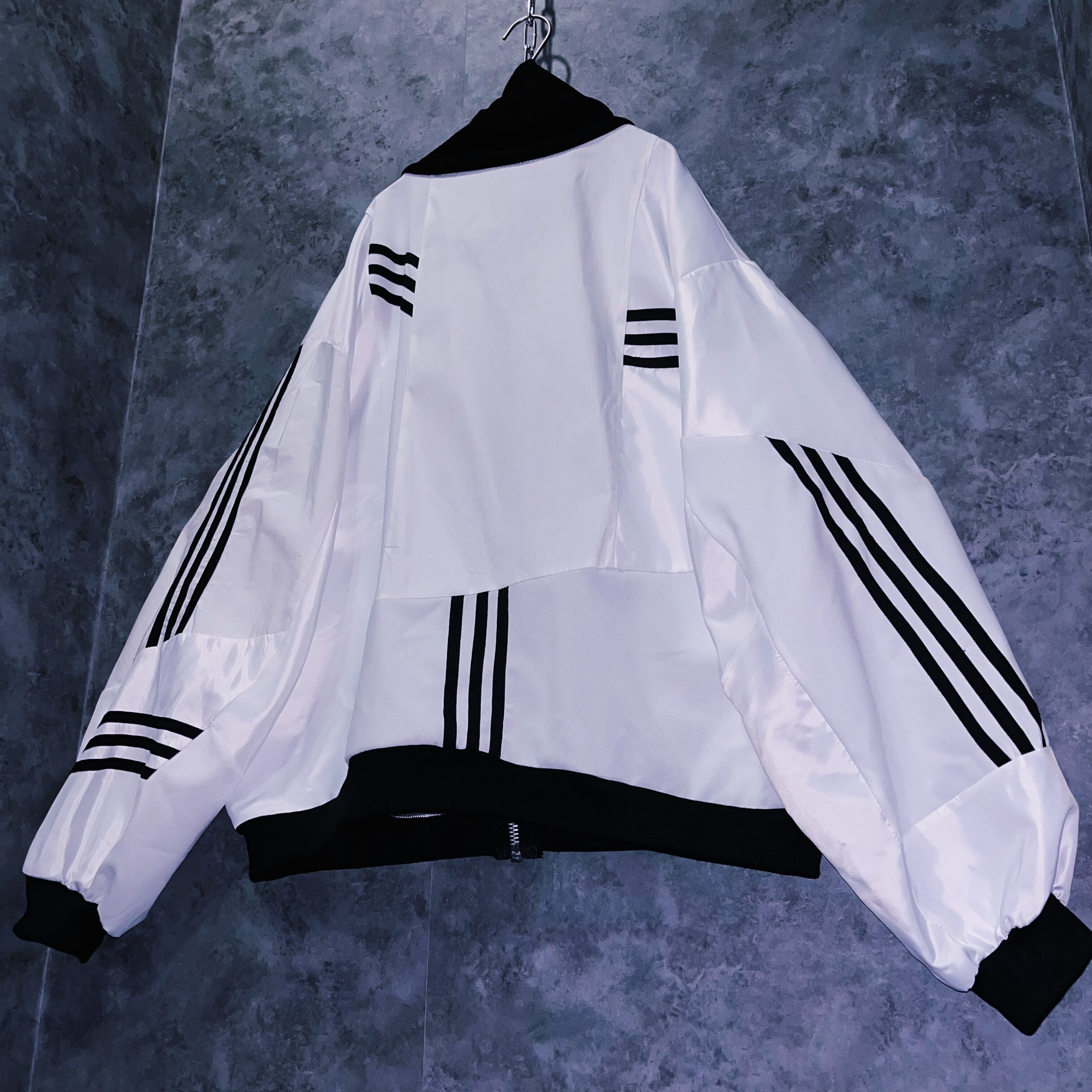 他数のトラックジャケットをパッチワークでデザインを施しており、全てバラバラで圧巻の存在感。無数のトラックジャケットで中には名チームや企業などのチームウェアも存在している個体もあります。