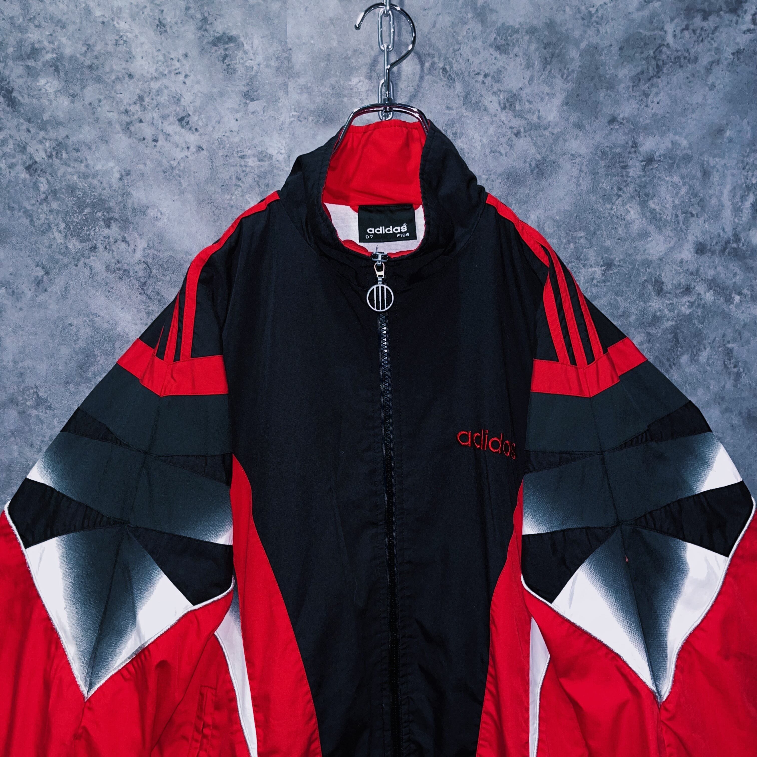 Vintage “adidas” stripe shoulder switching color design Nylon track jacket