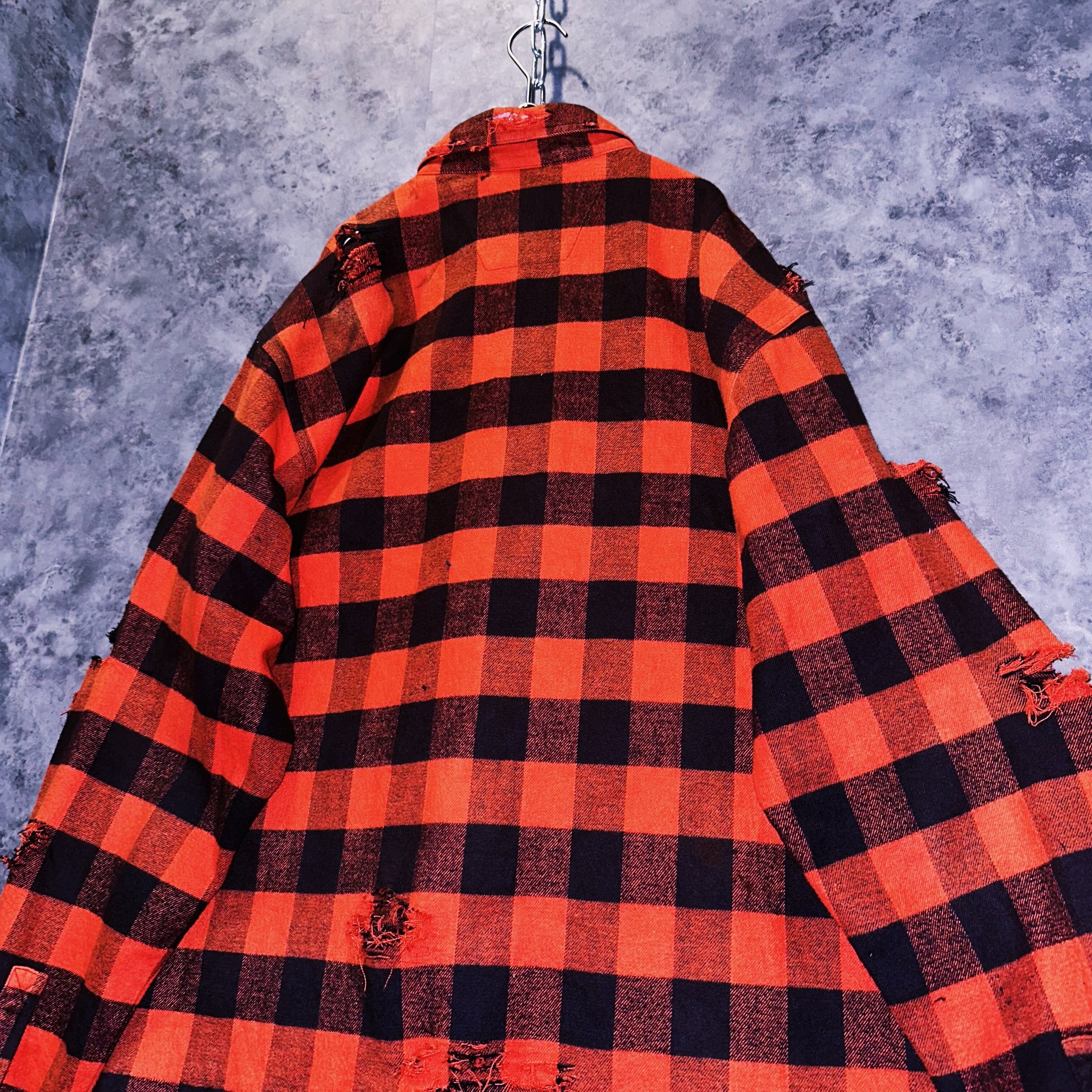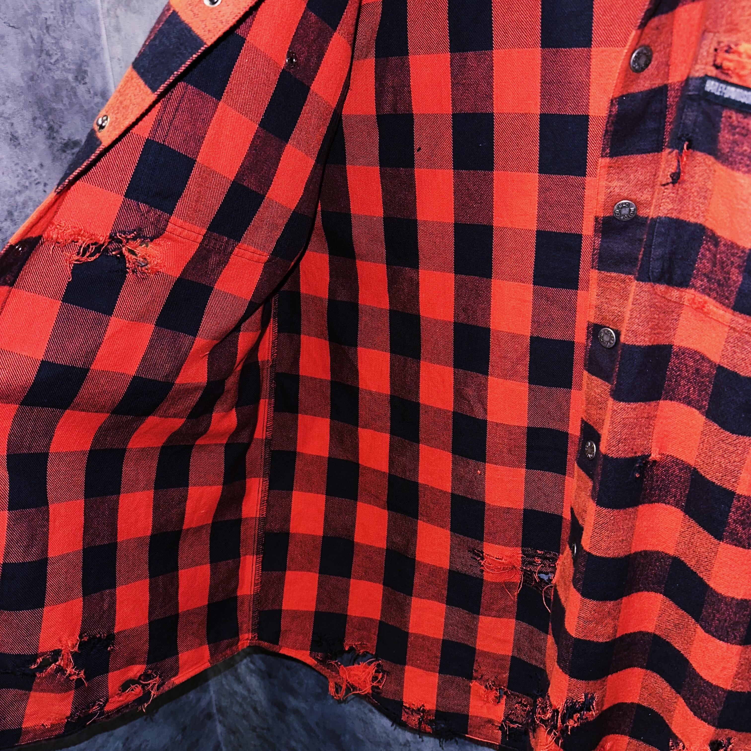ヴィンテージ"Harley-Davidson"ブロックチェックデザインボロカスタムL/Sシャツ