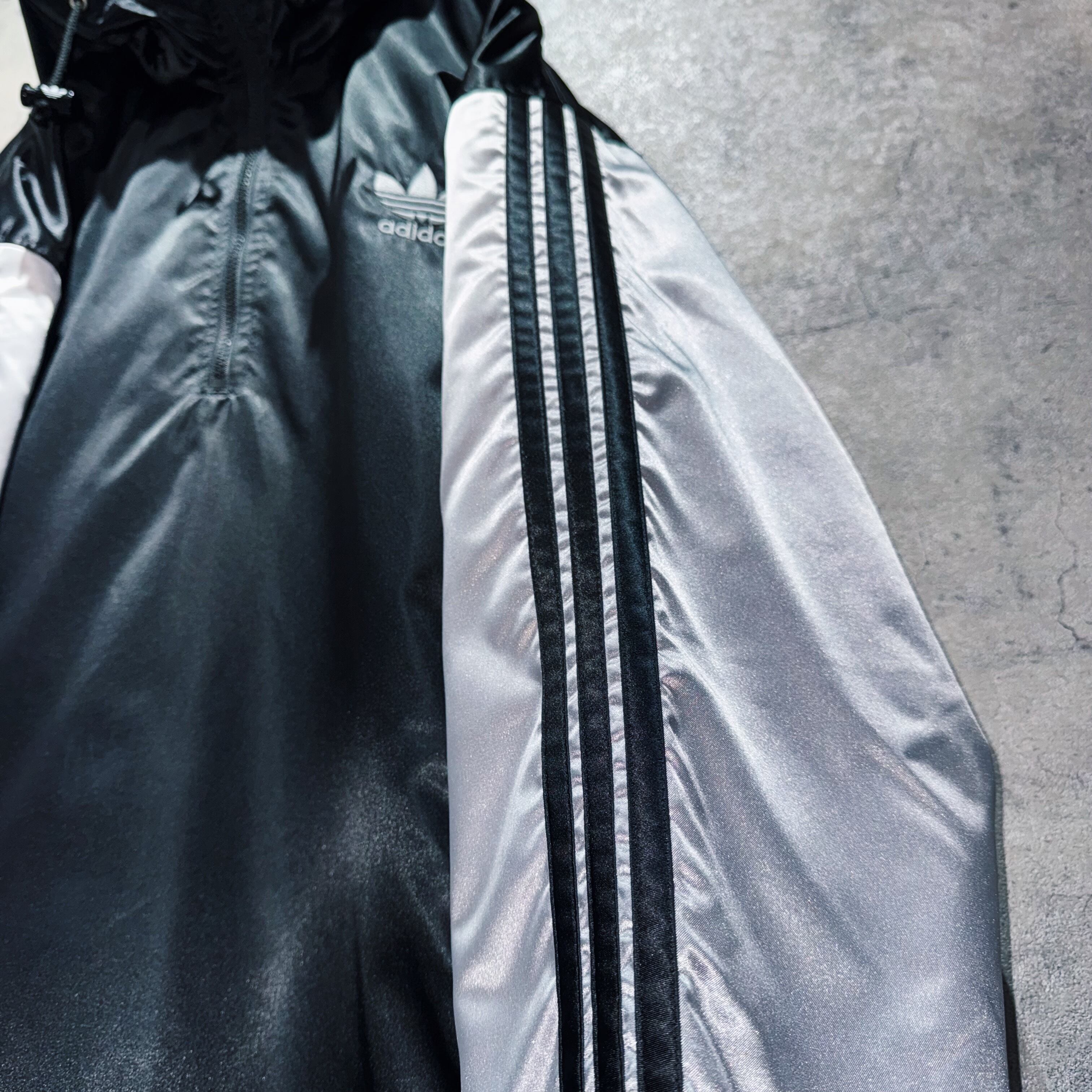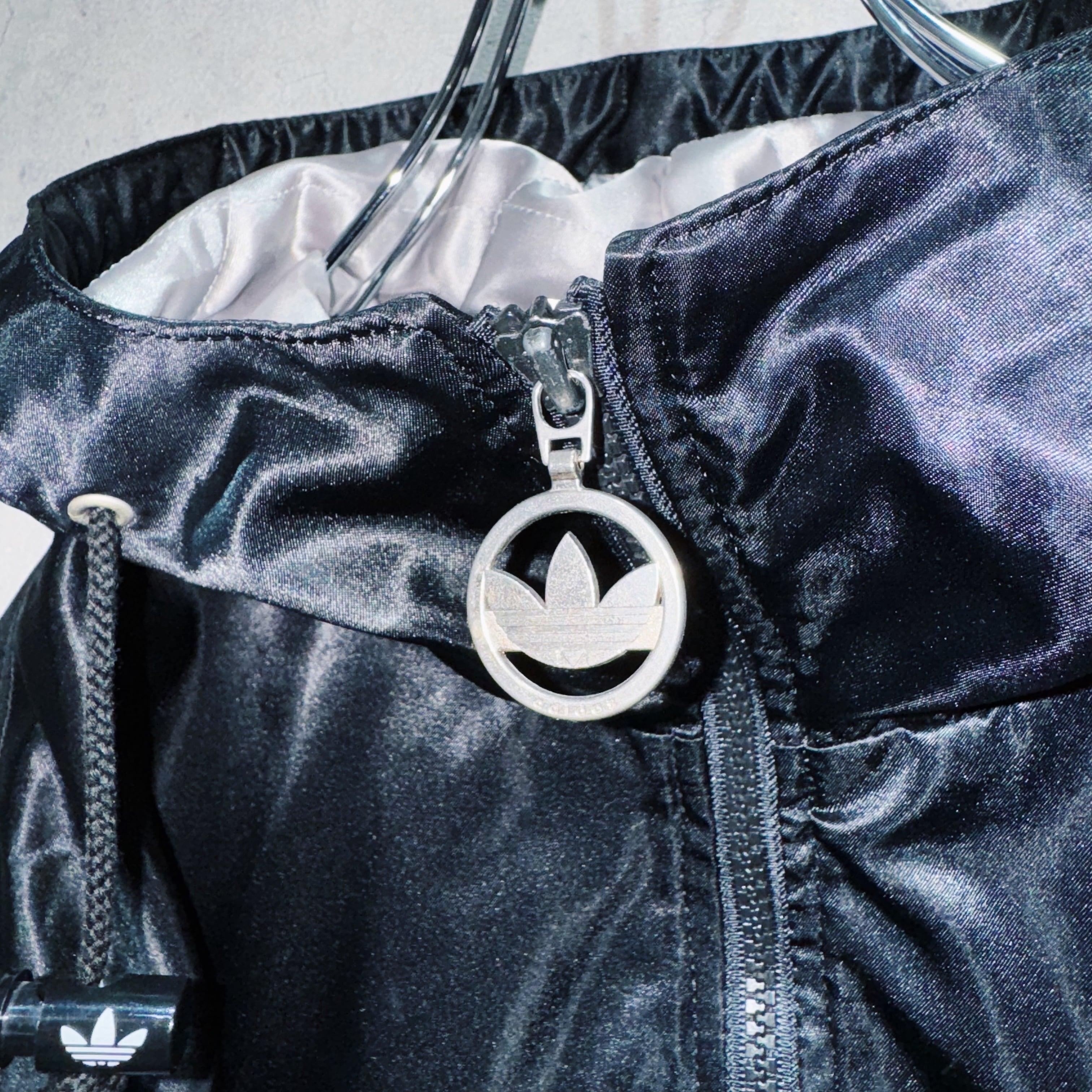 ブラックのボディに袖元や背面のトレフォイルロゴがシルバーカラーにスイッチングした、メタリック且つ高級感のあるトラックジャケット。