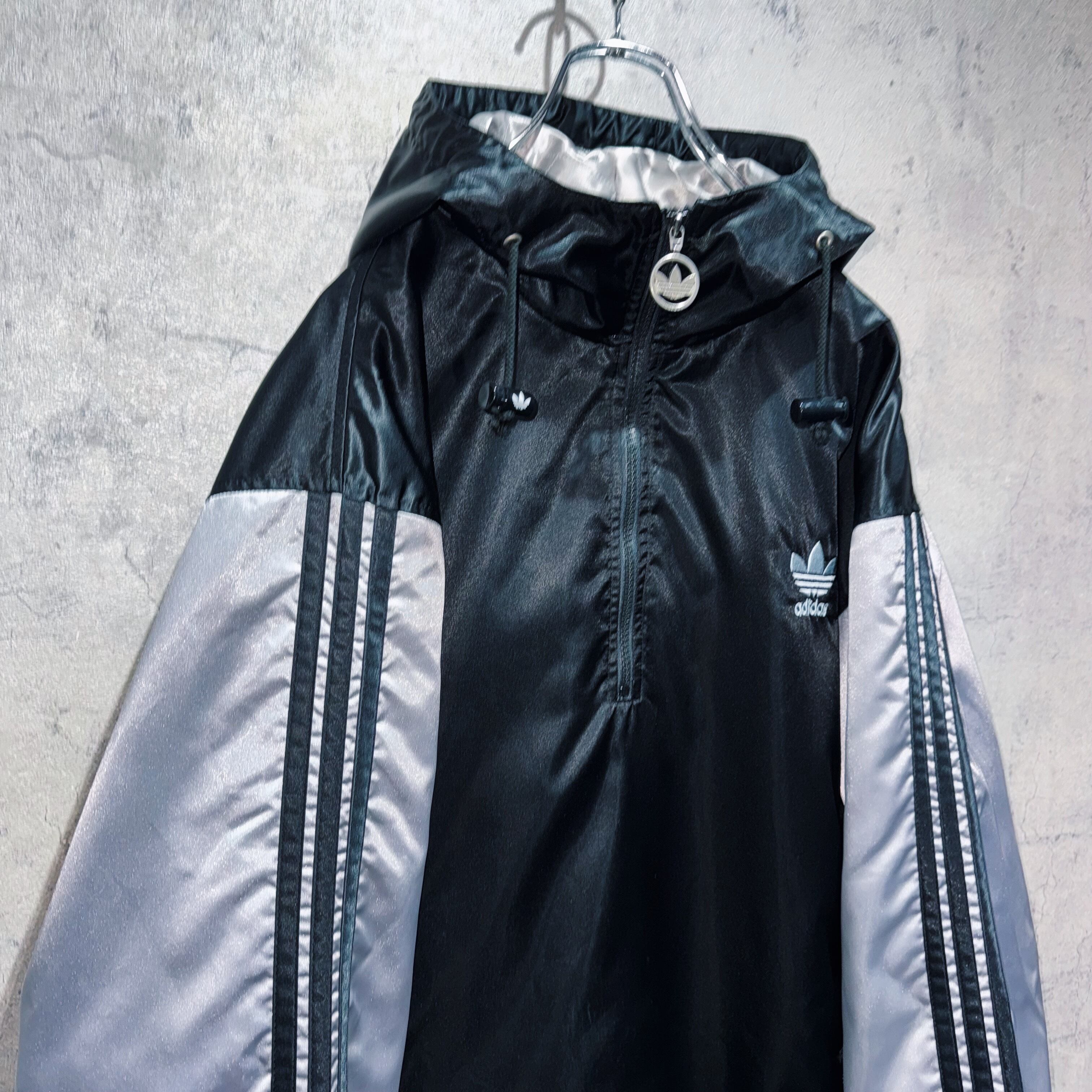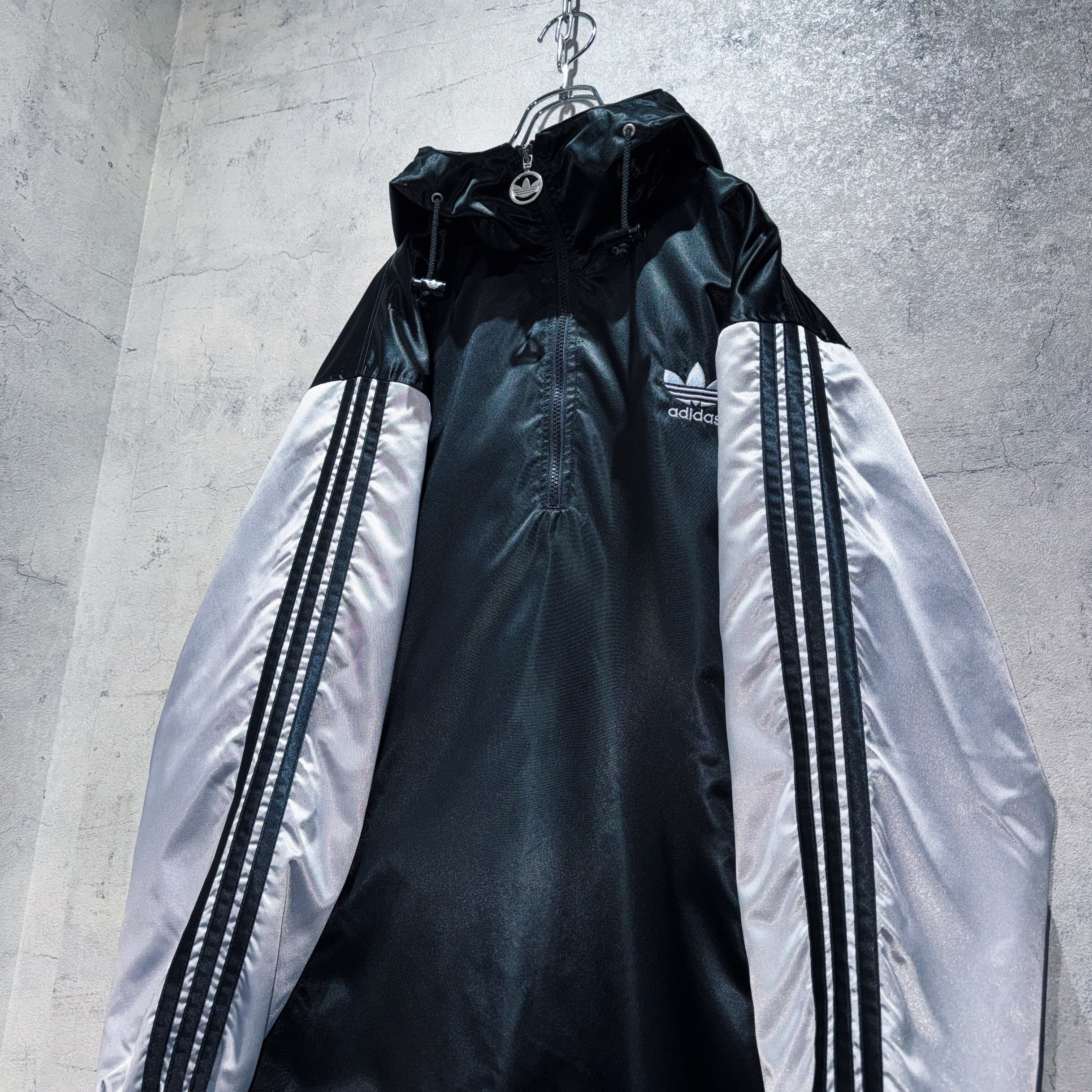80年代"アディダス"ブラック×シルバーカラーリングハーフジップデザイントラックジャケット