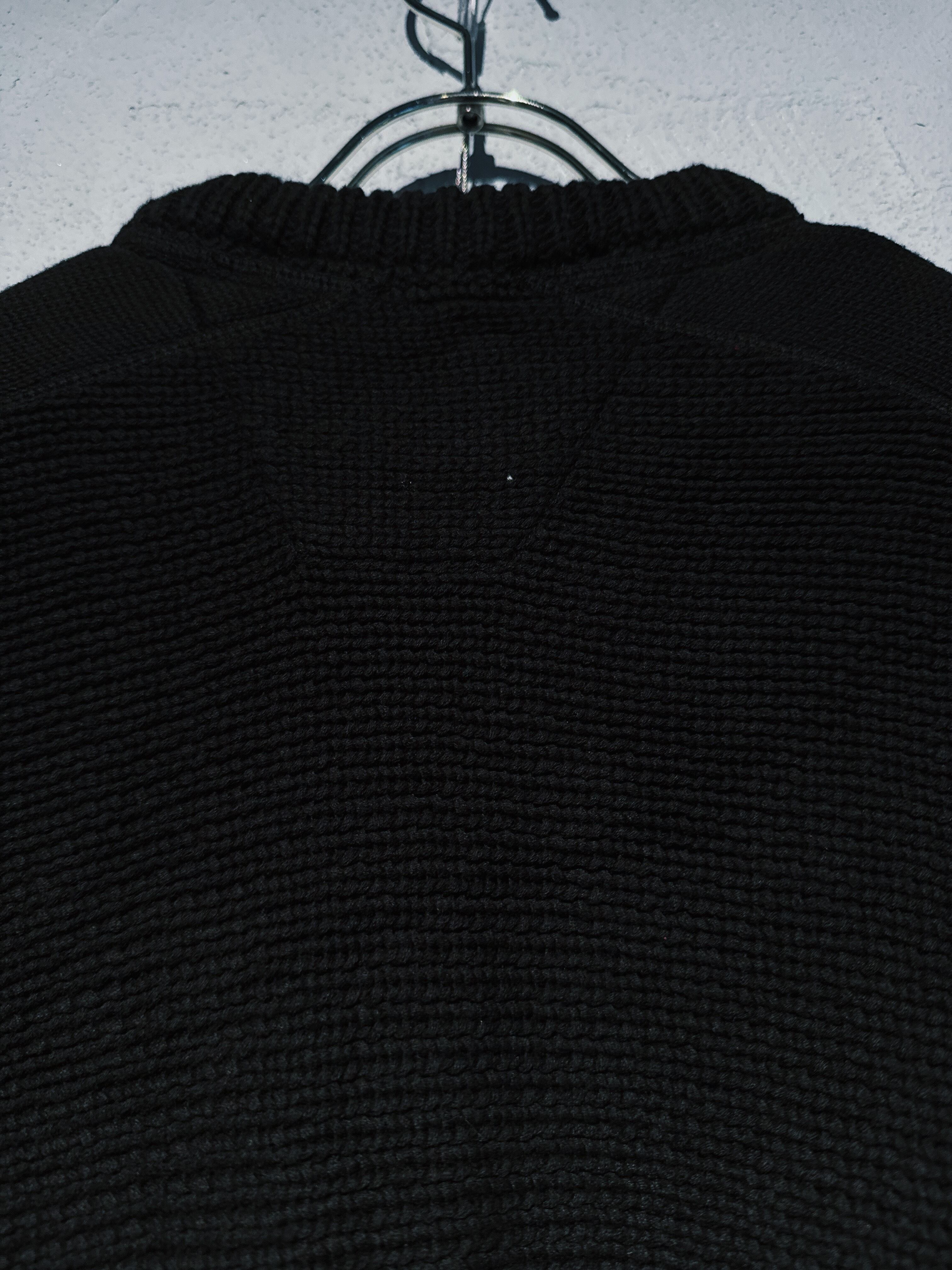 シンプルかつ惹き込まれるブラックカラーに身を包んだプルオーバーのデザインニット。