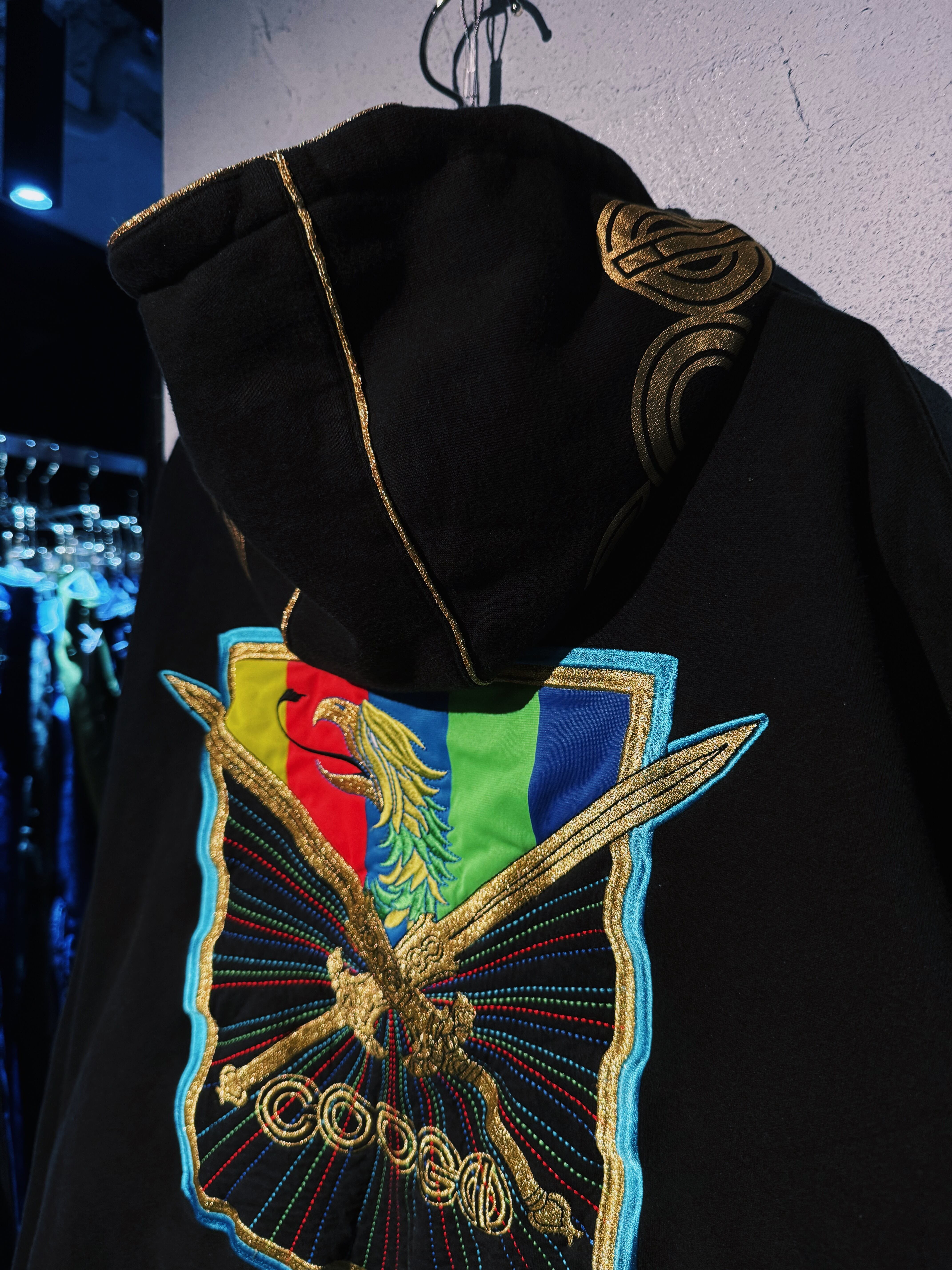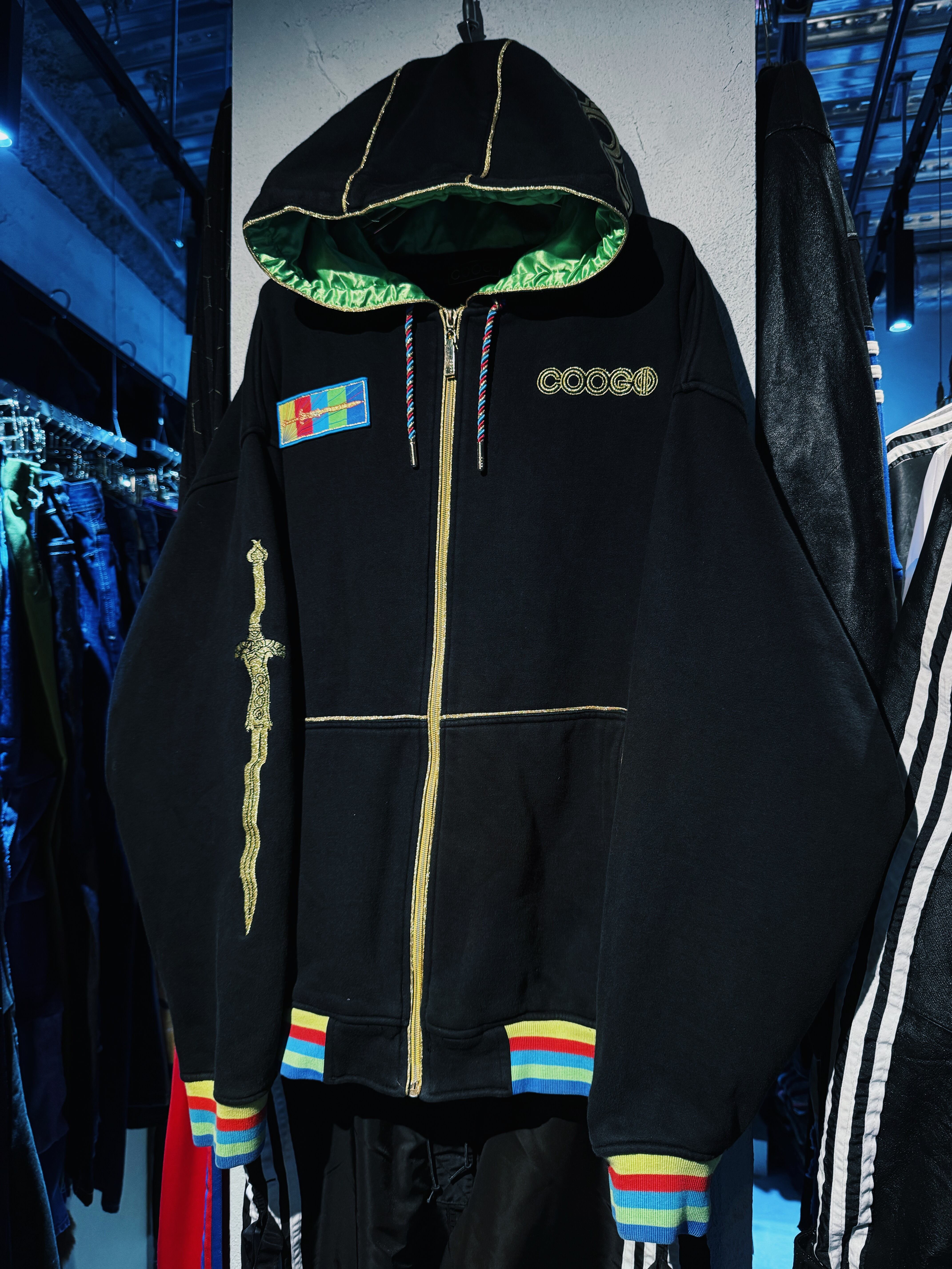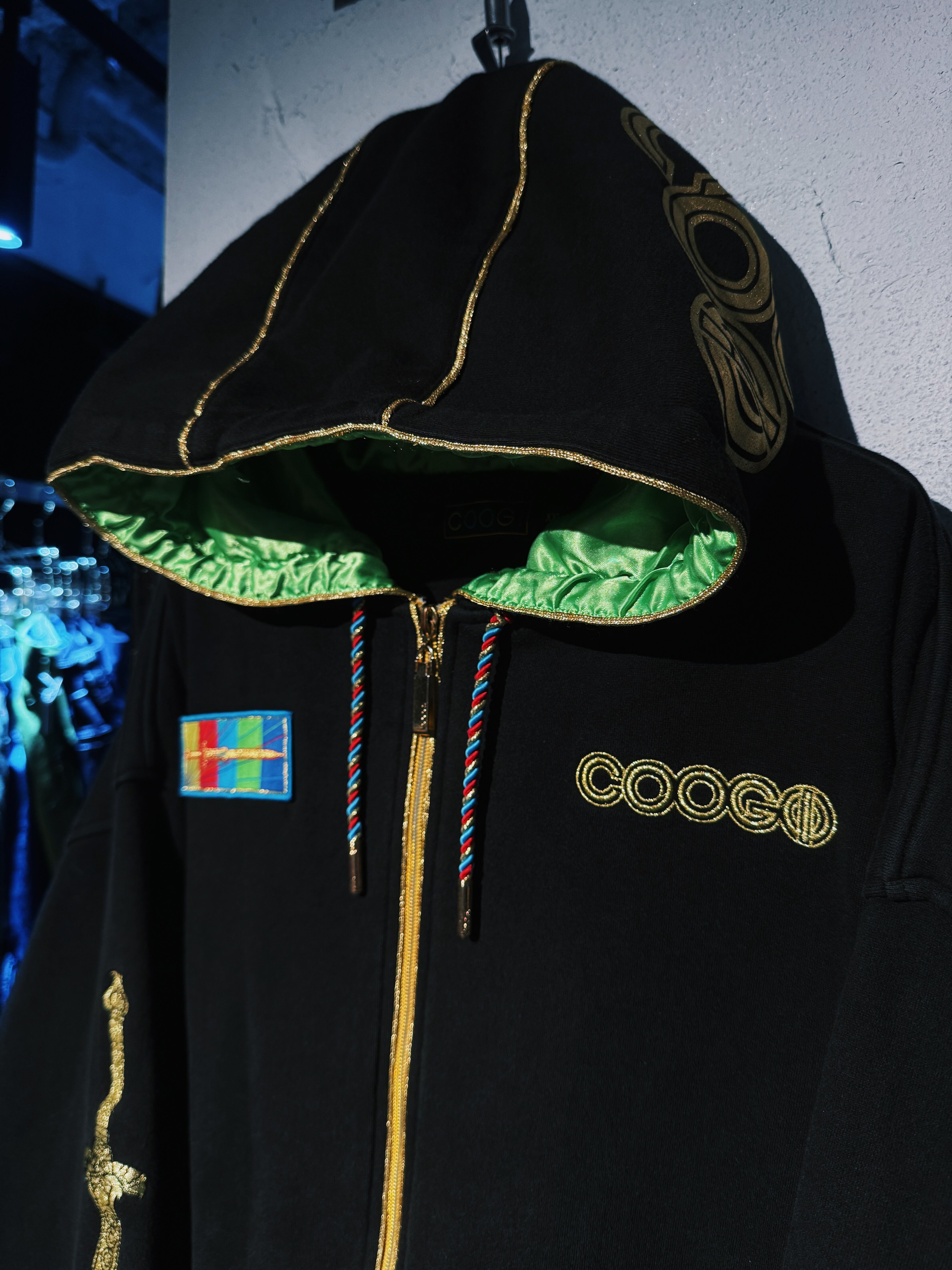 vintage "COOGI" sword embroidery design gold color switching zip up hoodie