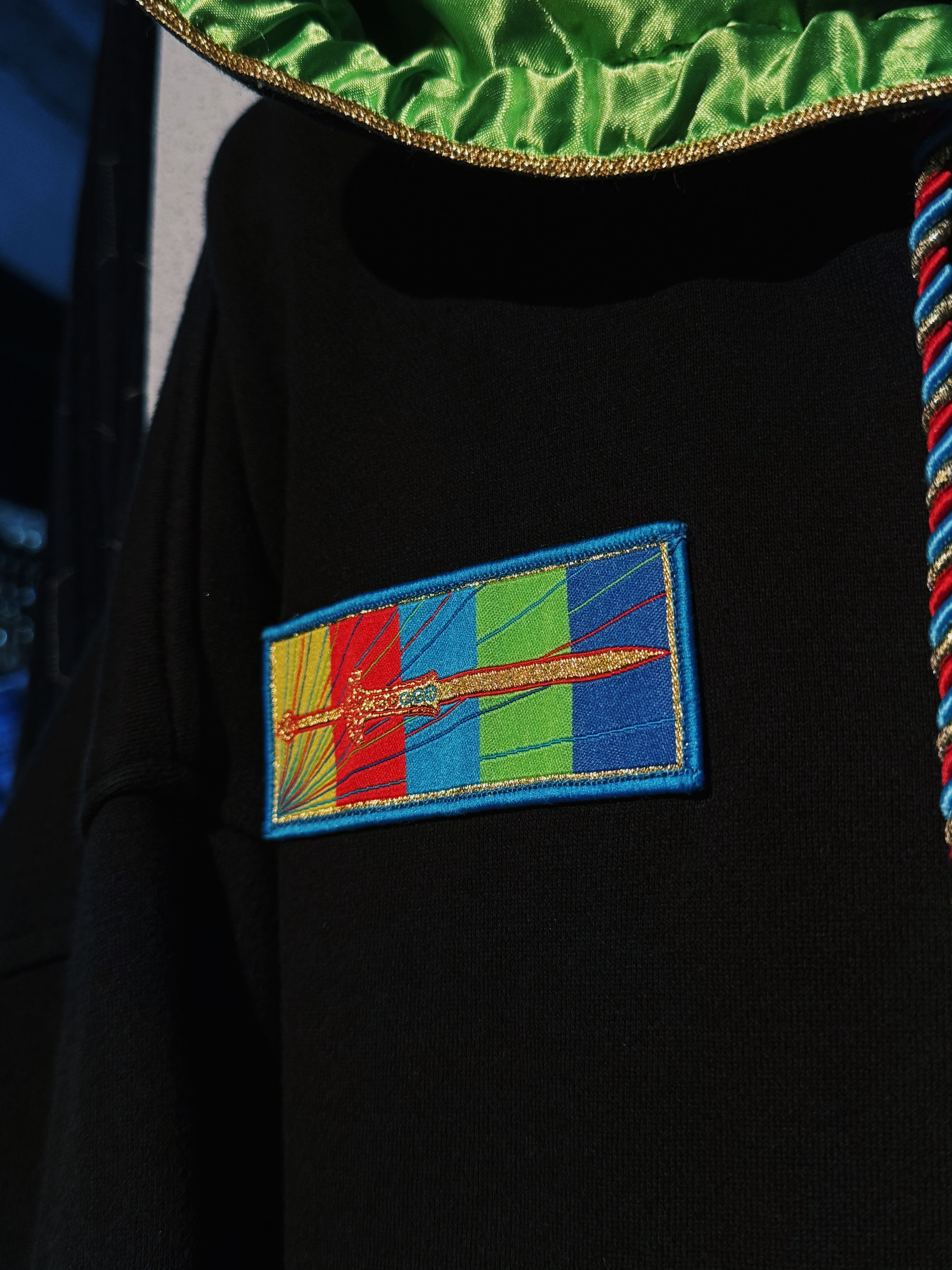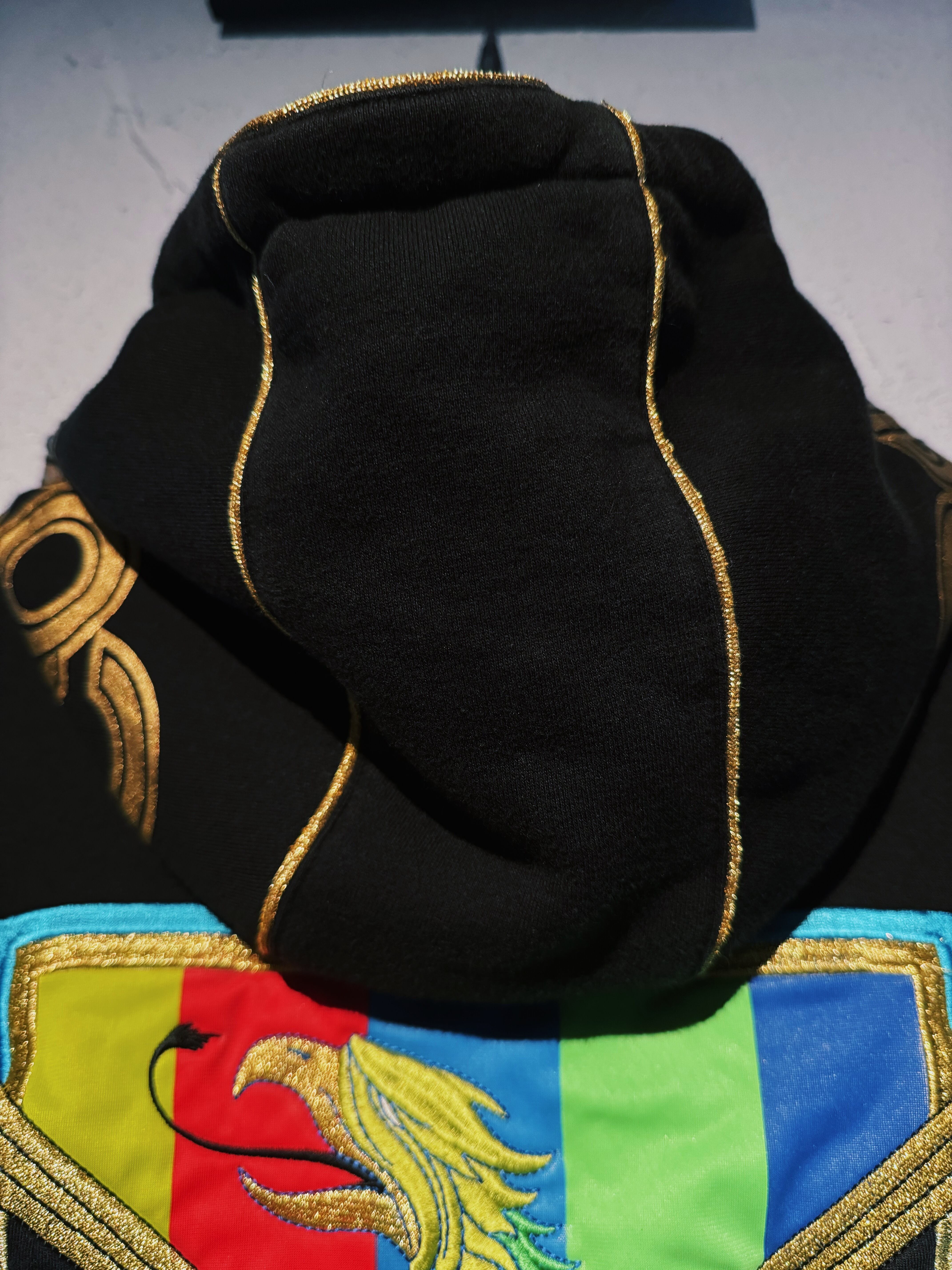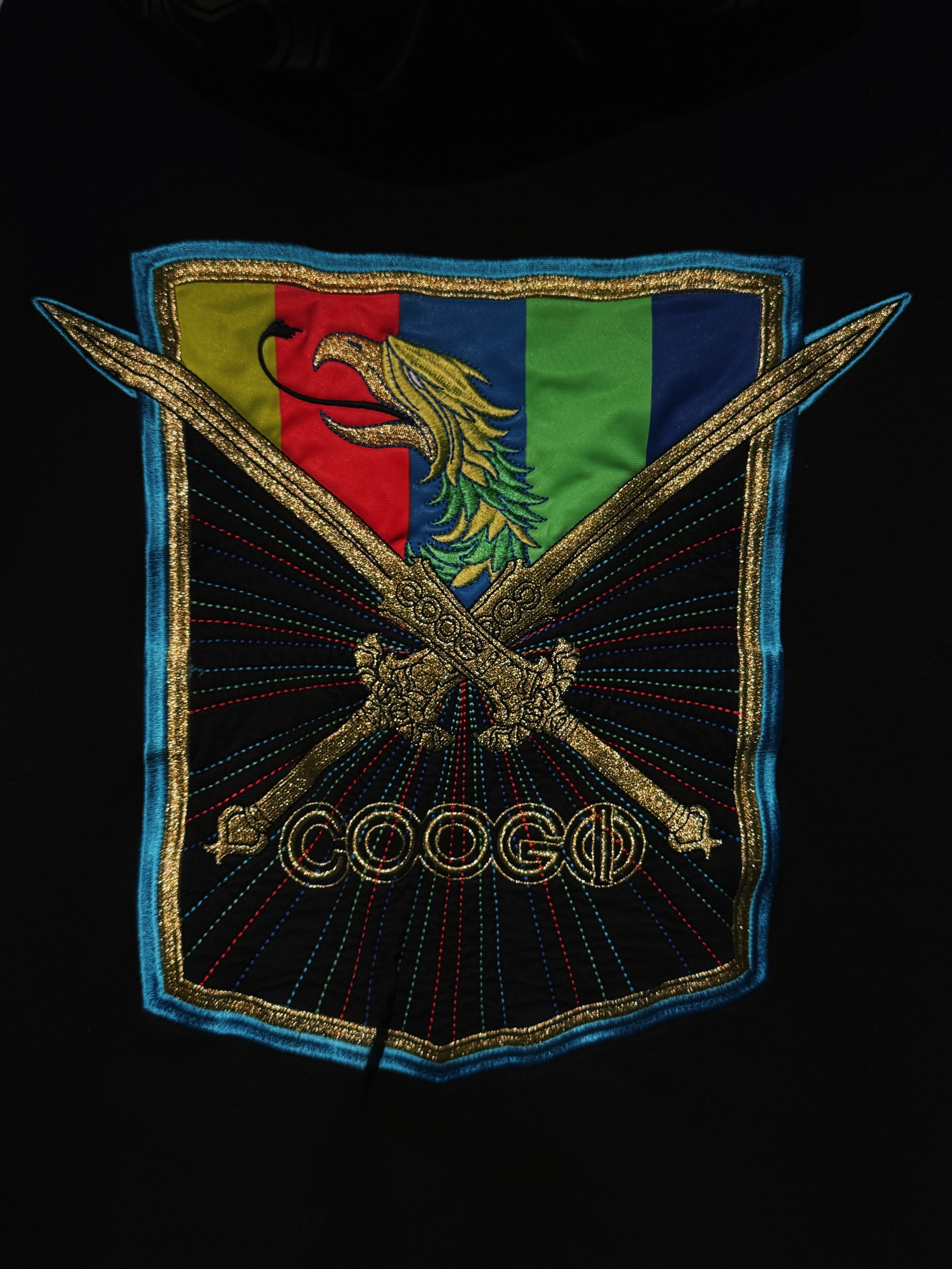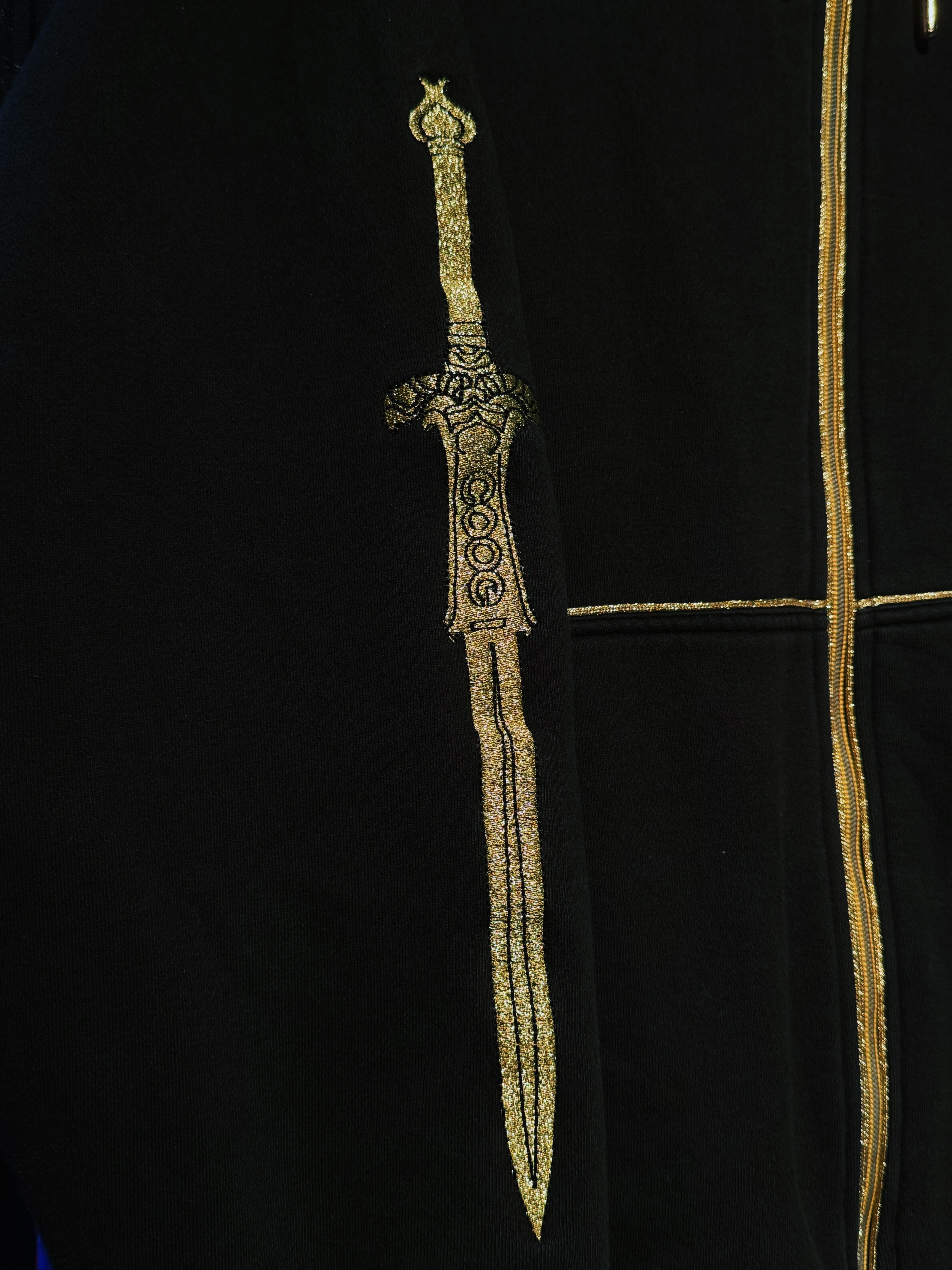 vintage "COOGI" sword embroidery design gold color switching zip up hoodie