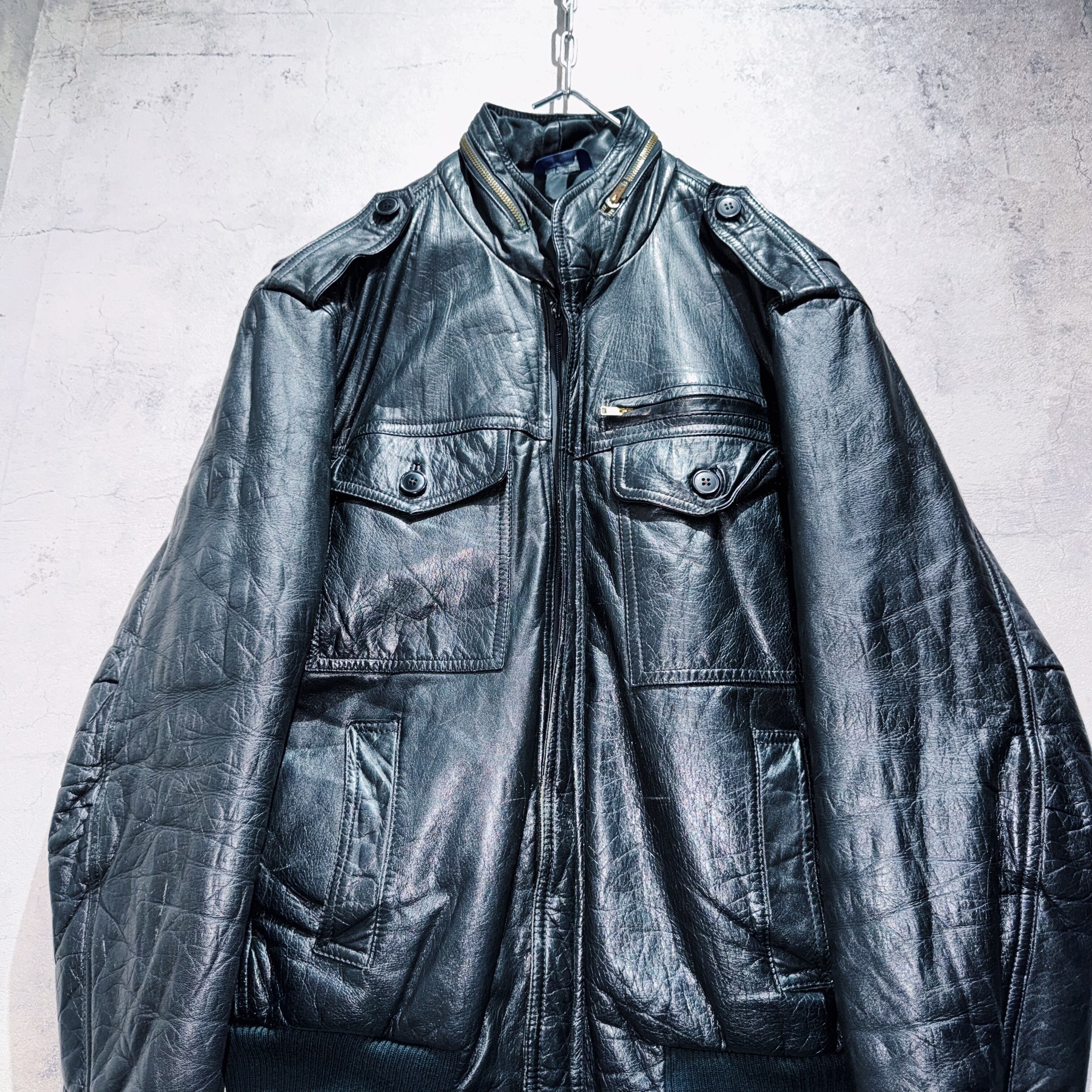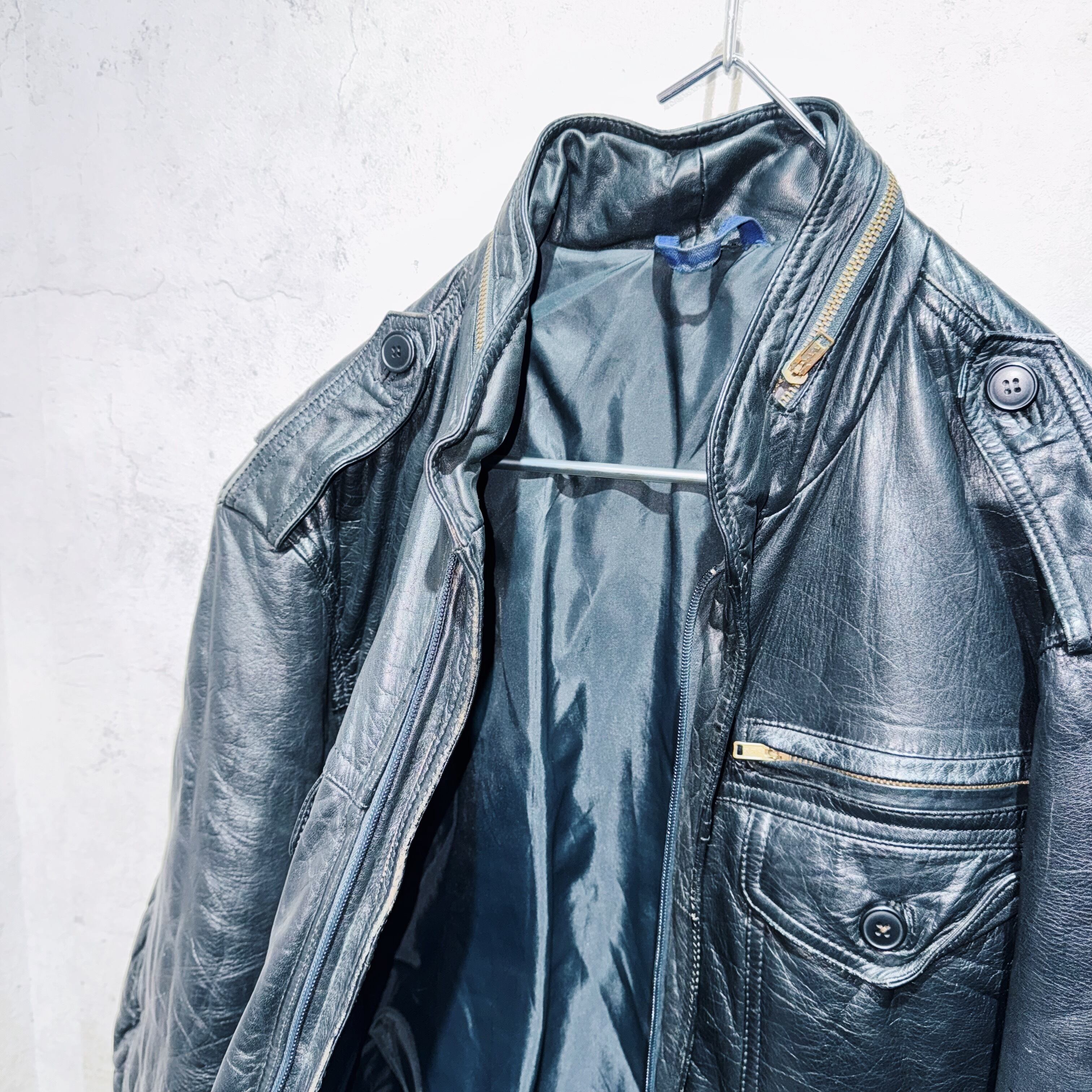 80年代ヴィンテージディアスキンイタリア製ミリタリーレザージャケット