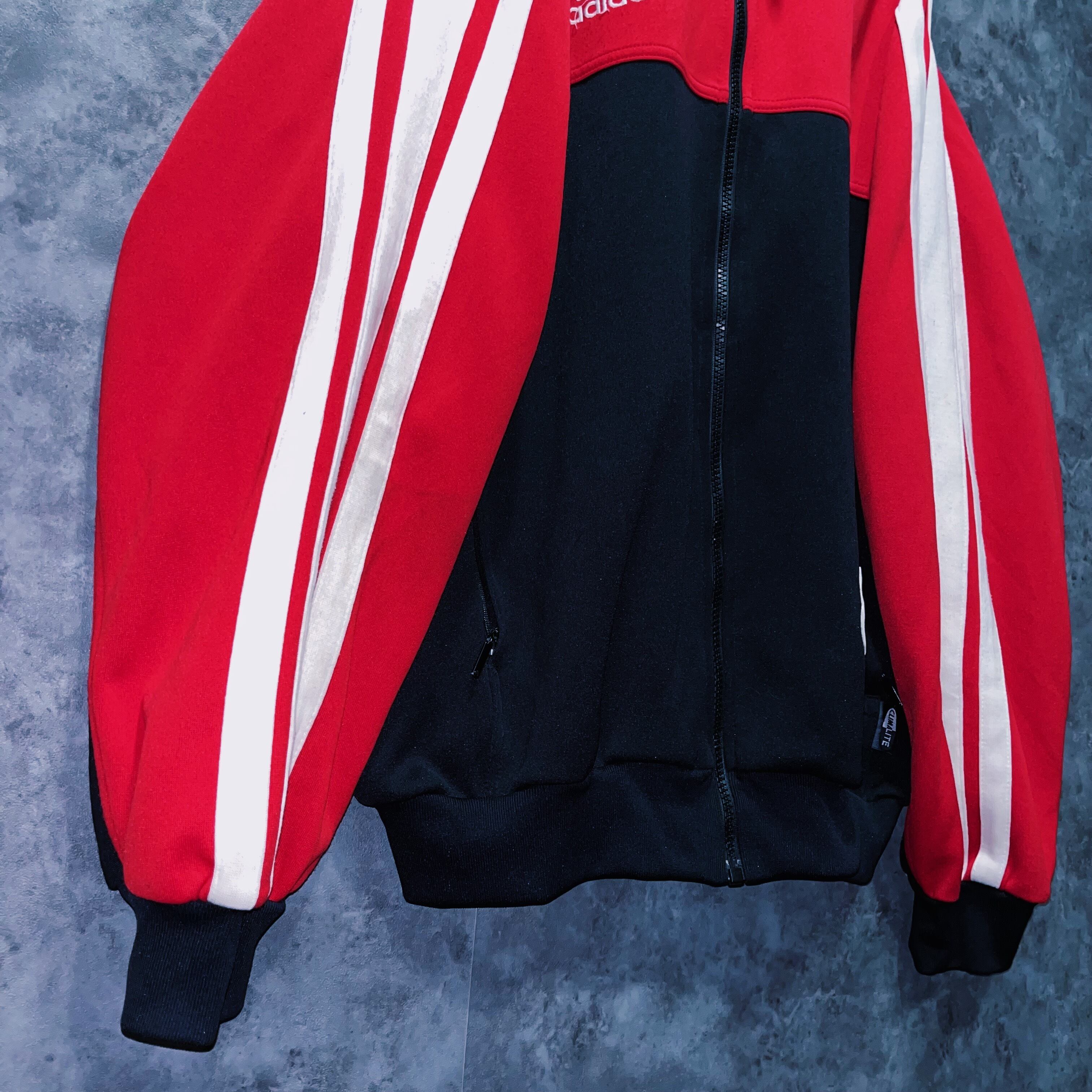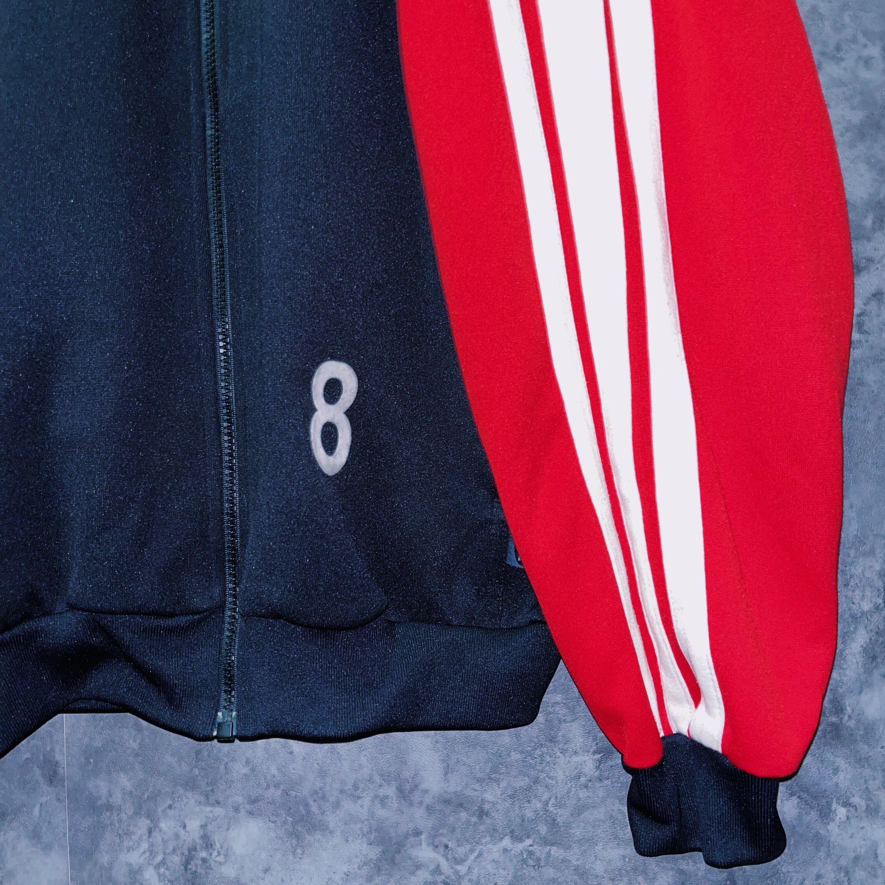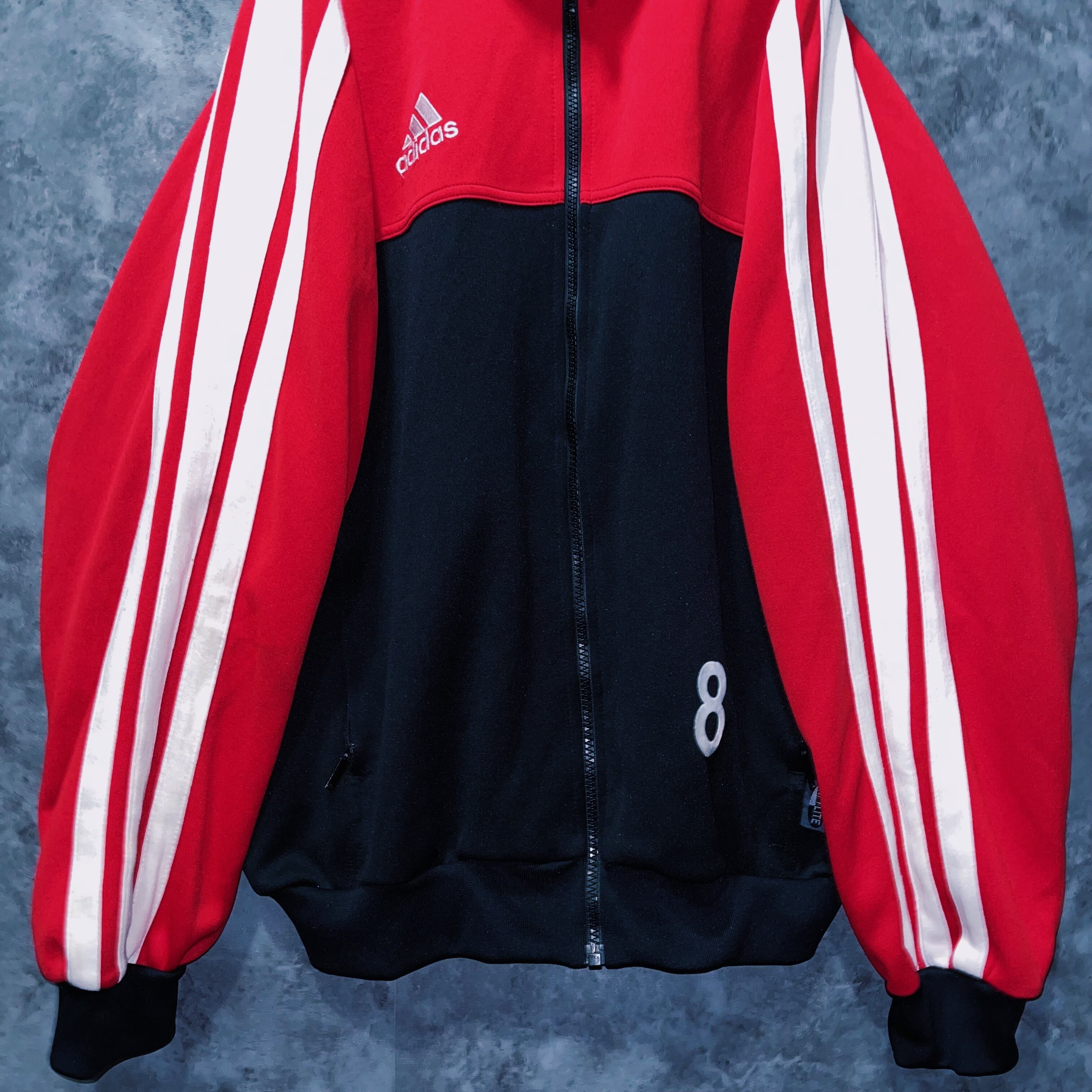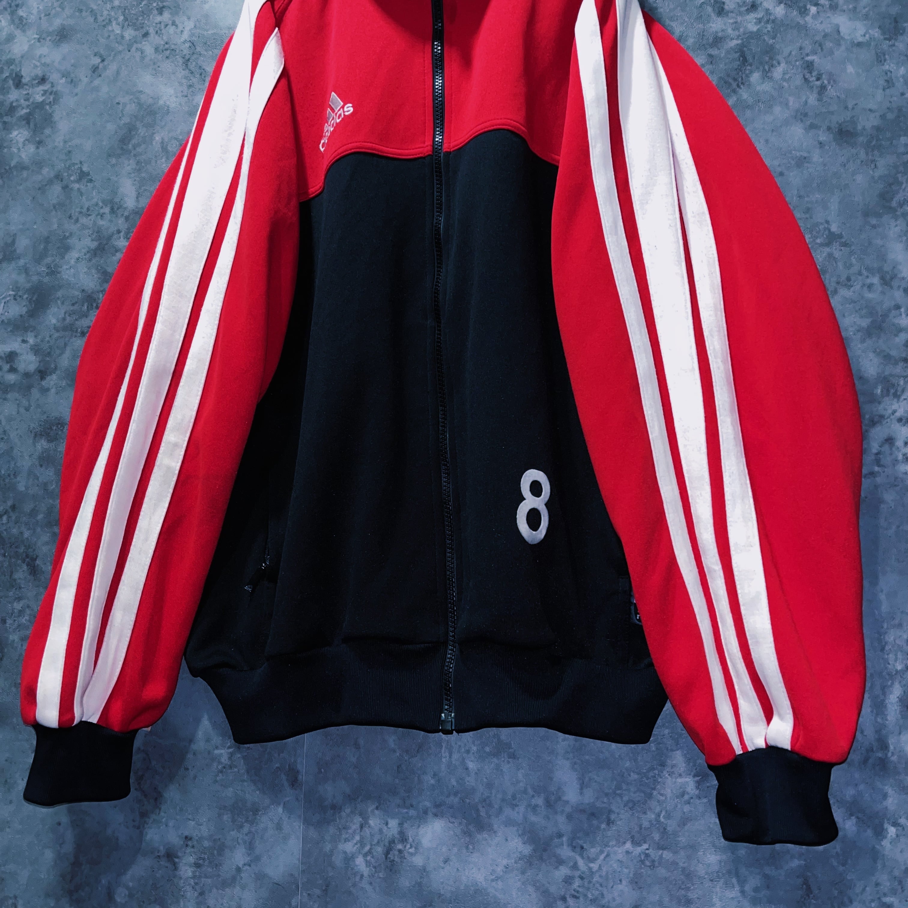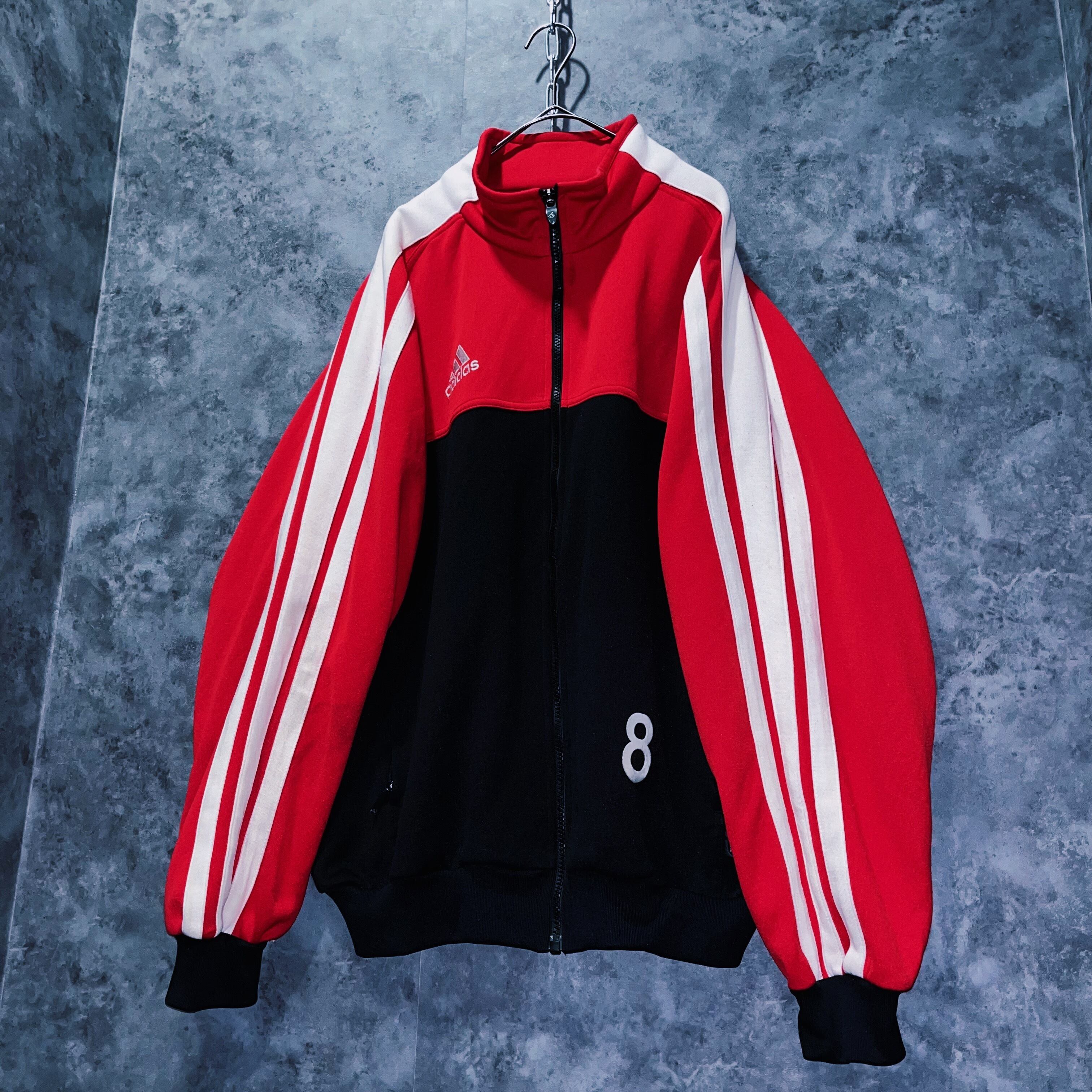 ブラックとレッドカラーのかっこいいを地でいくカラーリングにアーム部分にはスリーストライプの真ん中のラインが太くされた、珍しいデザインを持った一着。