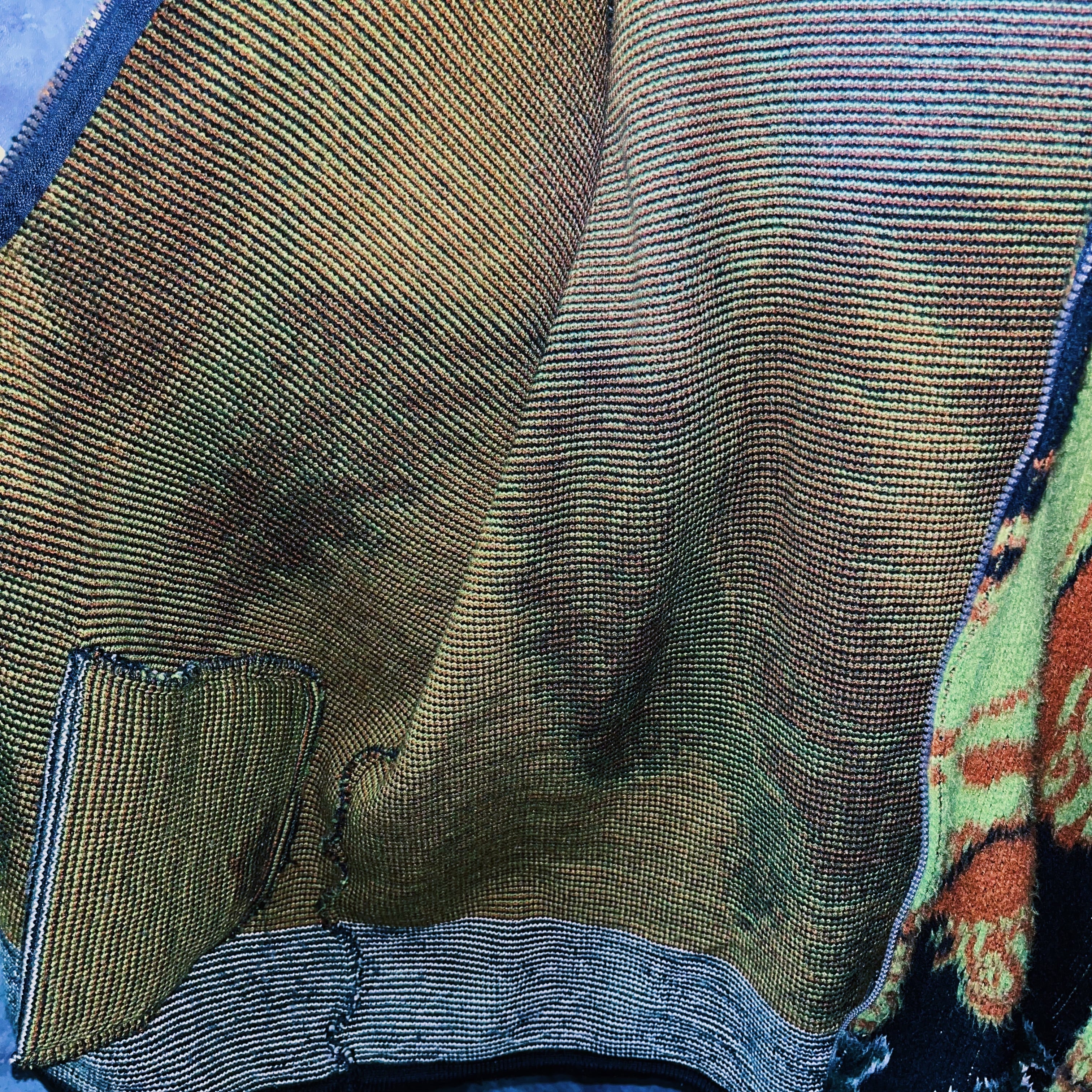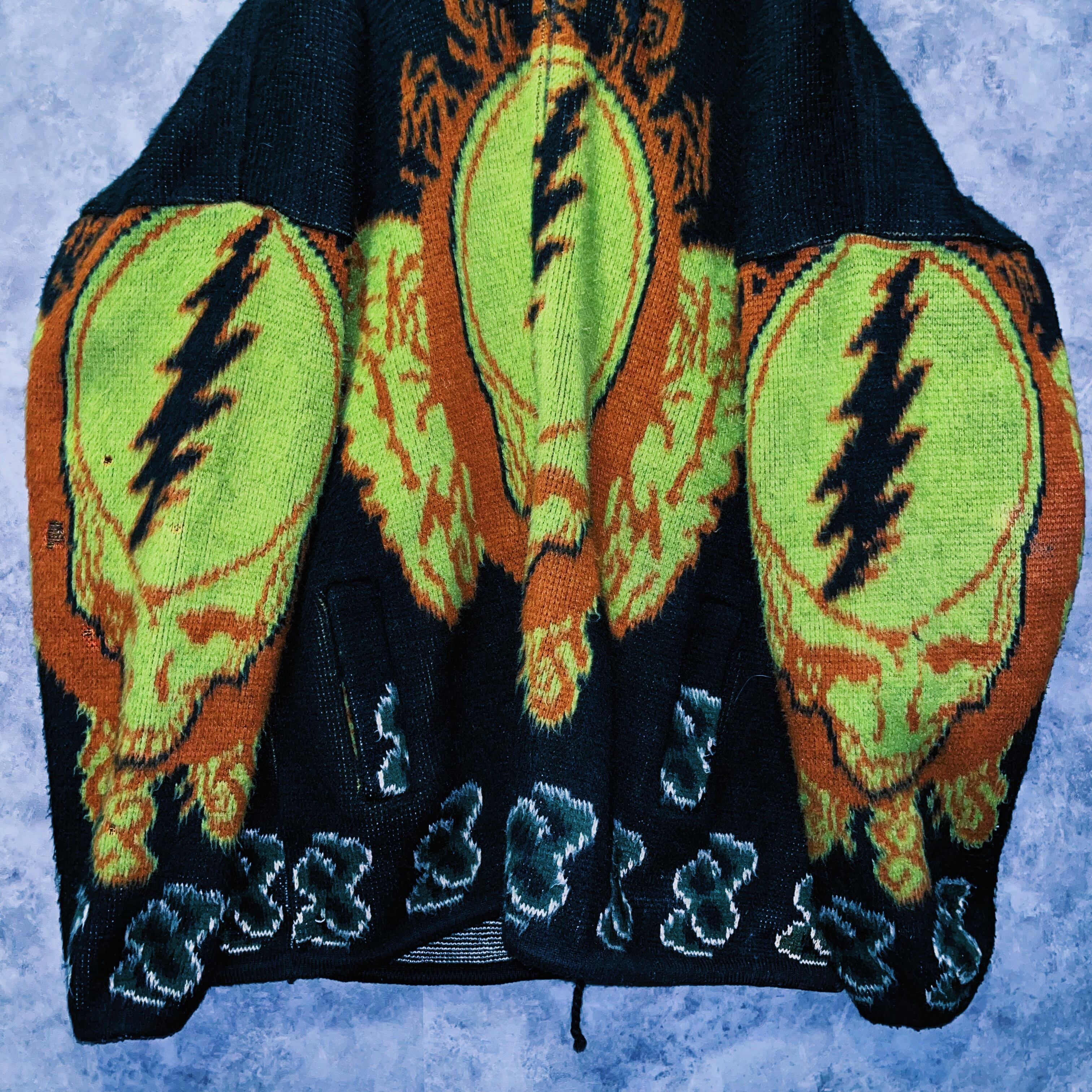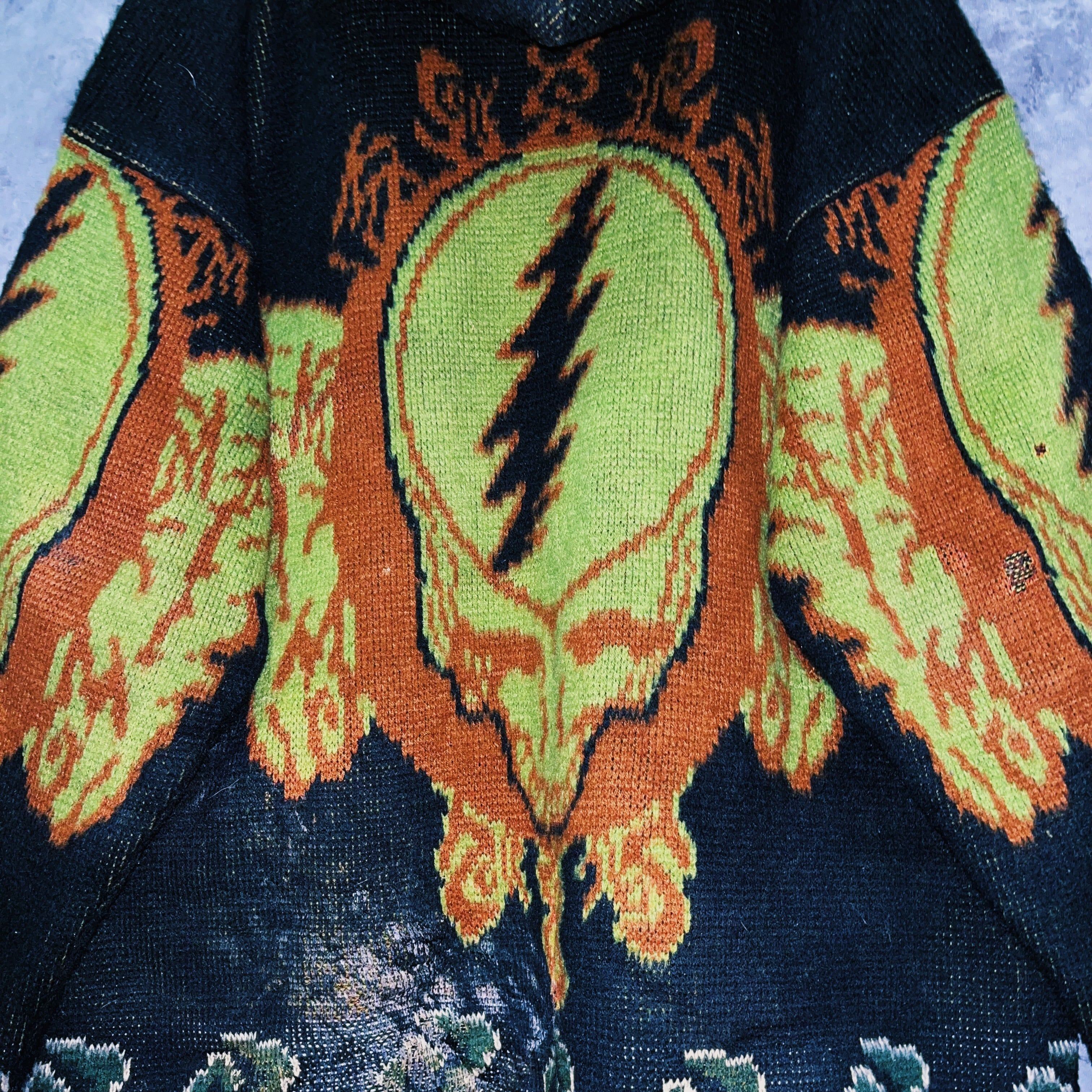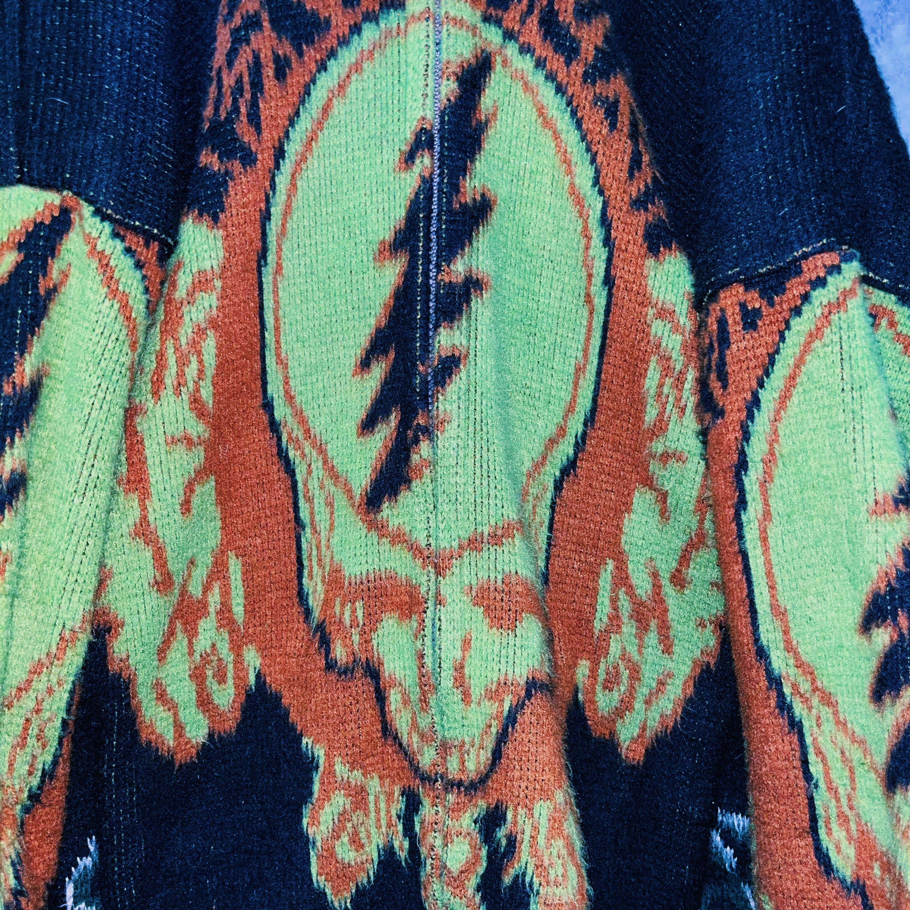 エクアドルのネイティヴパターンで有名な“YARI ARTESANIAS” よりグリーンスカルと稲妻がデザインされた一際目立つ一着。ボディ、アーム、バックそれぞれに大きく骸骨が存在感を放ち、その骸骨の額部分には稲妻が走っています。