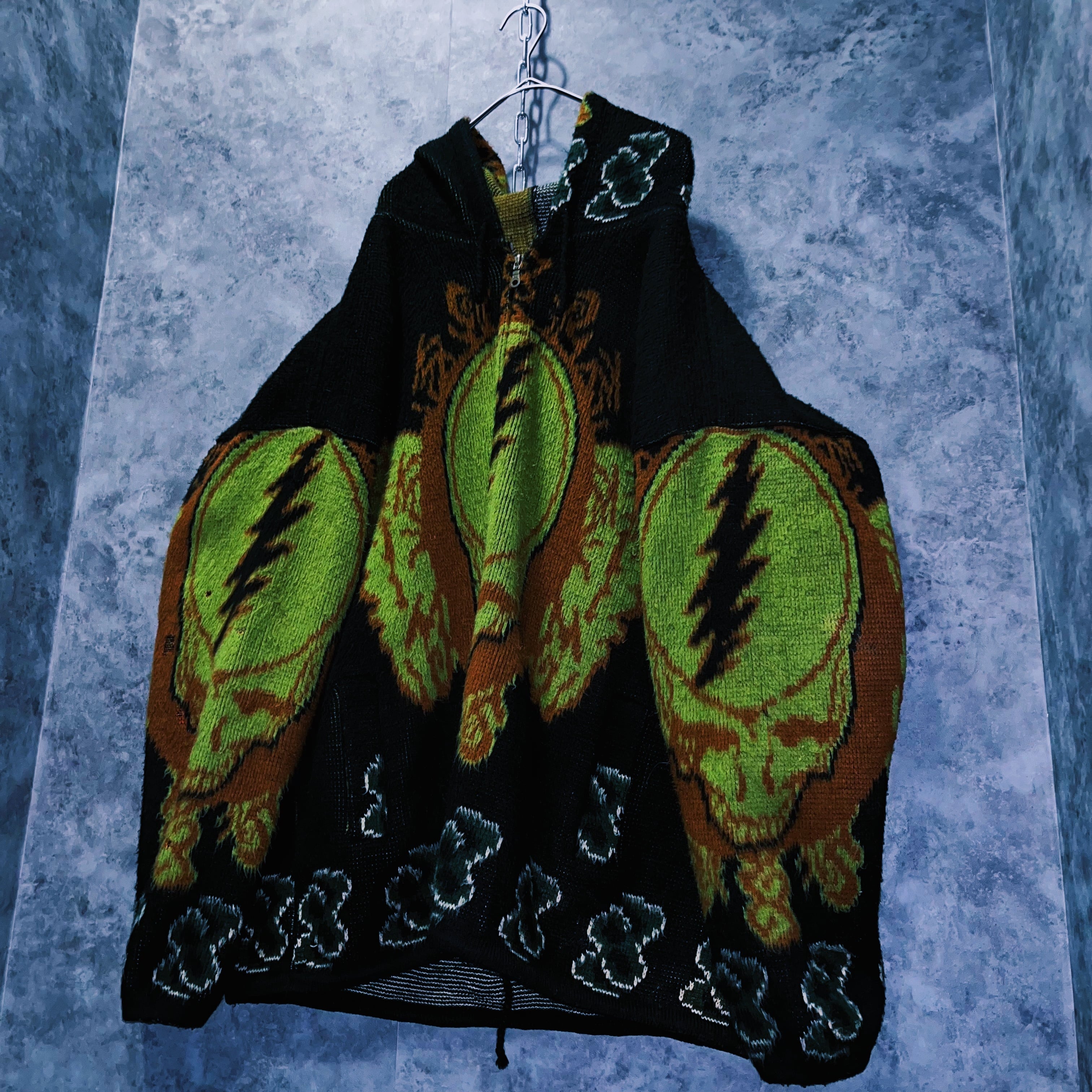 ヴィンテージ“メイドインエクアドル”スカルアンドライトニングデザインジップニット