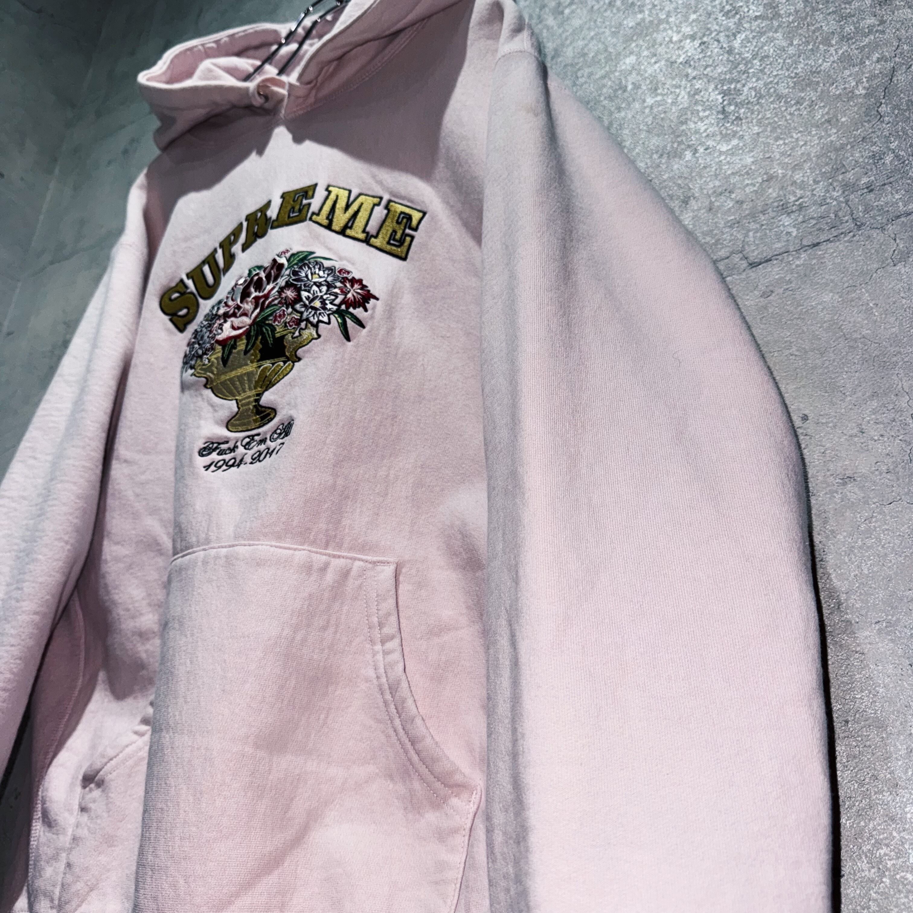 17秋冬"シュプリーム"フラワーエンブロイダリーデザインプルオーバーフーディー