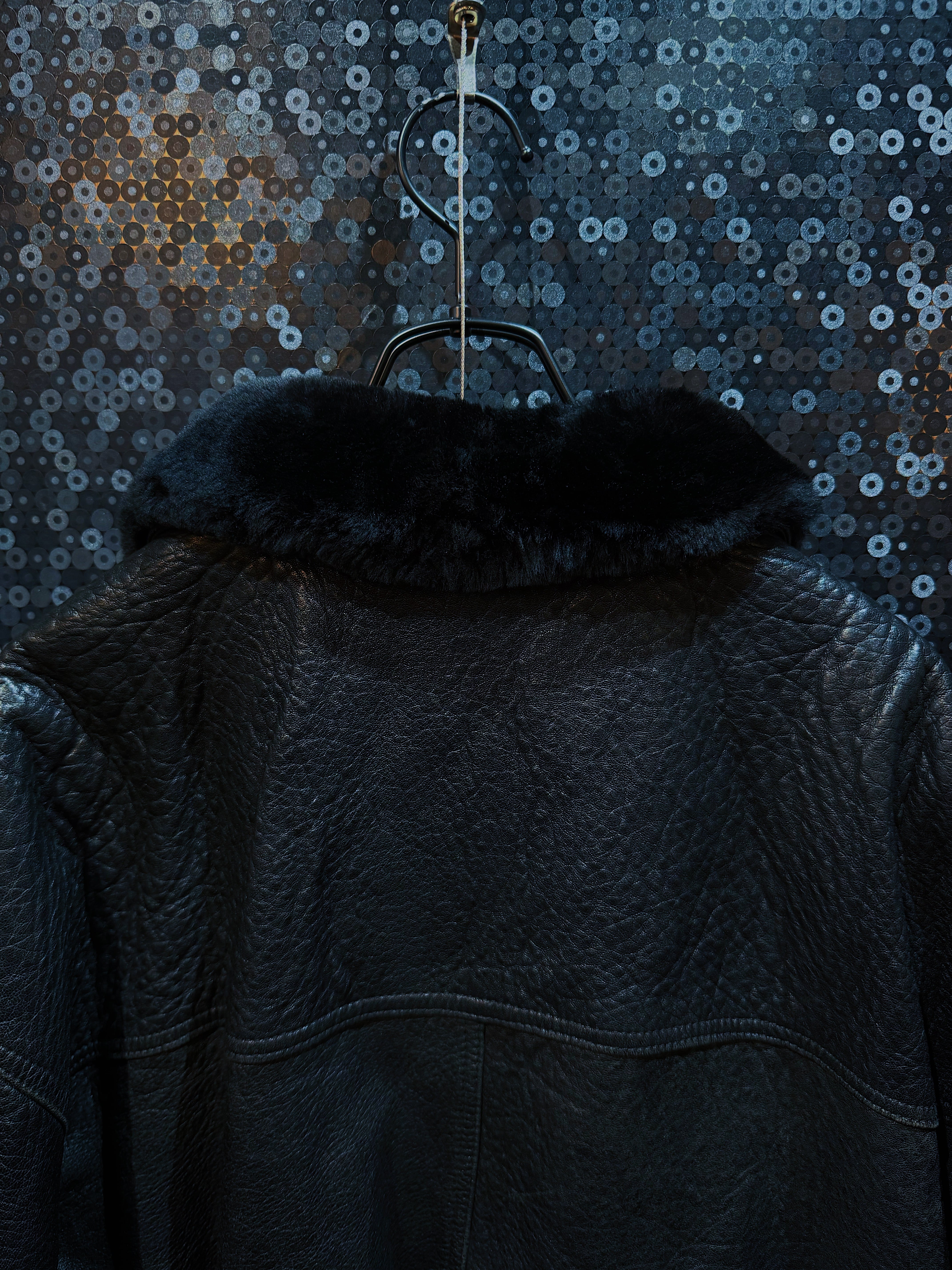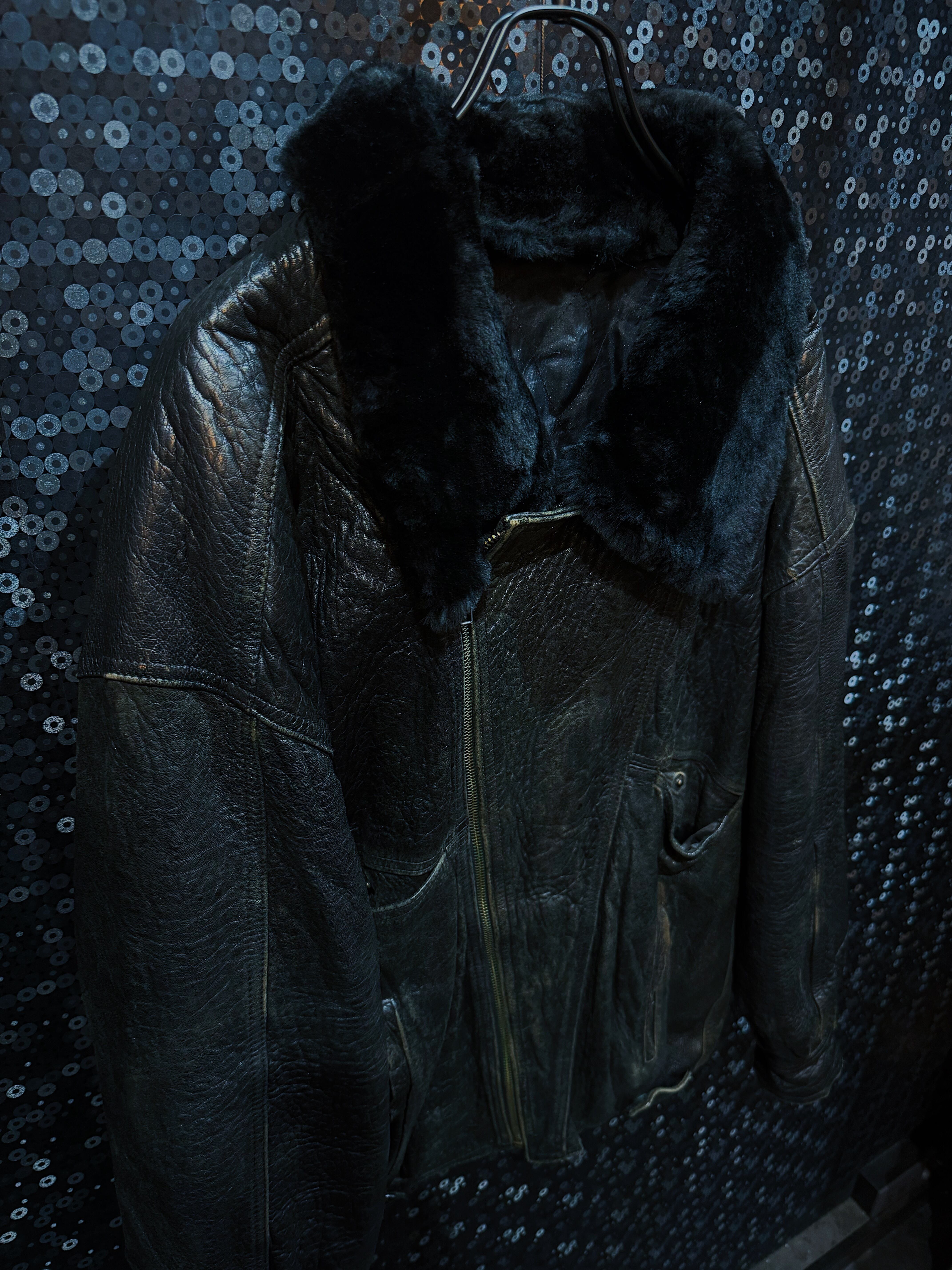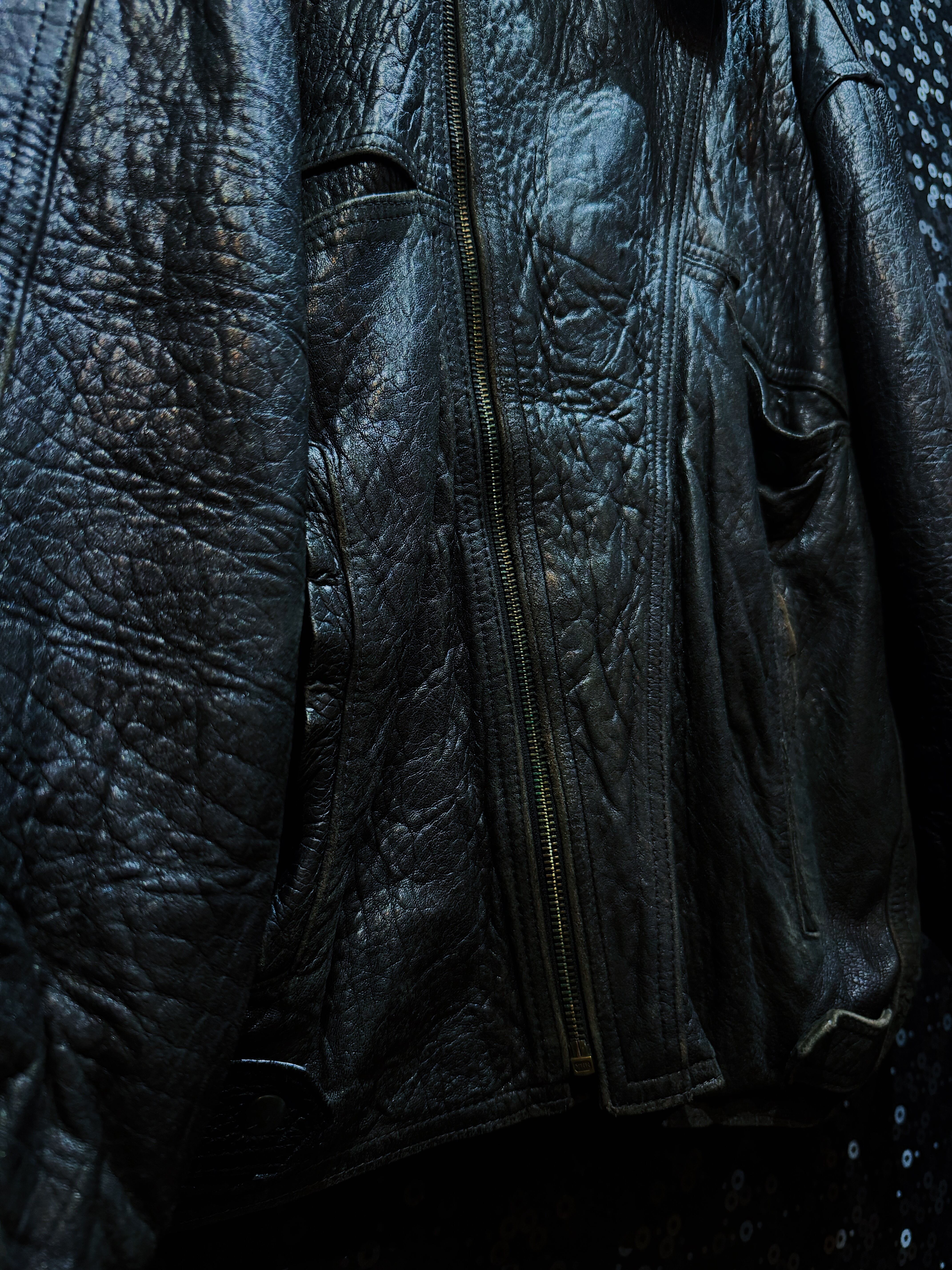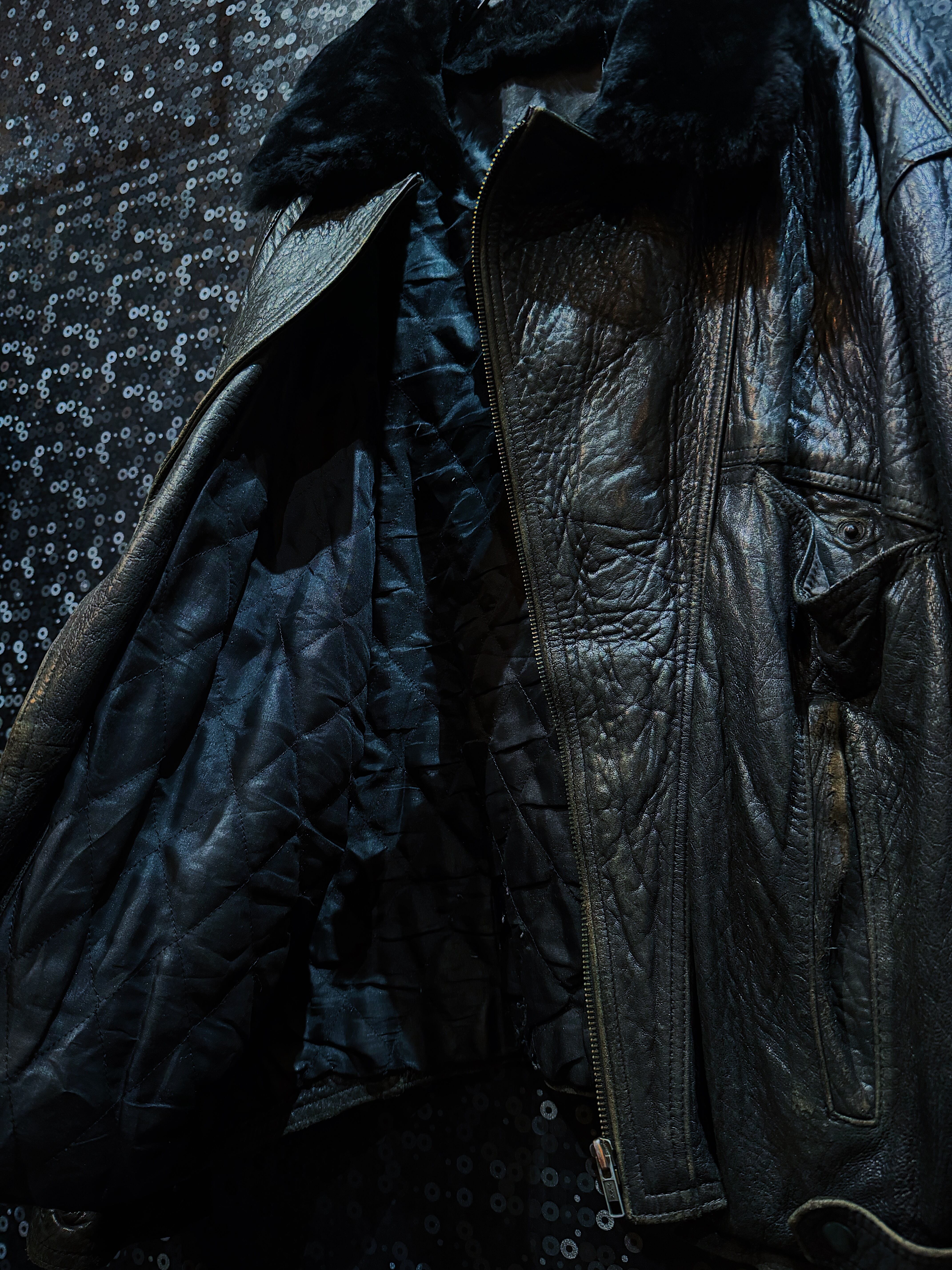 【ÆIEM】"vintage"fur aging detail double leather jacket