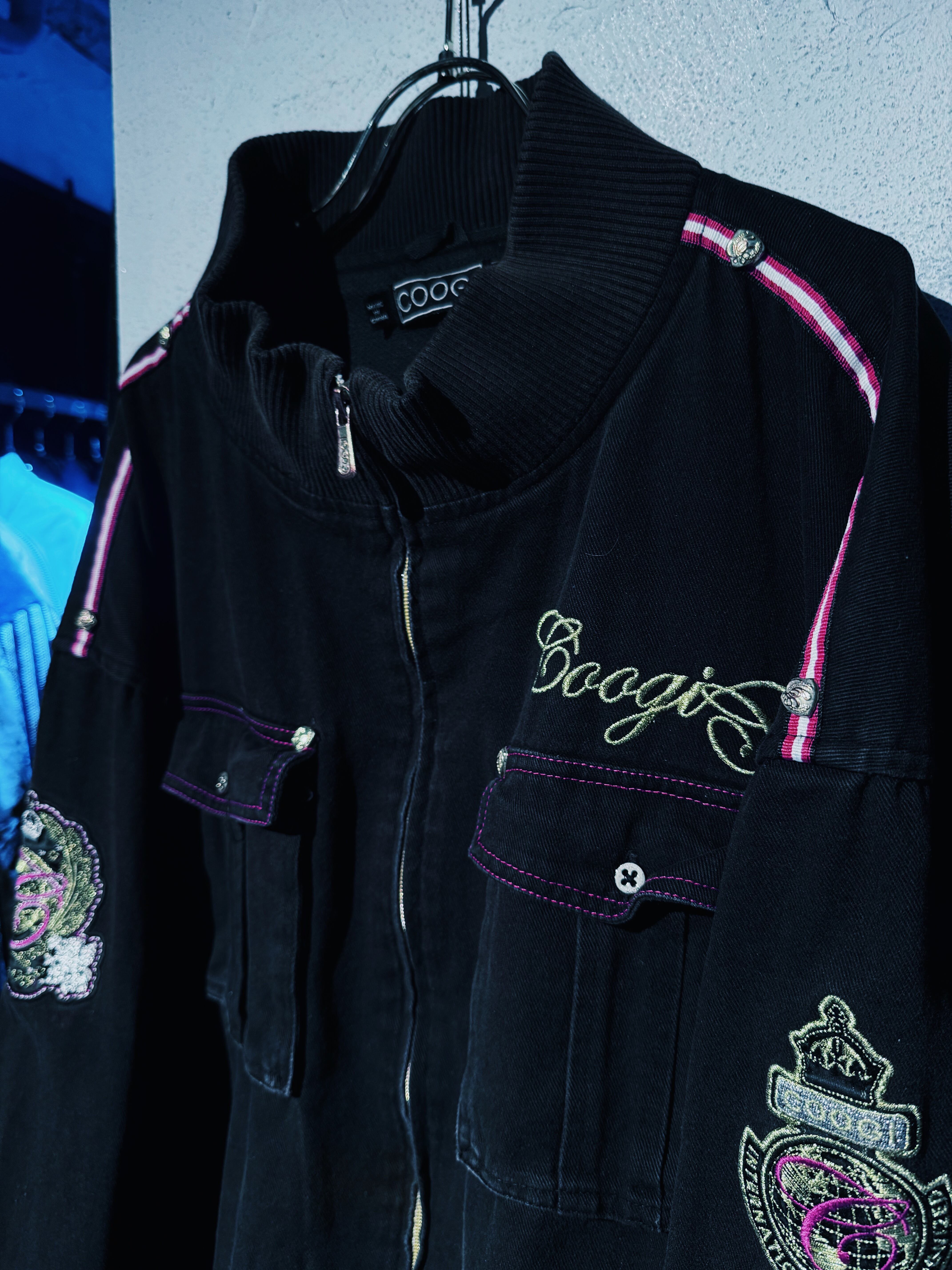 【D4C】vintage "COOGI" embroidery & patchwork design high neck jacket