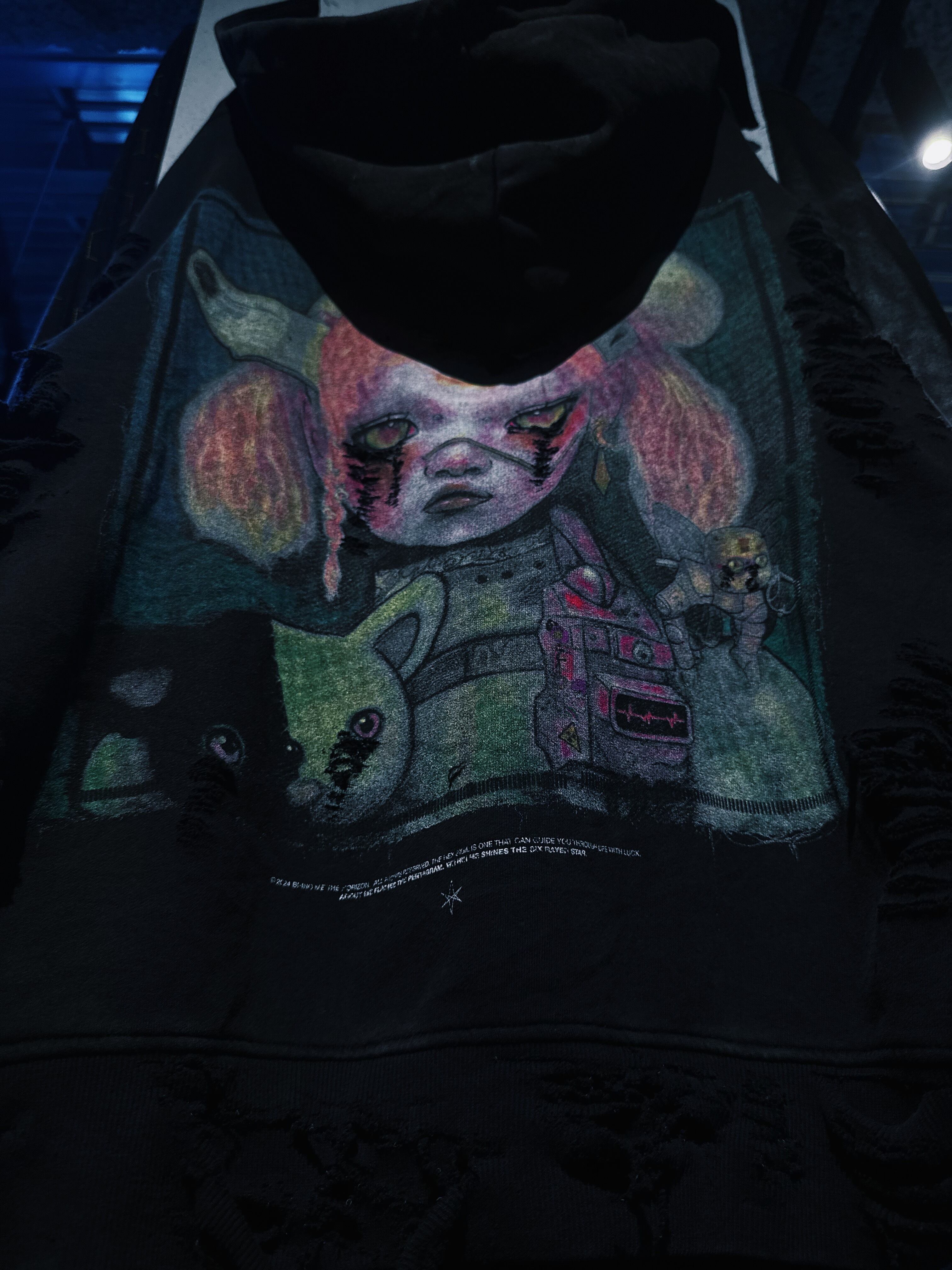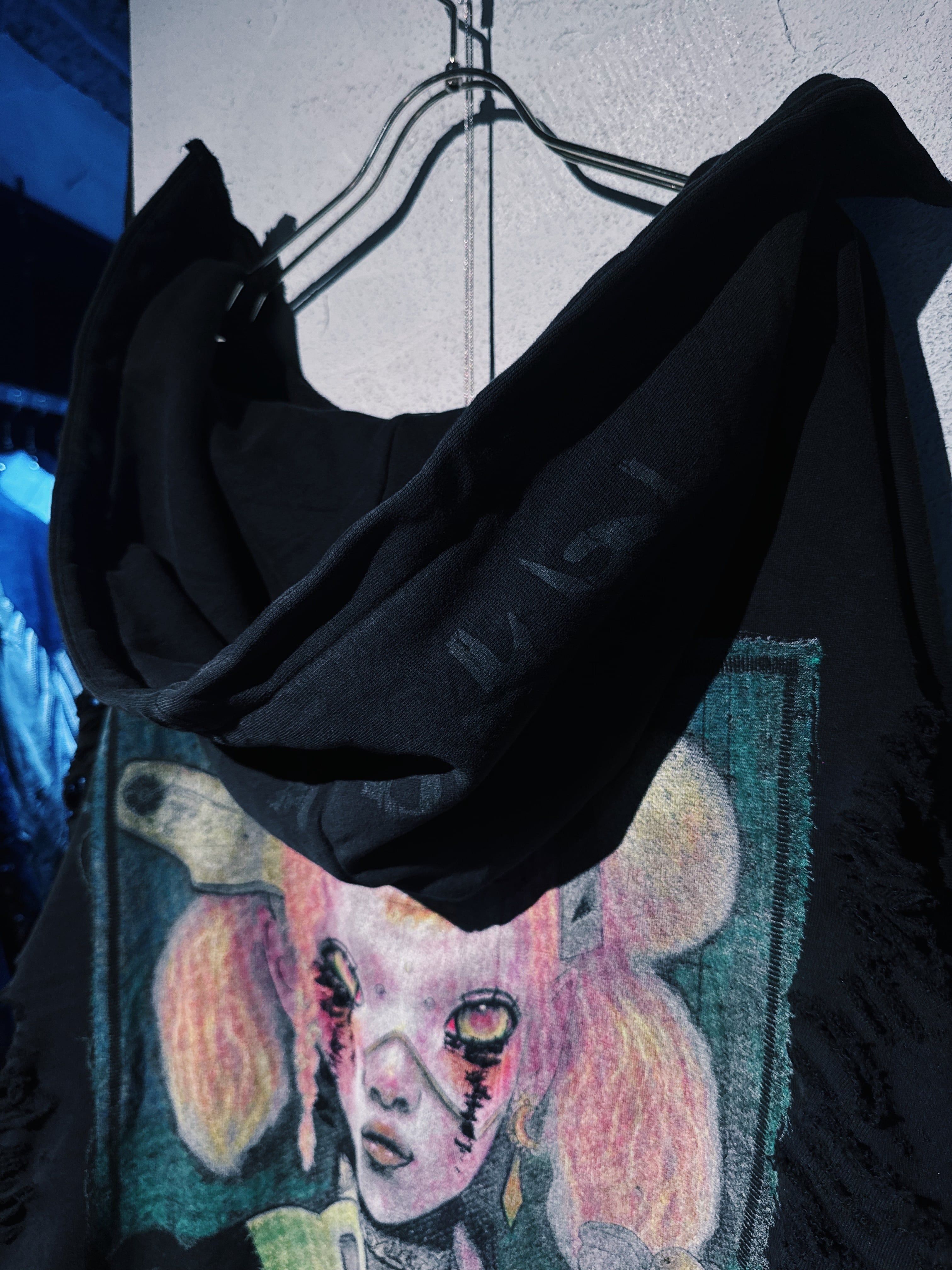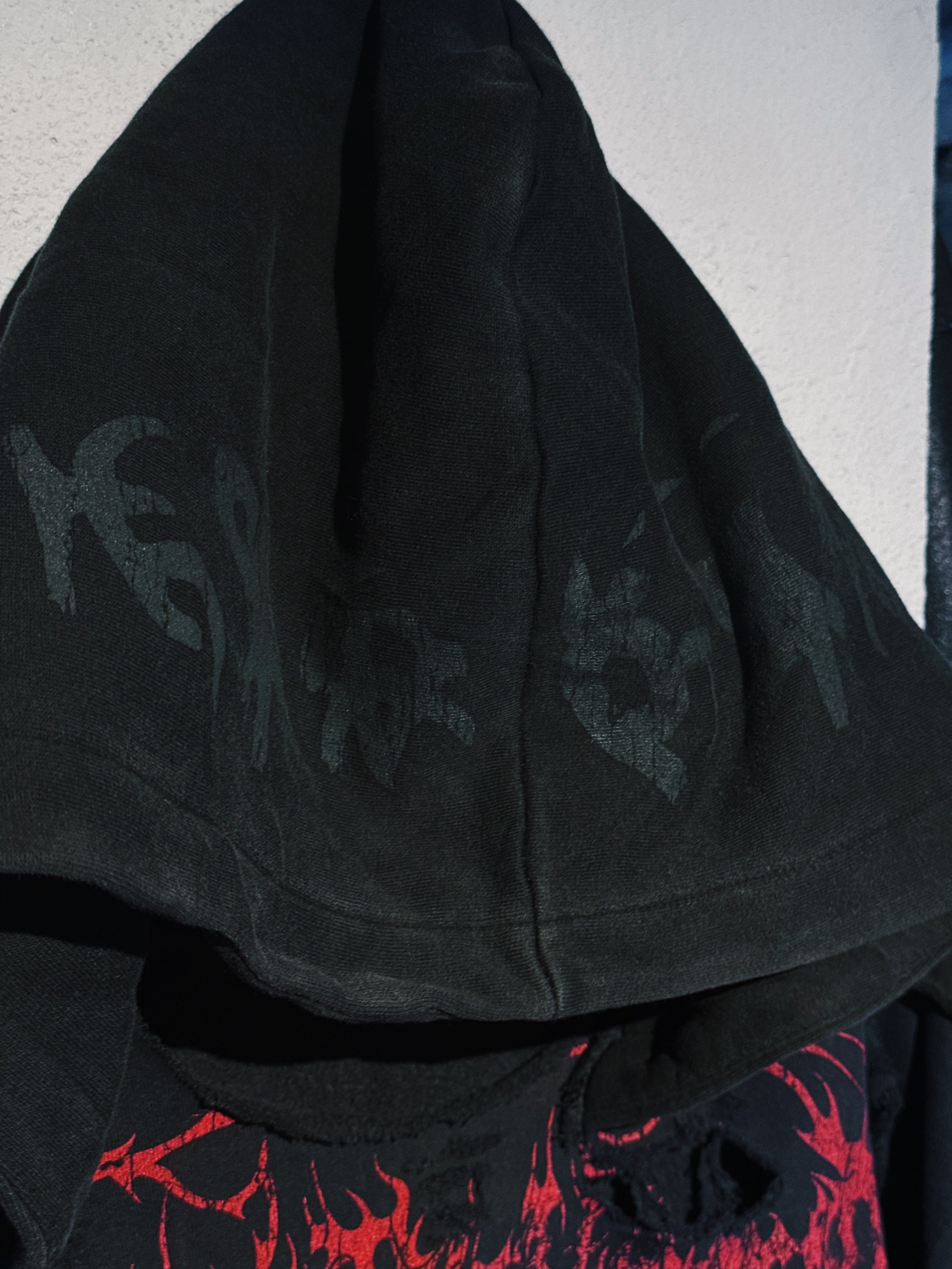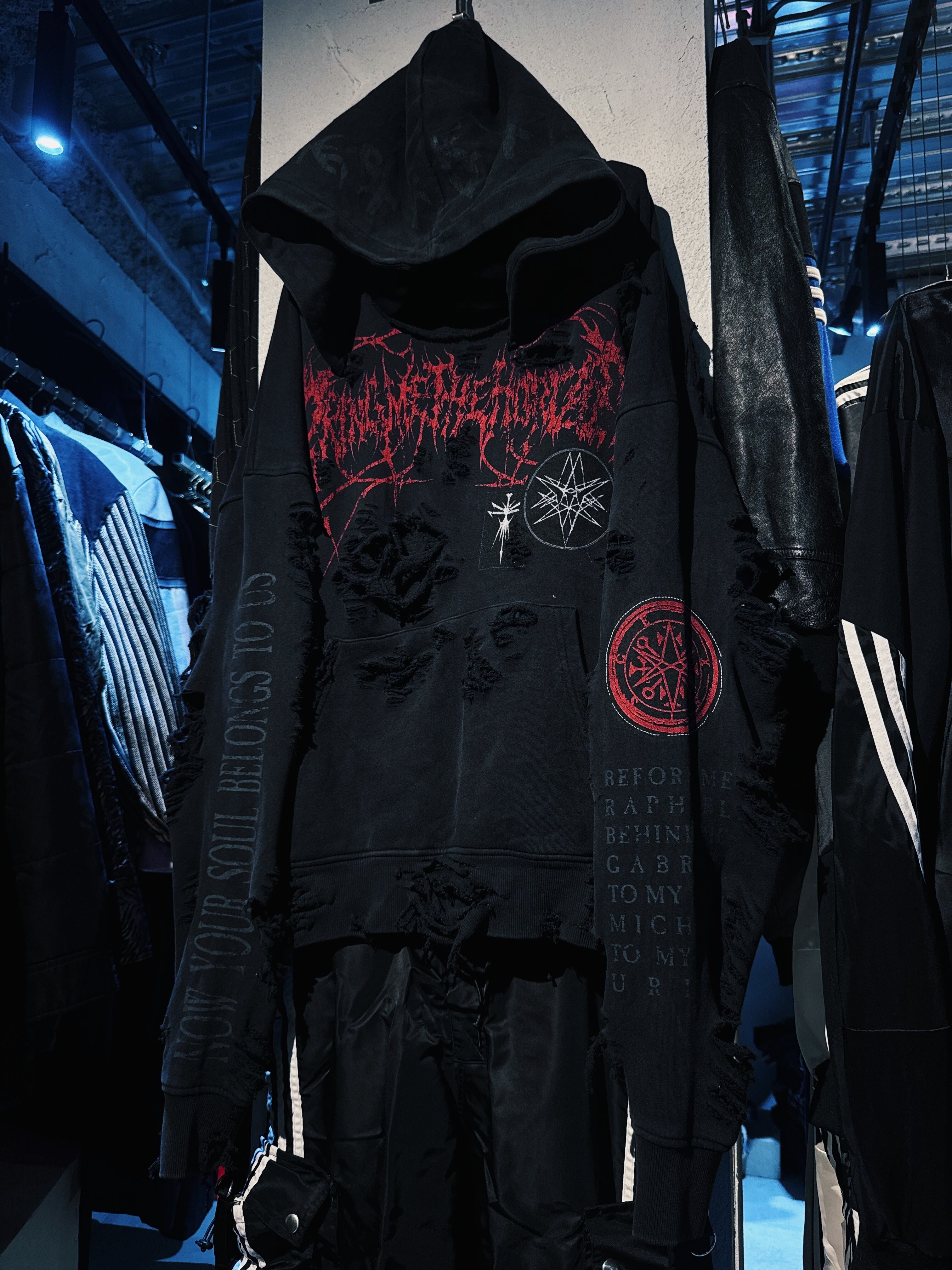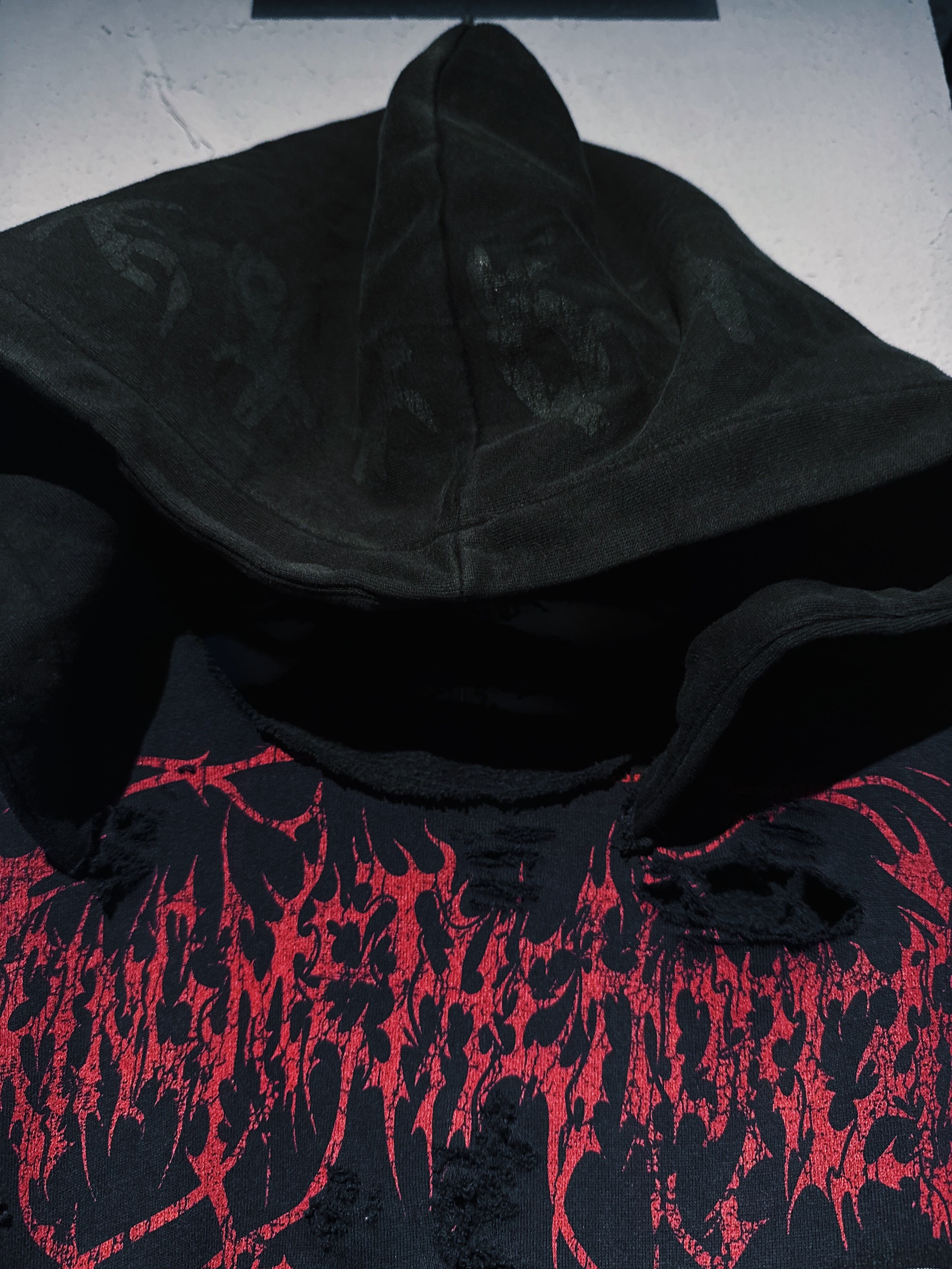 ヴィンテージゴシックスパイクパターンボロカスタムデザインスウェットフーディープルオーバー