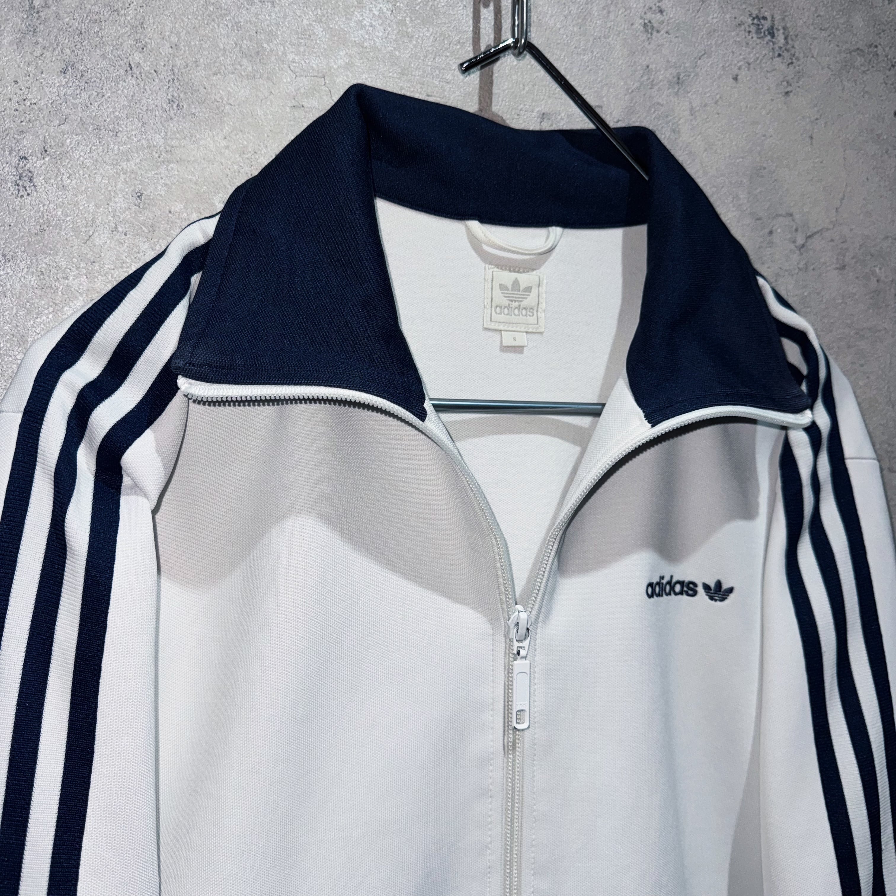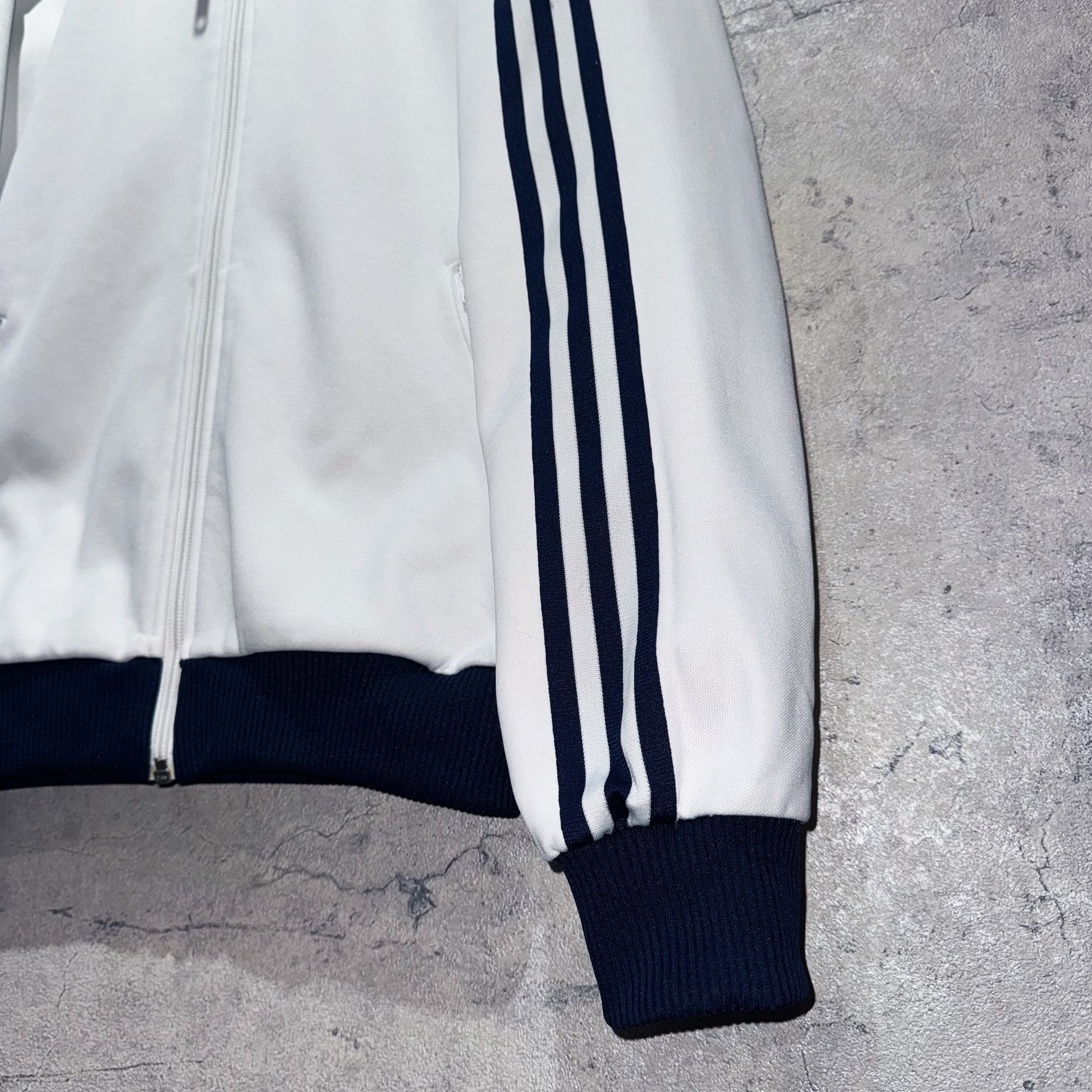 今回はそのひとつからホワイトボディにミッドナイトナイトブルーが切り替わったトラックジャケット。この手のカラーリングは毎年人気且つ、白ボディは状態が良いものが残りにくいんですよね… 今回はかなり状態良好です。
