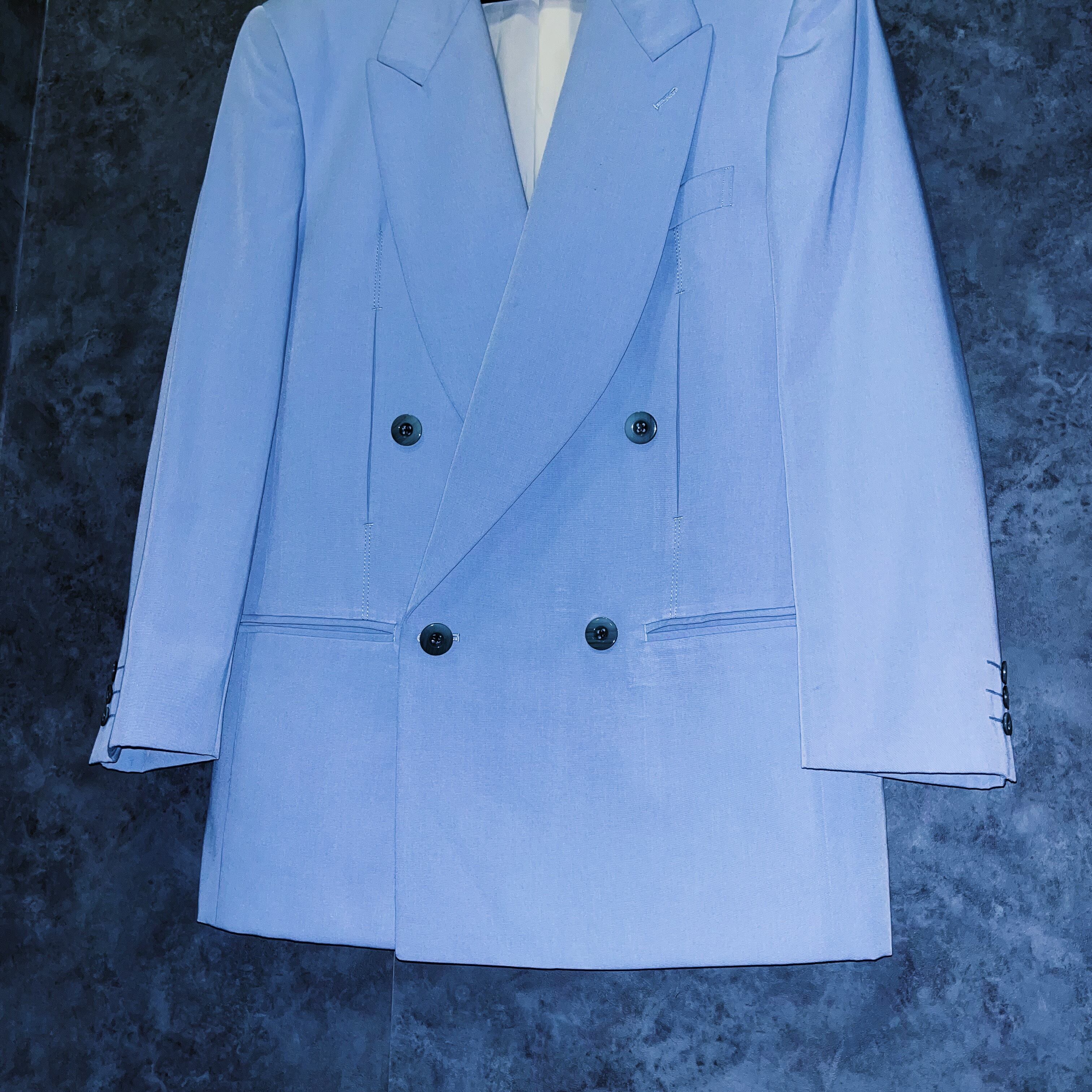 90’sヴィンテージベビーブルーカラークアトロボタンダブルブレストセットアップ