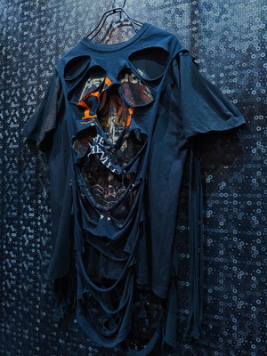 再倖築が手掛けた、ヴィンテージのメタリカTシャツをベースに大胆な再構築を施したアートピース。