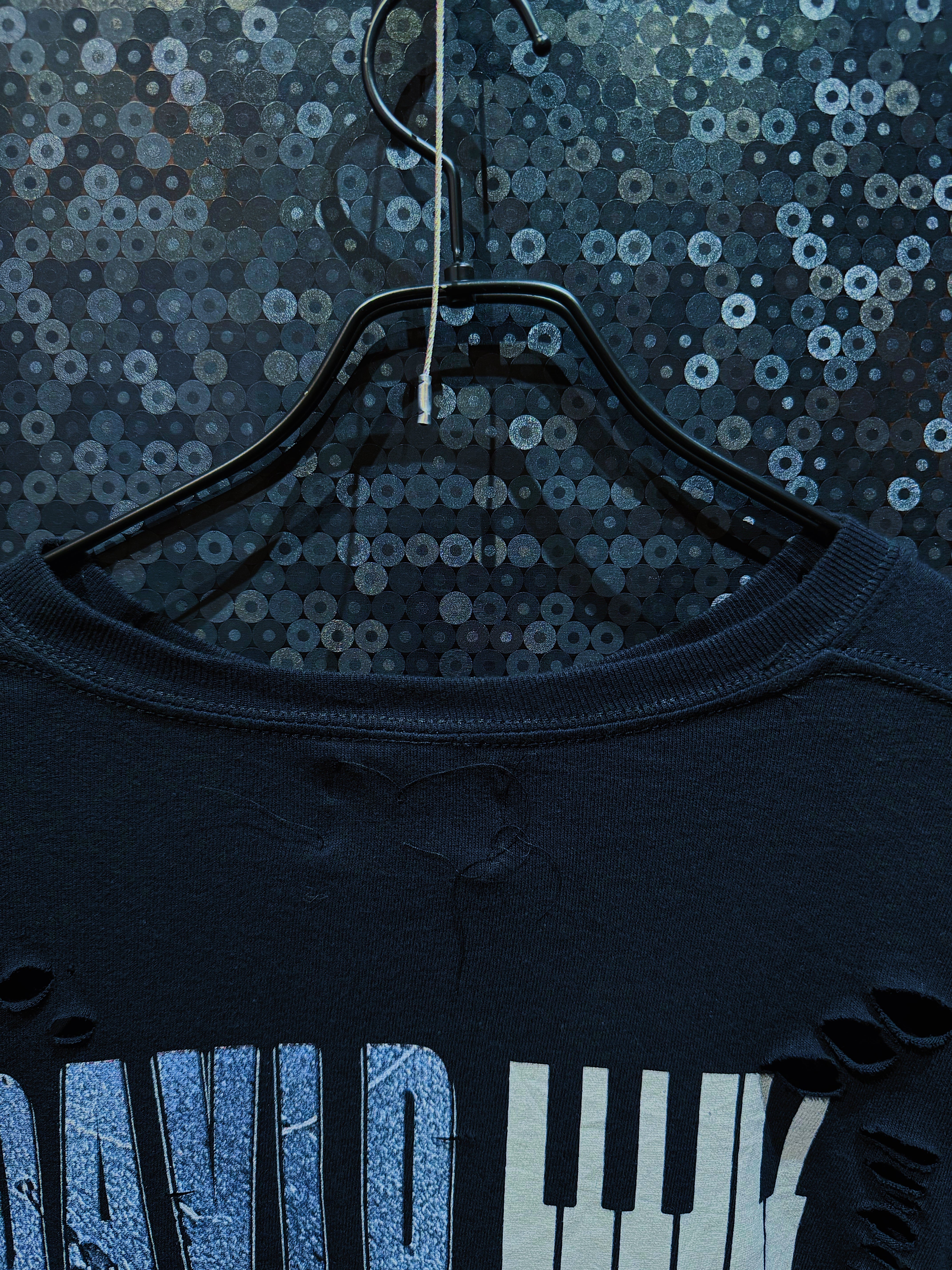 2010年のツアーTシャツをベースに、幾重にも重ねられた布と破壊的なボロ加工によって再構築された、唯一無二のリメイクロングスリーブ。