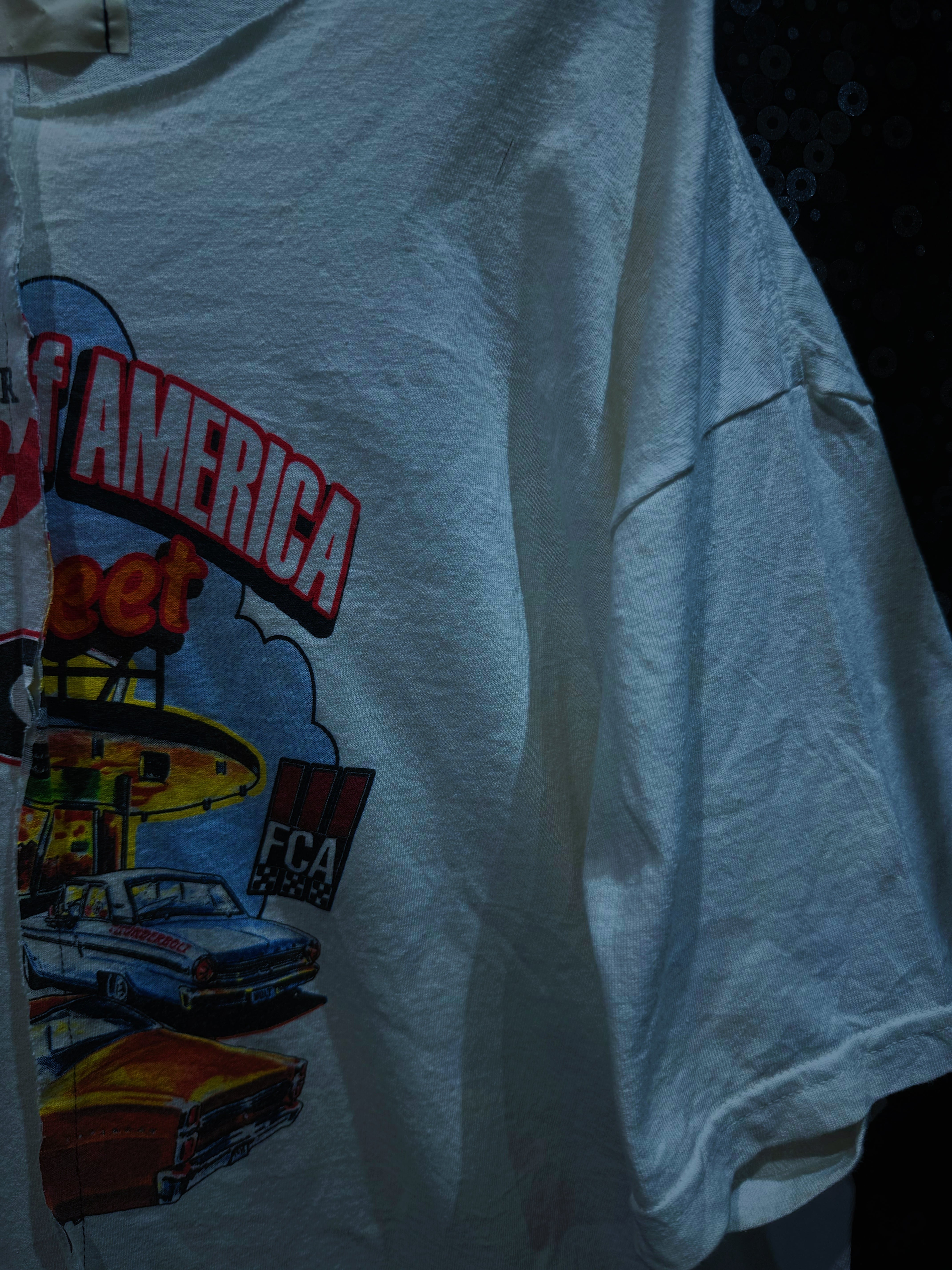 【ÆIEM】"再倖築"vintage two different docking American college and classic car Chimera t-shirt