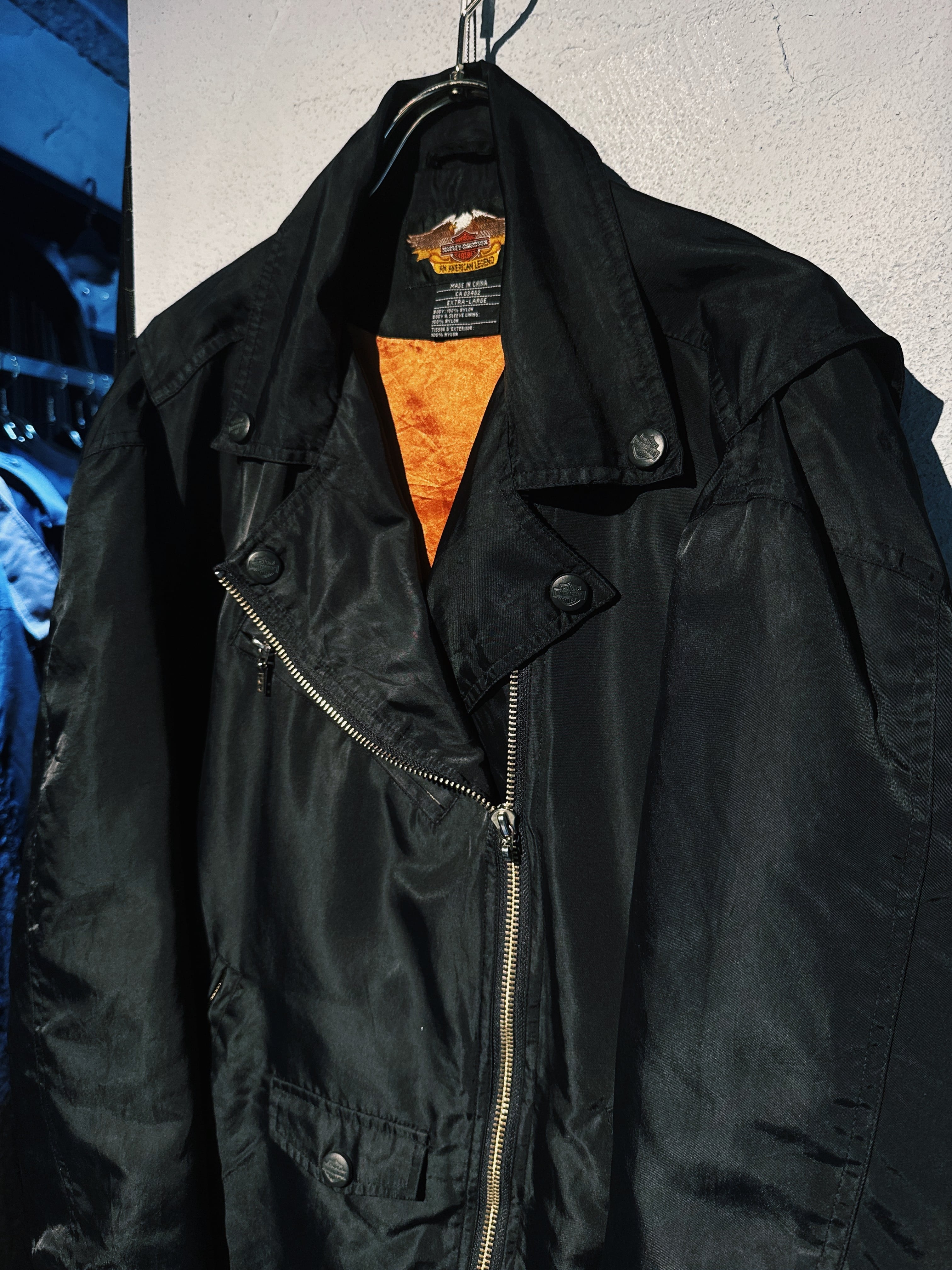 バイカーとしても、レザーとしても有名な"Harley-Davidson"しかも市場価値の高いライダースタイプのジャケット。生地はナイロンで光沢感があり、ヴィンテージ感マシマシの雰囲気を放ち、その圧倒的な存在感と重厚感はたまりません。