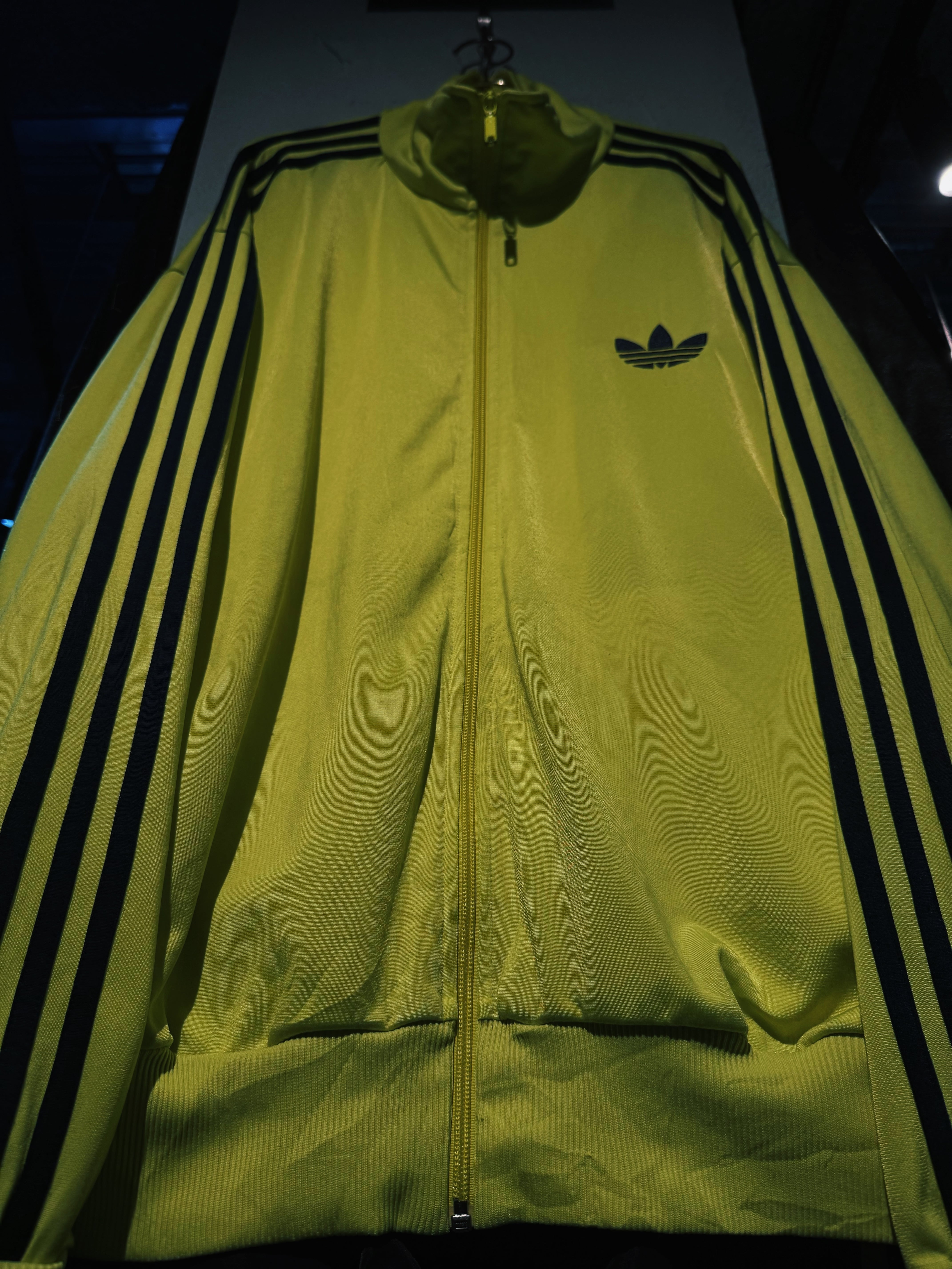 90年代"アディダス"ネオンイエローカラースリーストライプスデザインスタンドネックトラックジャケット