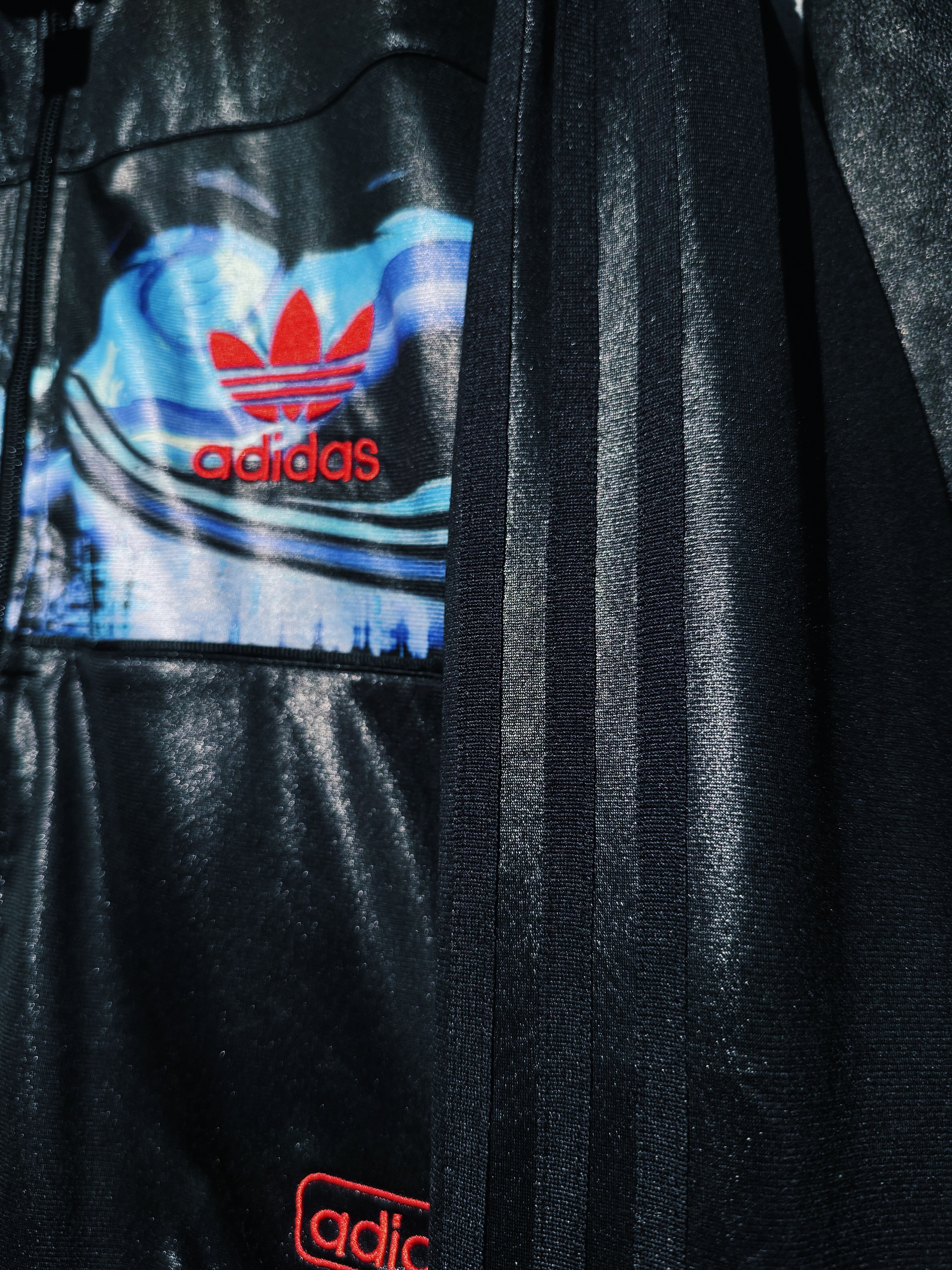 フロントには"adidas”の象徴でもあるトレフォイルロゴとアーティスティックなデザインを施した現行ではお目にかかれないデザイン。