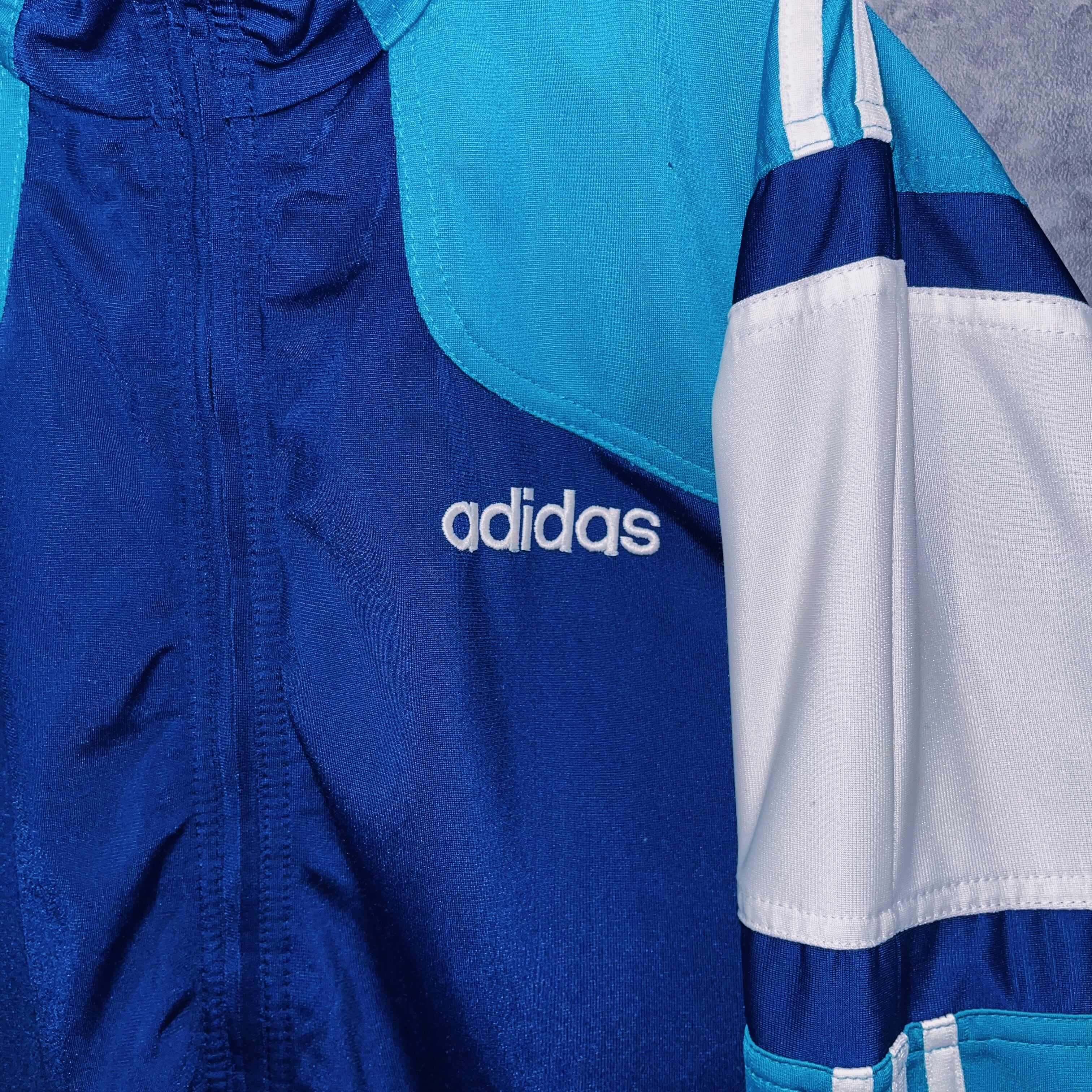 90’s vintage “adidas” three stripe design stand neck track jacket
