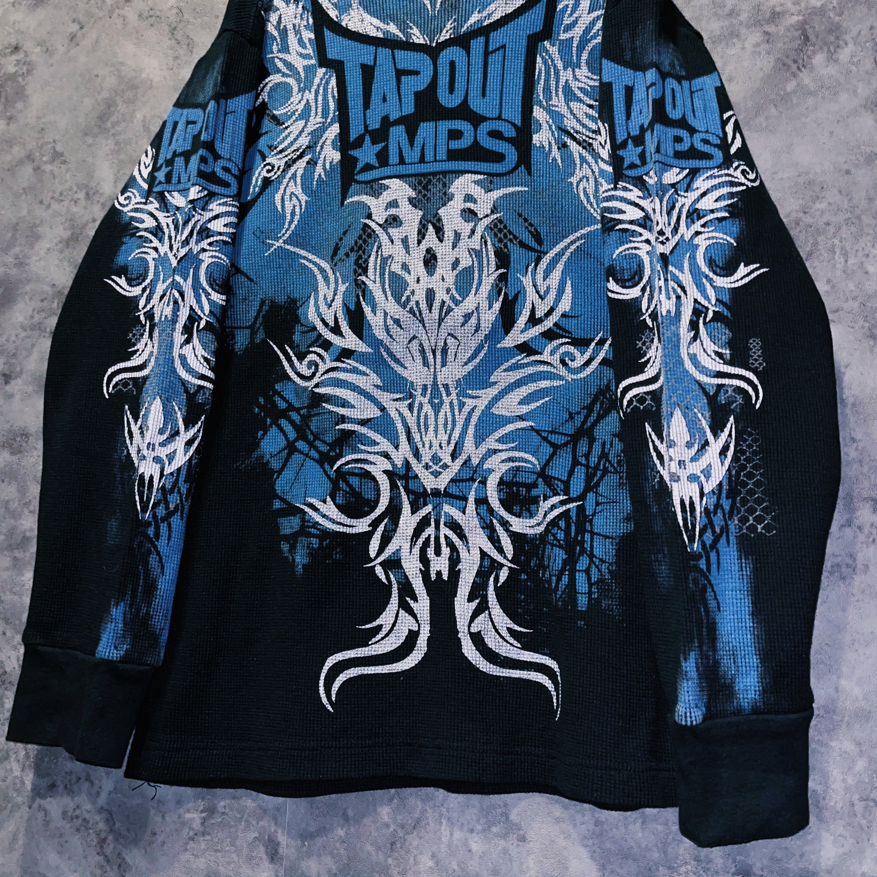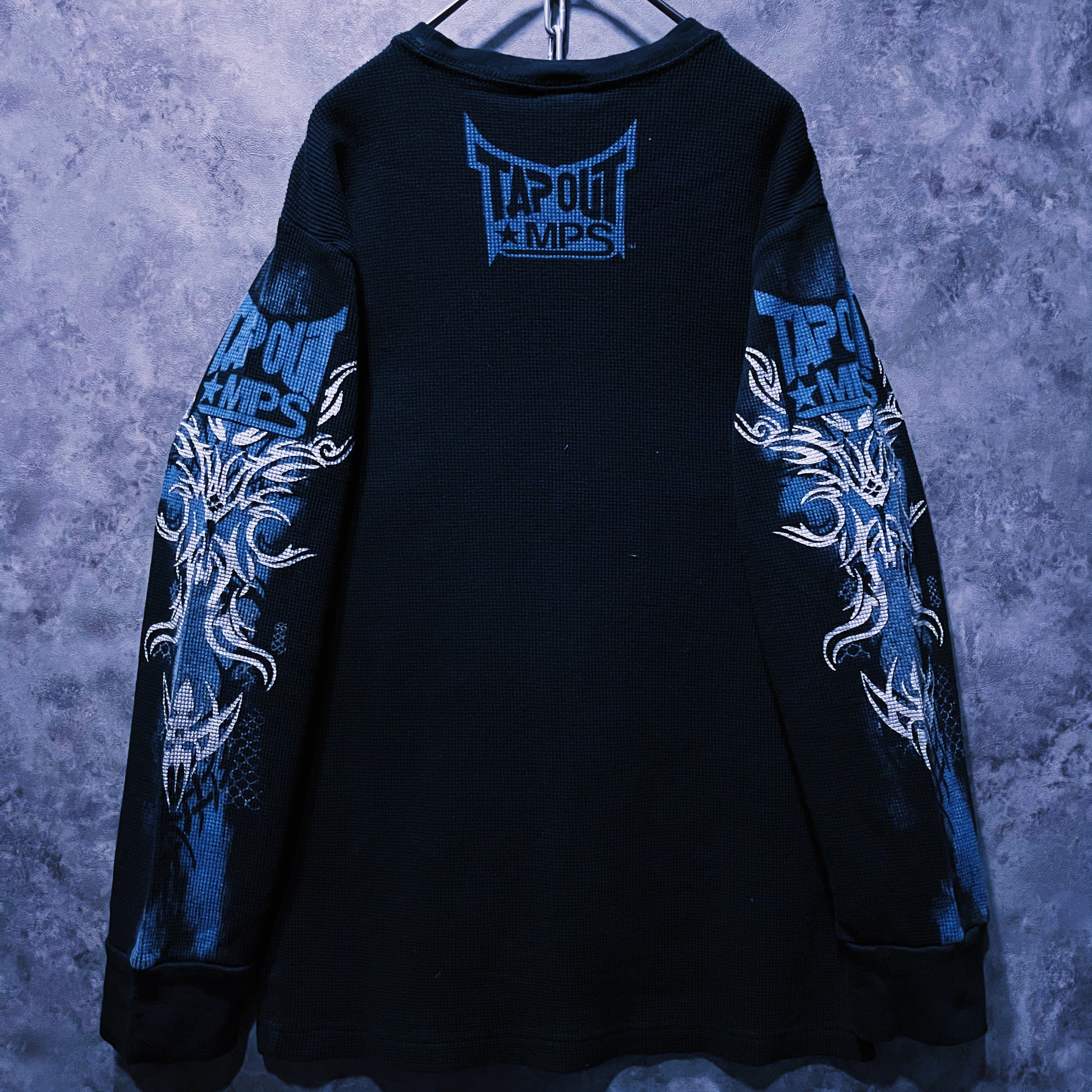 アメリカの老舗格闘技ブランド”TAP OUT” よりロックな雰囲気バチバチなロンTが入荷いたしました。ワッフル生地独特の細かな立体感と、プリントされたブルーカラーのデザインが唯一無二のパンクな雰囲気を演出します。