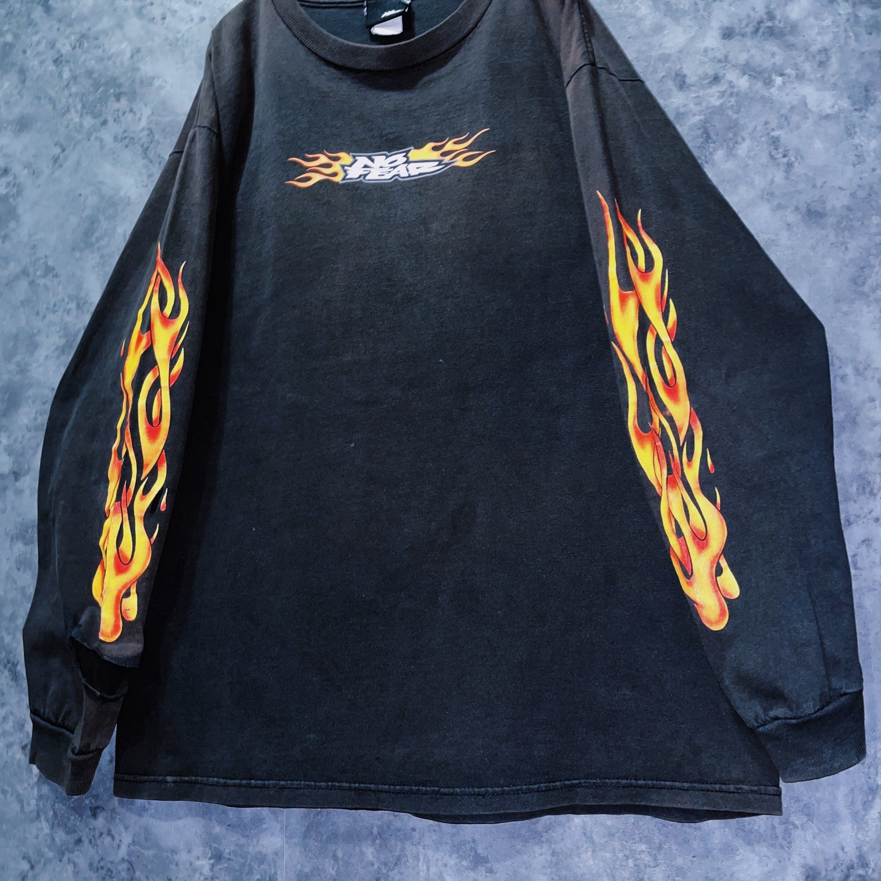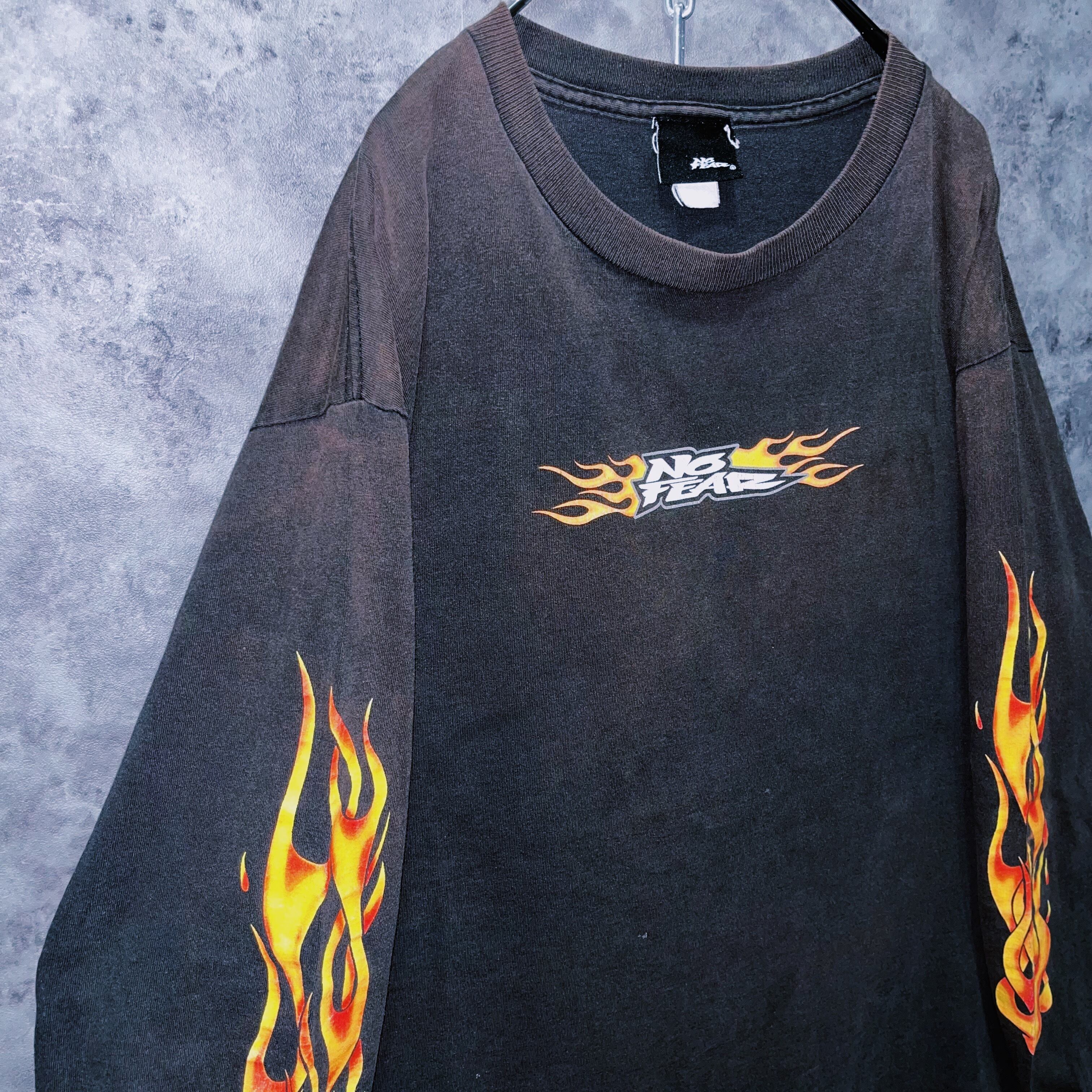 ヴィンテージ“NO FEAR”ファイアースケルトンデザインロングスリーブTシャツ