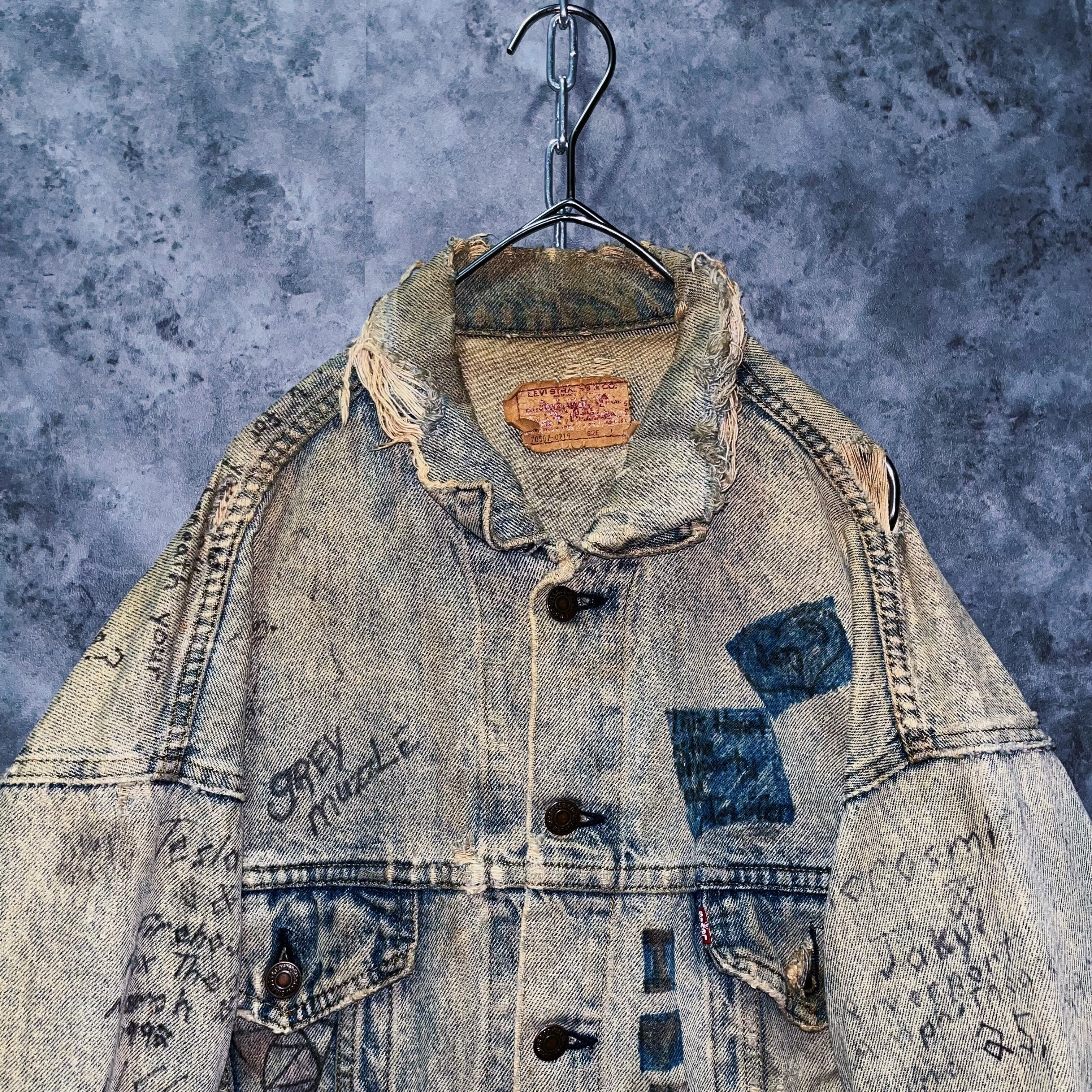 丈夫なデニムジャケットがボロになるほど着用され、かなり味のあるデザインになっており、デニムコーデにパンチを効かせられる一着です。もちろんTシャツなどの上に一枚羽織るだけでもエッジの効いたデザインがコーデを引き締めてくれる逸品です。