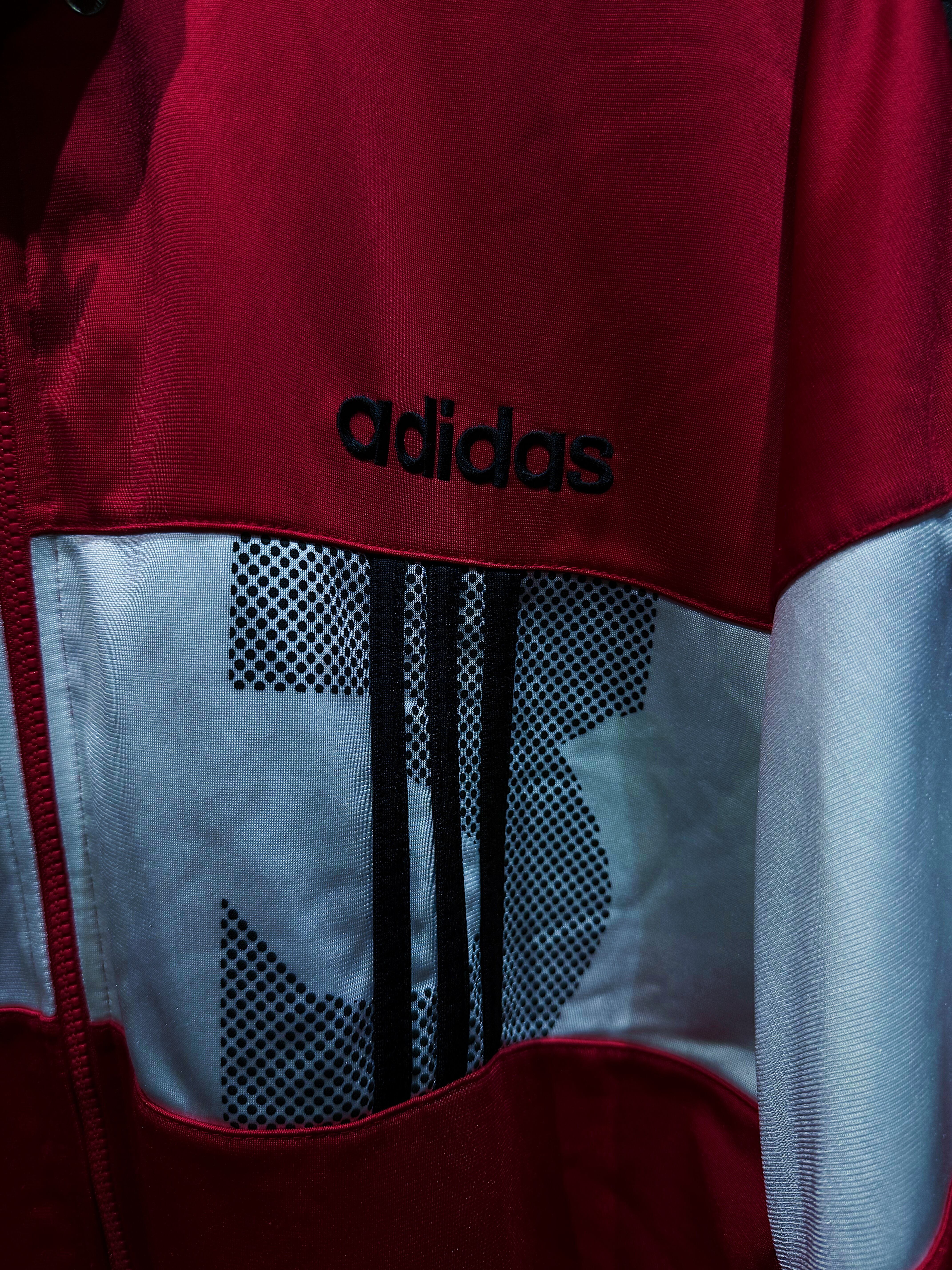 赤と白のワイドボーダーが目を惹く、adidasのヴィンテージハーフスリーブトラックジャケット。