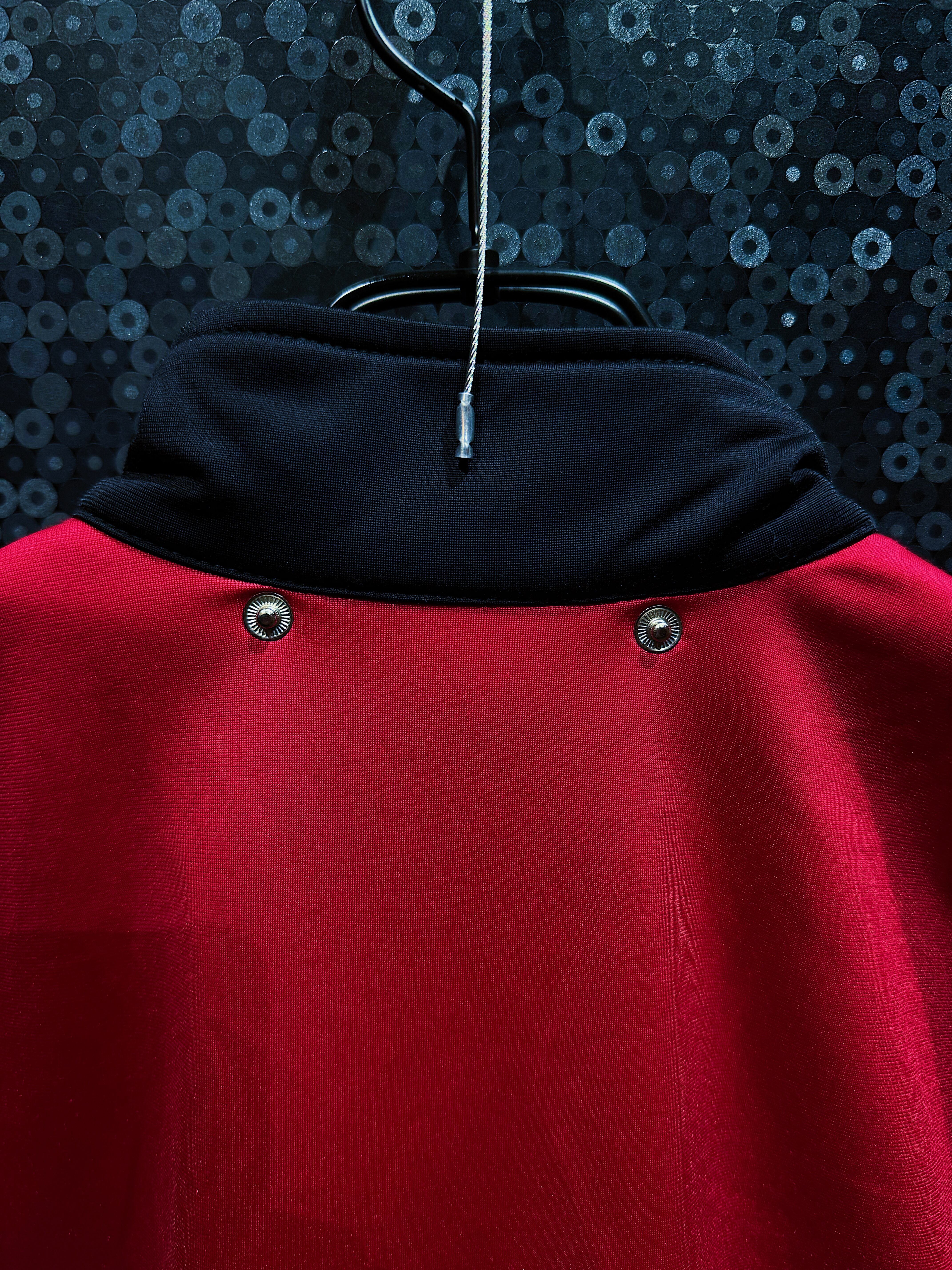 タグには「D5 F174」の表記があり、2000年代初頭の日本企画と思われるレアピース。スナップボタン付きの袖や、黒のスタンドカラー切り替えなど、スポーツウェアの枠にとどまらない遊び心が満載。