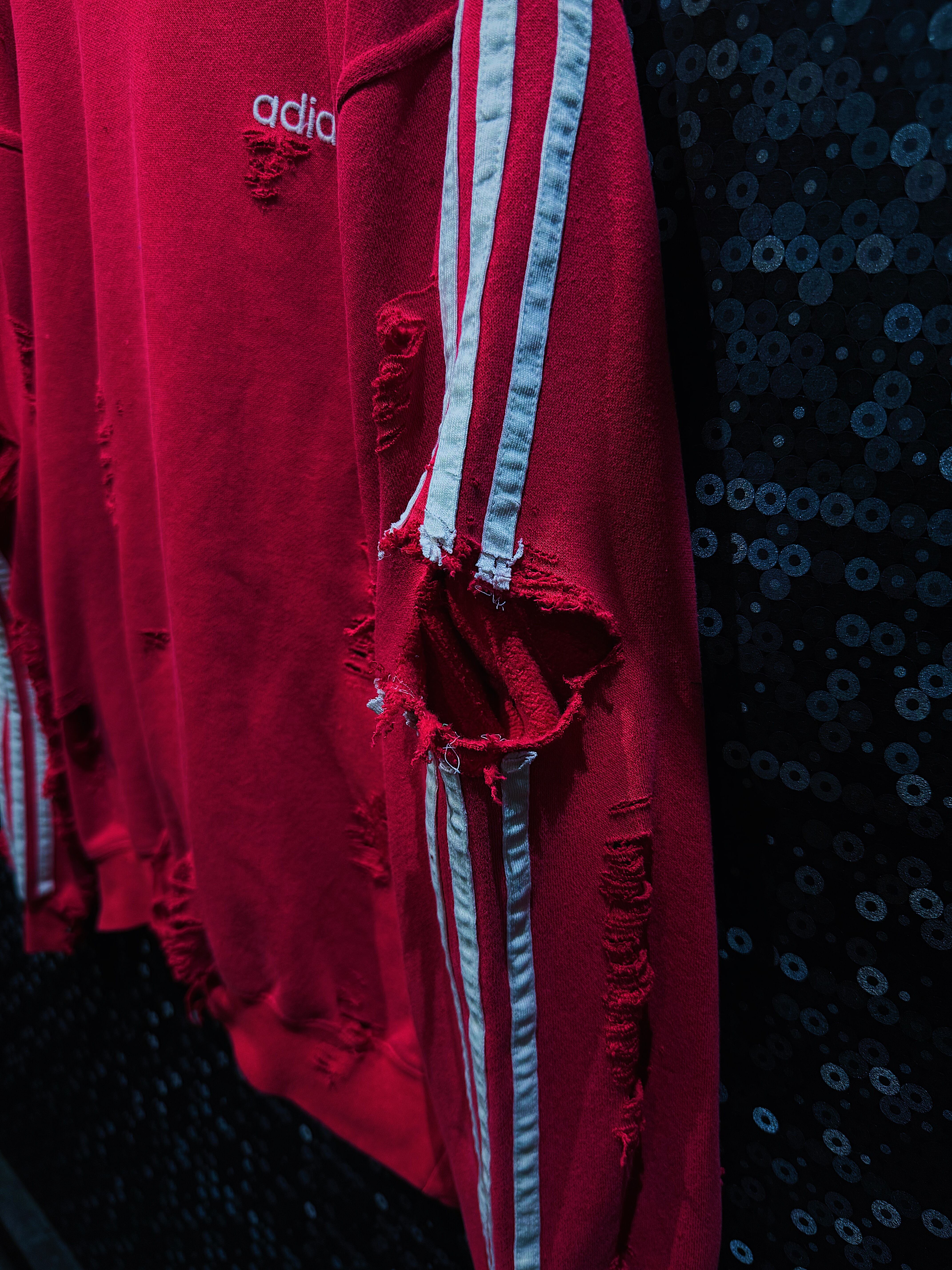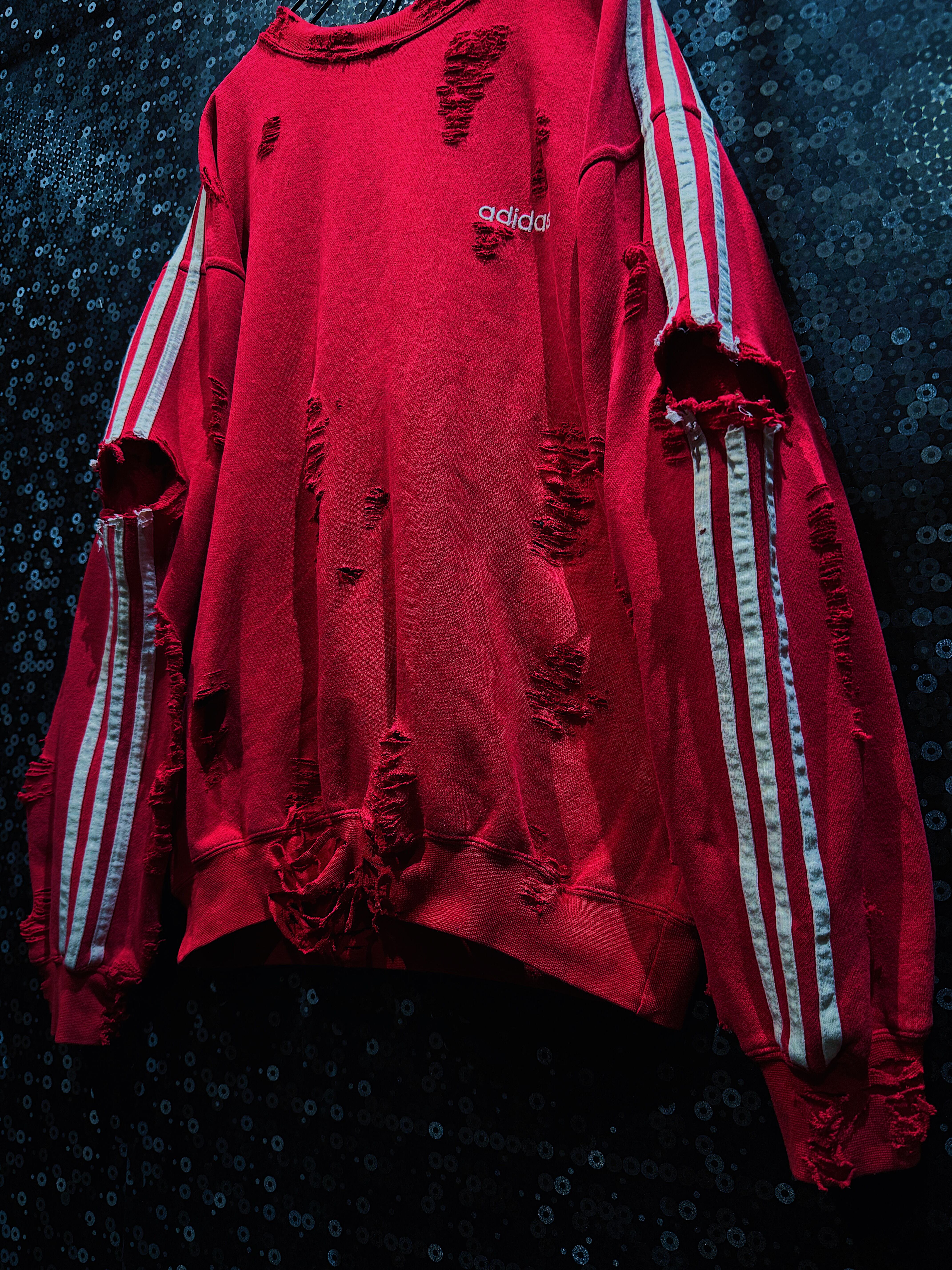 ヴィンテージadidasスウェットをベースにボロ加工を施したリメイク作品。