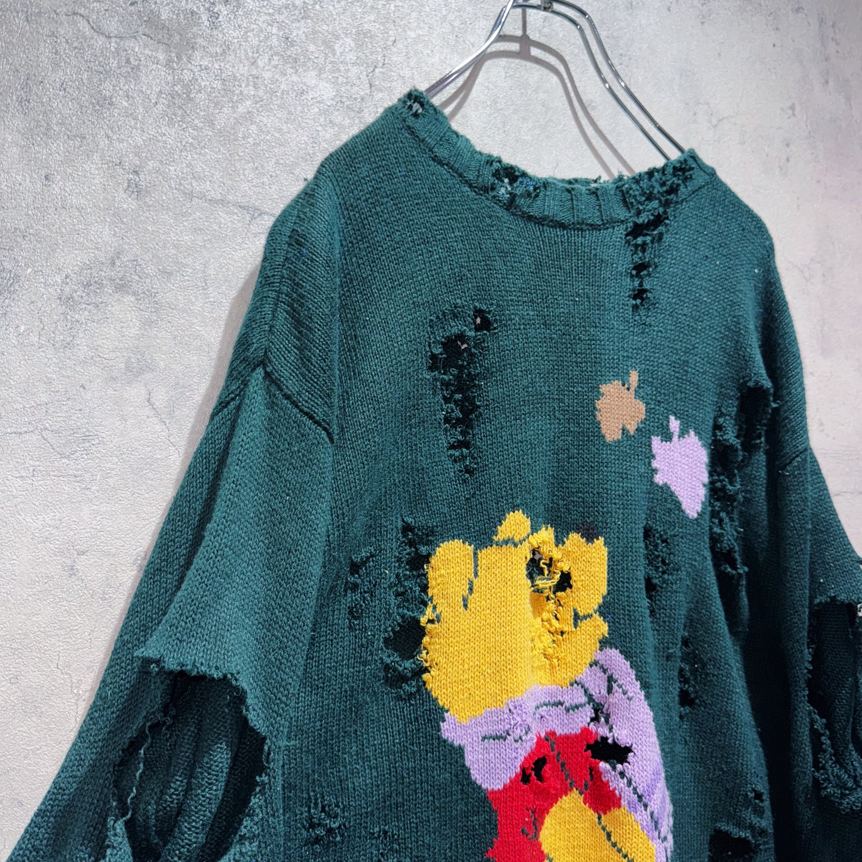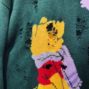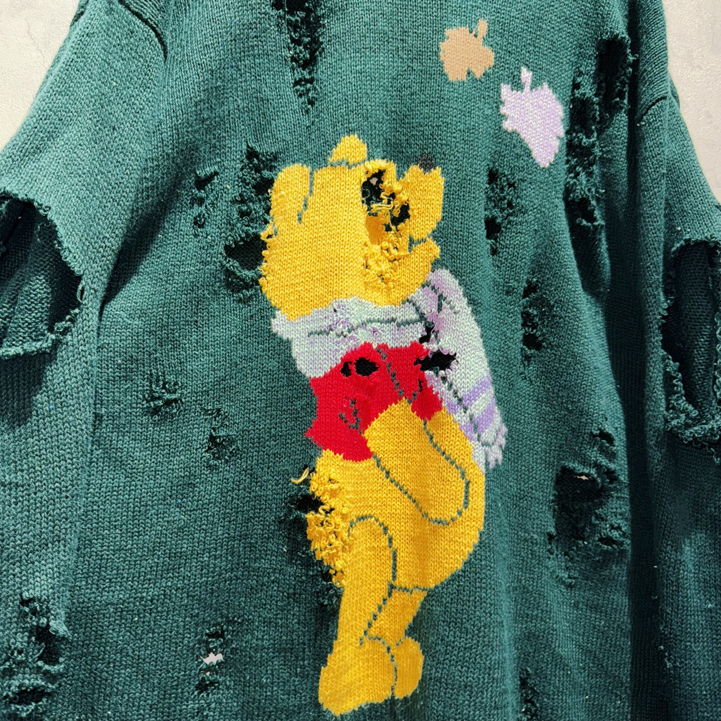00年代"ディズニー"くまのプーさんプリントデザインボロカスタムニット