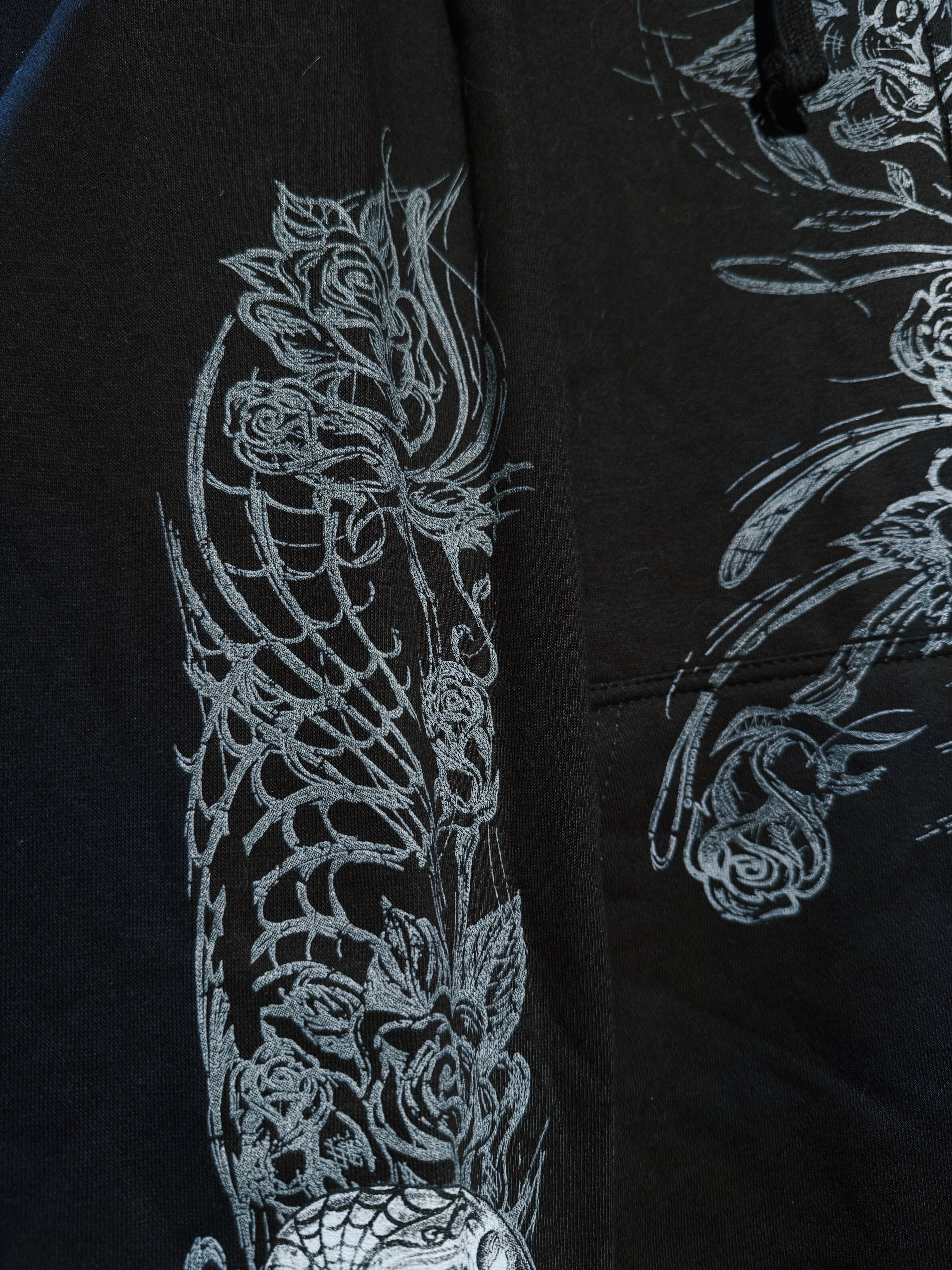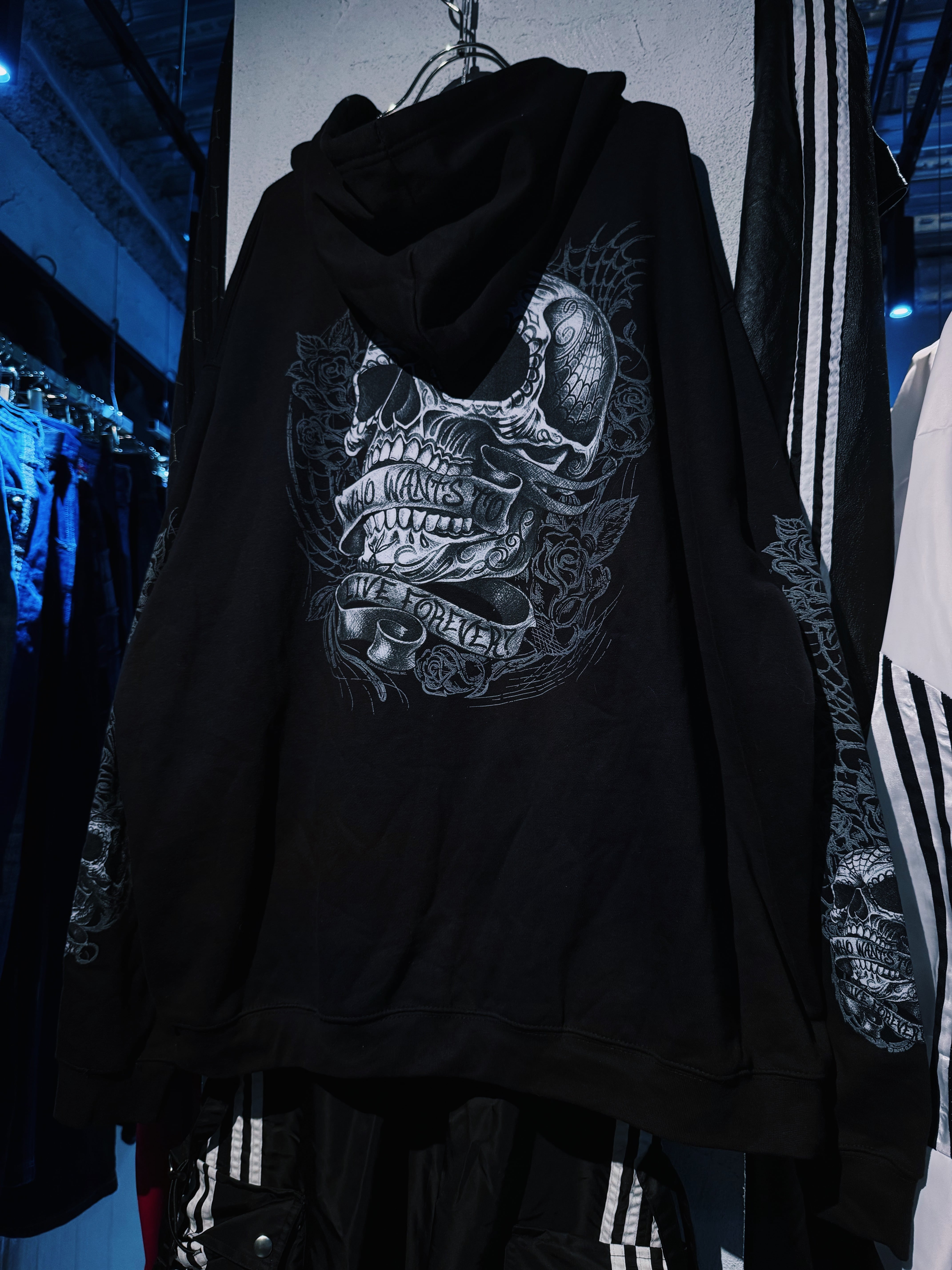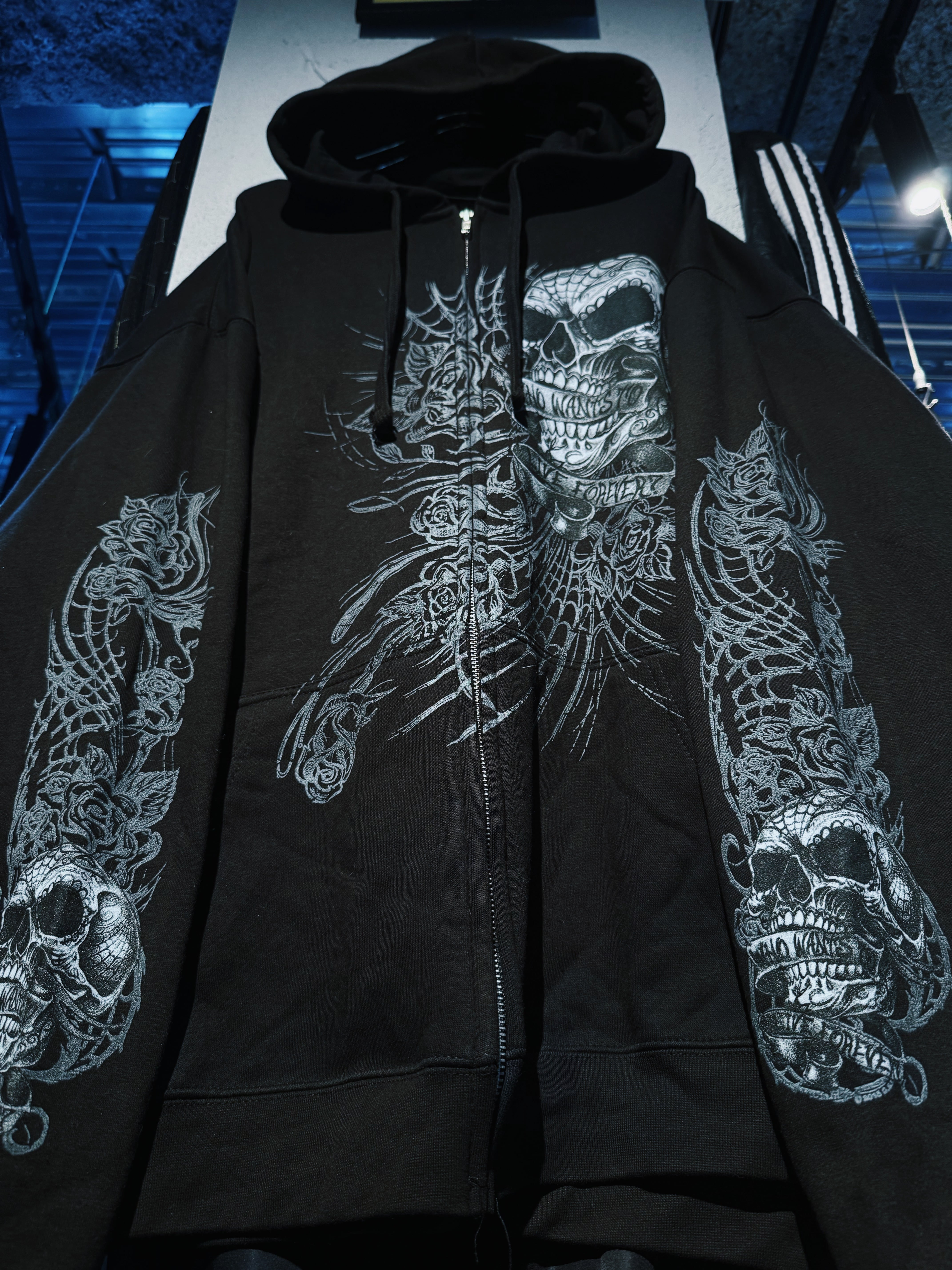 【D4C】vintage full pattern skull & rose tatoo print design zip up hoodie