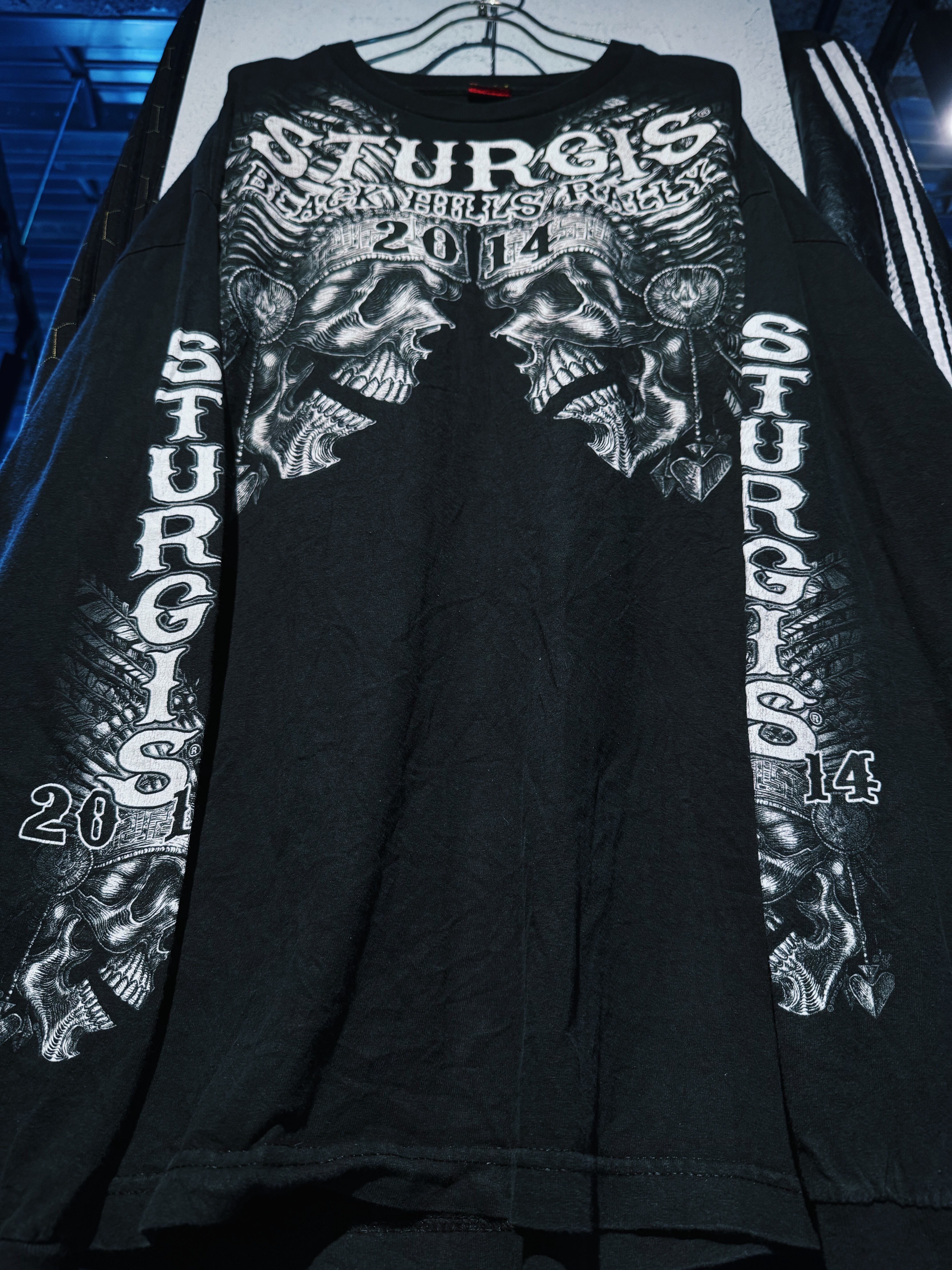 【D4C】"Hot Leathers" Sturgis Black Hills Rally Skull Motorcycle Black L/L T shirt