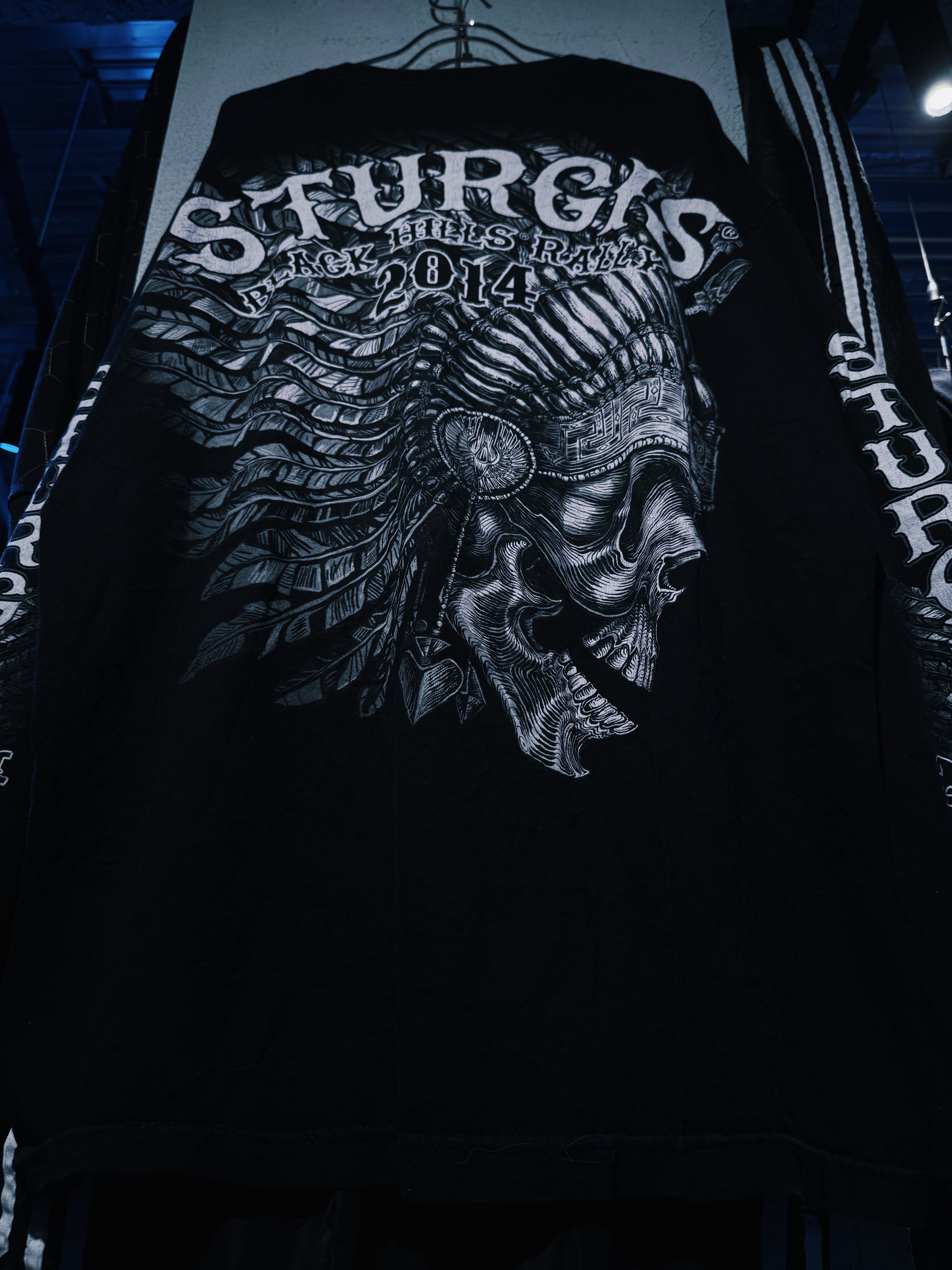 "Hot Leathers" Sturgis Black Hills Rally Skull Motorcycle Black L/L T shirt