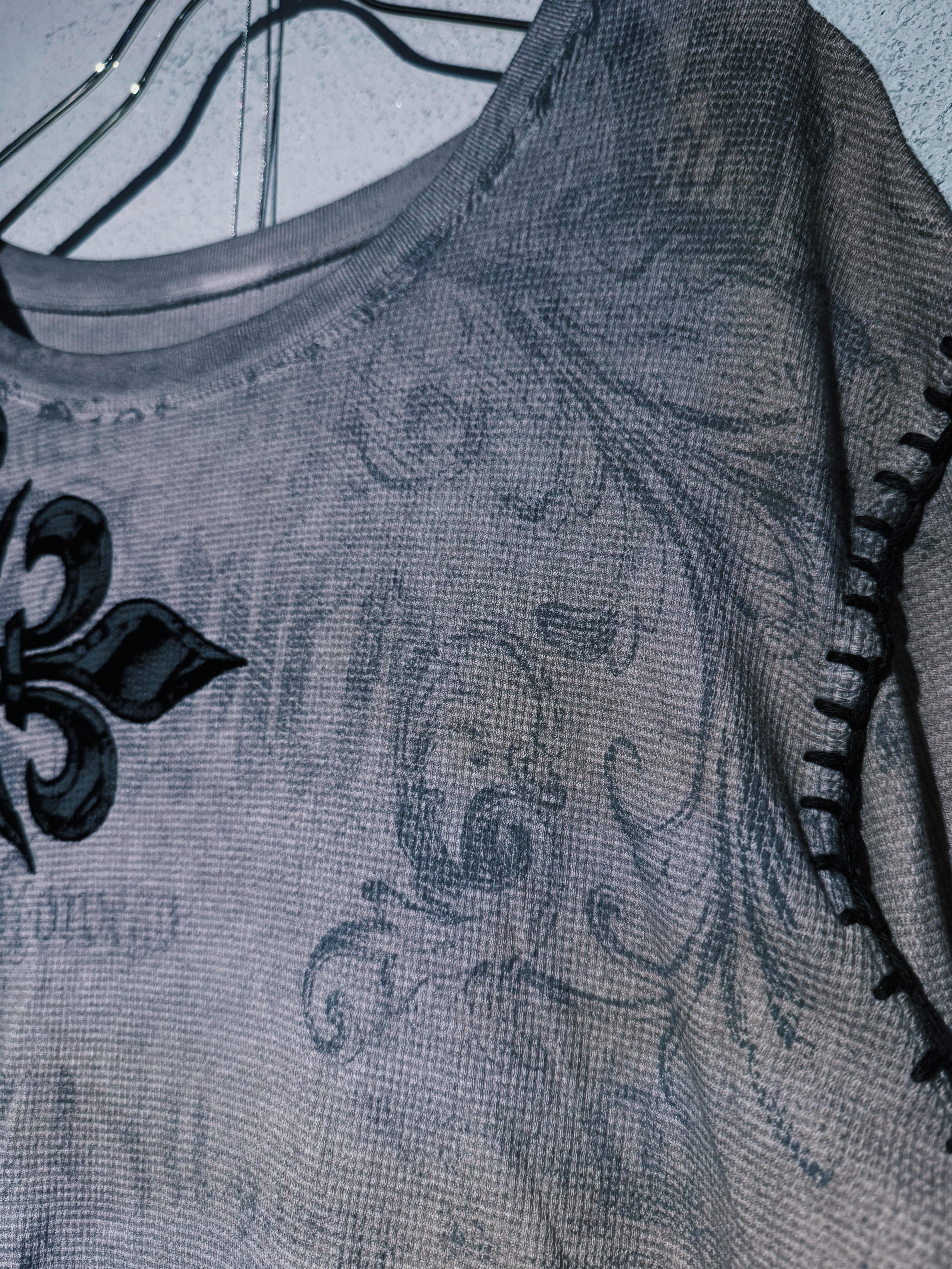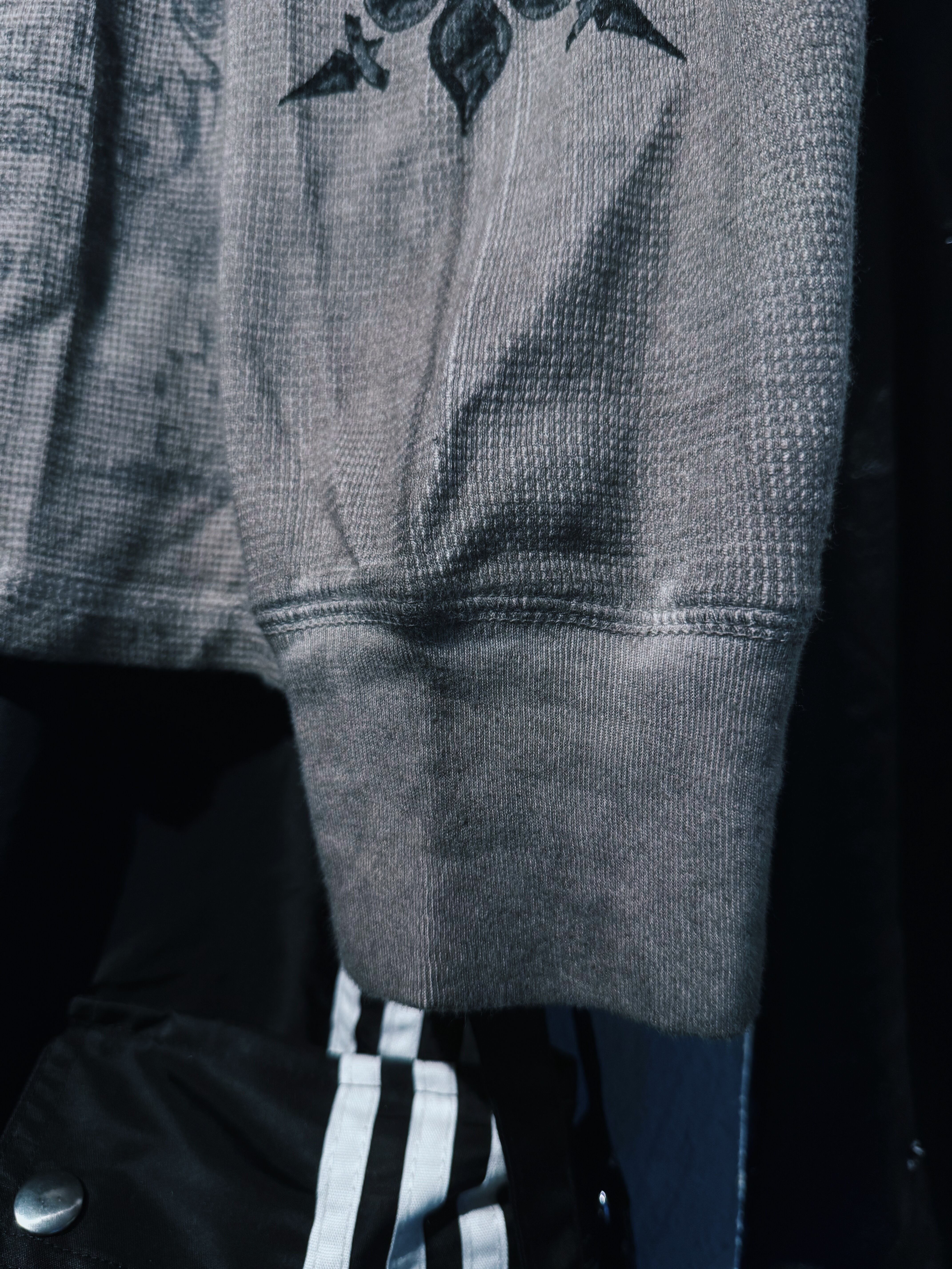 ヴィンテージクロスデザインベロアスイッチングサーマルカットソー