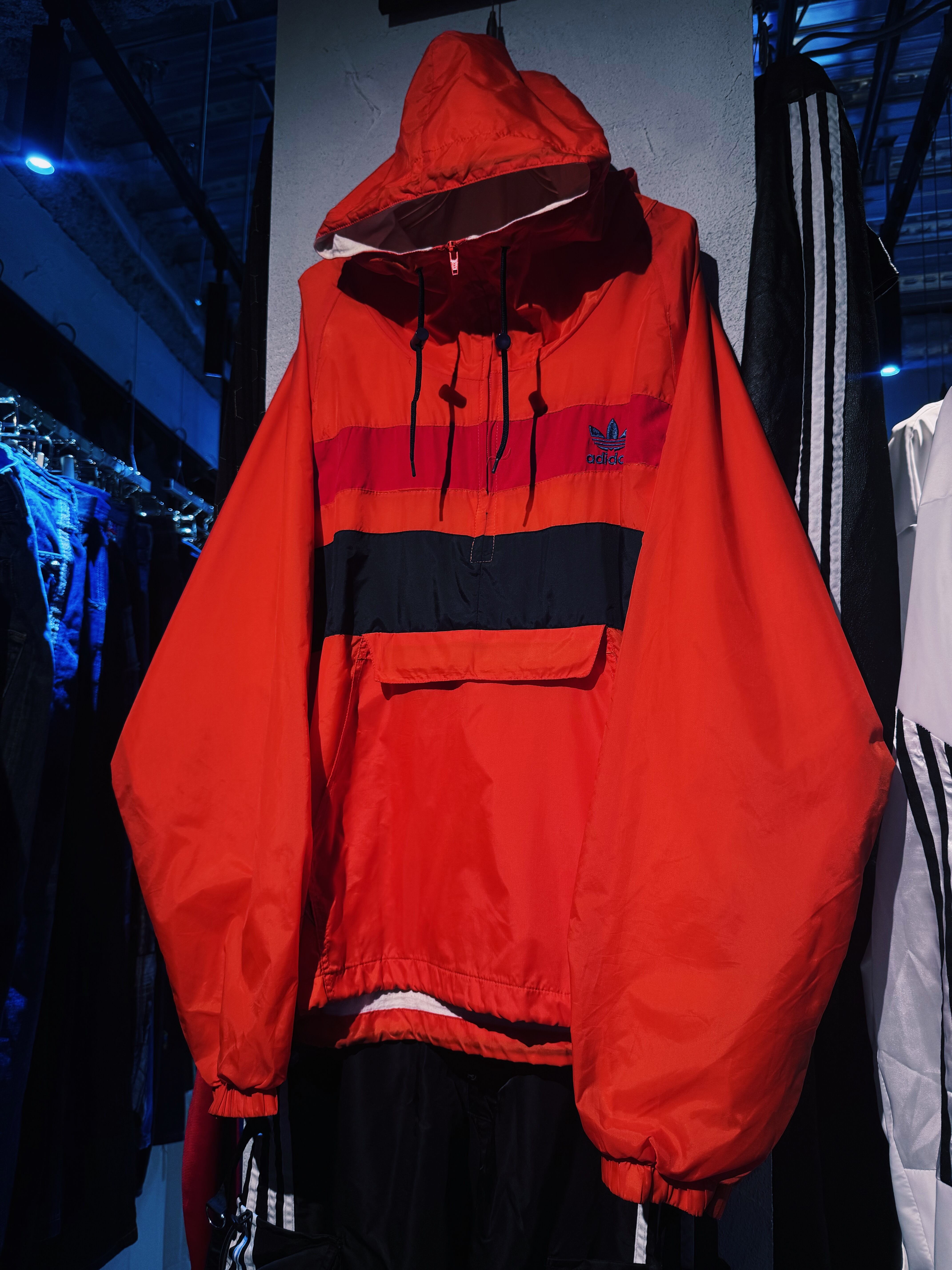 80's vintage "adidas Originals" border design half zip foodie jacket