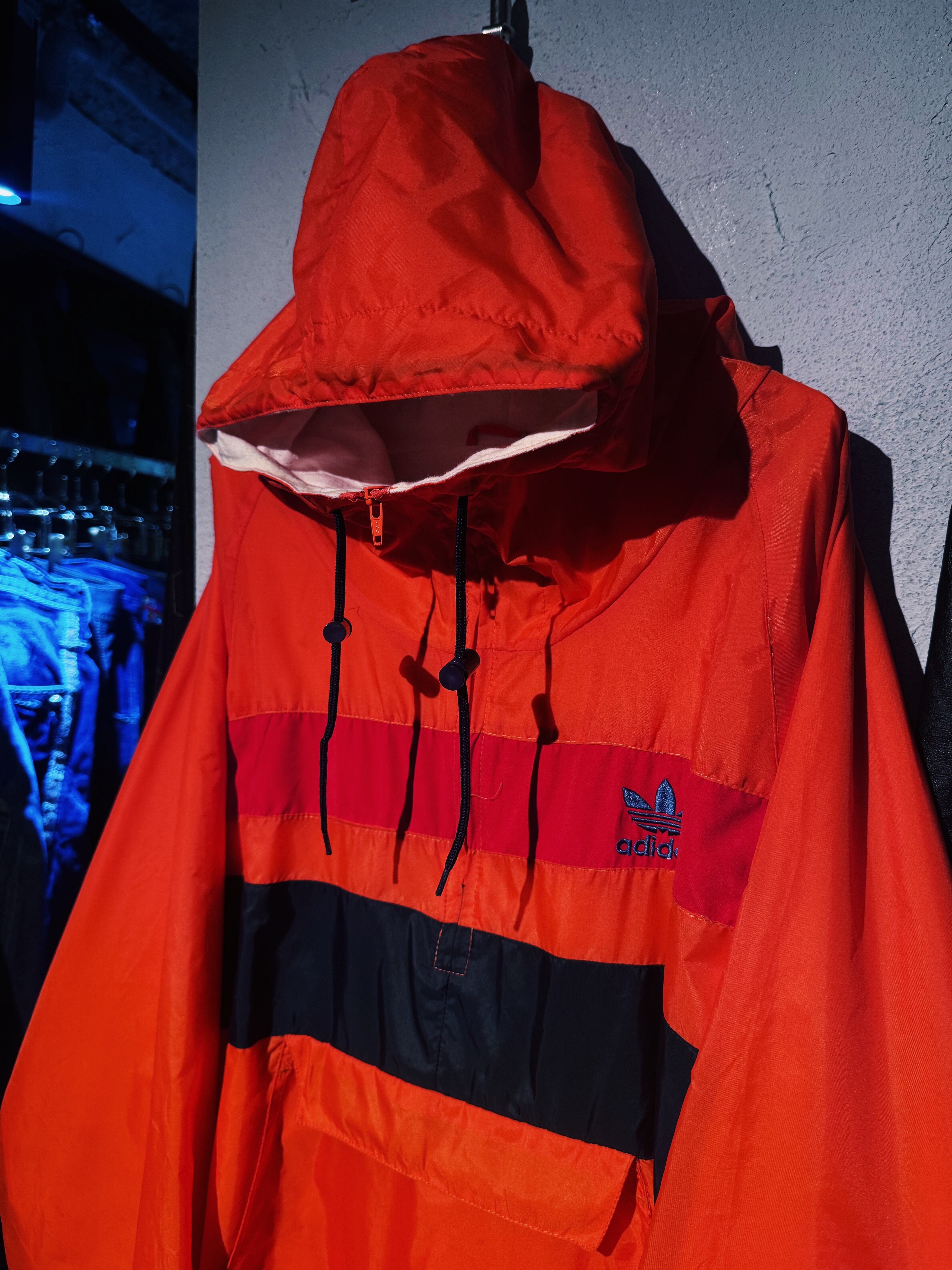 圧倒的なカラーリングのオレンジカラーベースに仕上がられた1着。薄手のナイロン素材を採用している為、フーディージャケットで通気性が抜群な今からでも着れる1着。